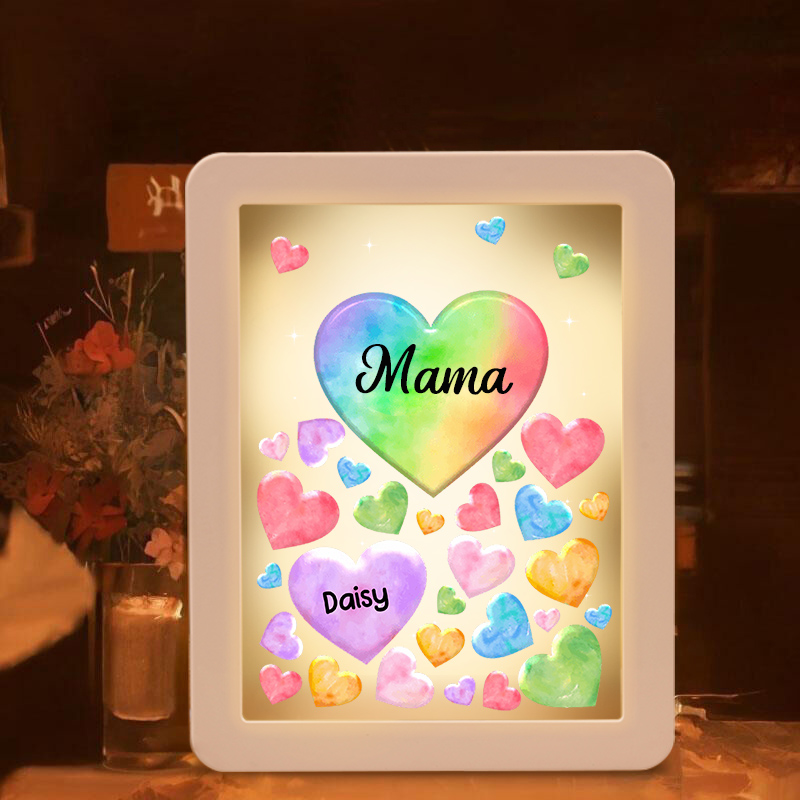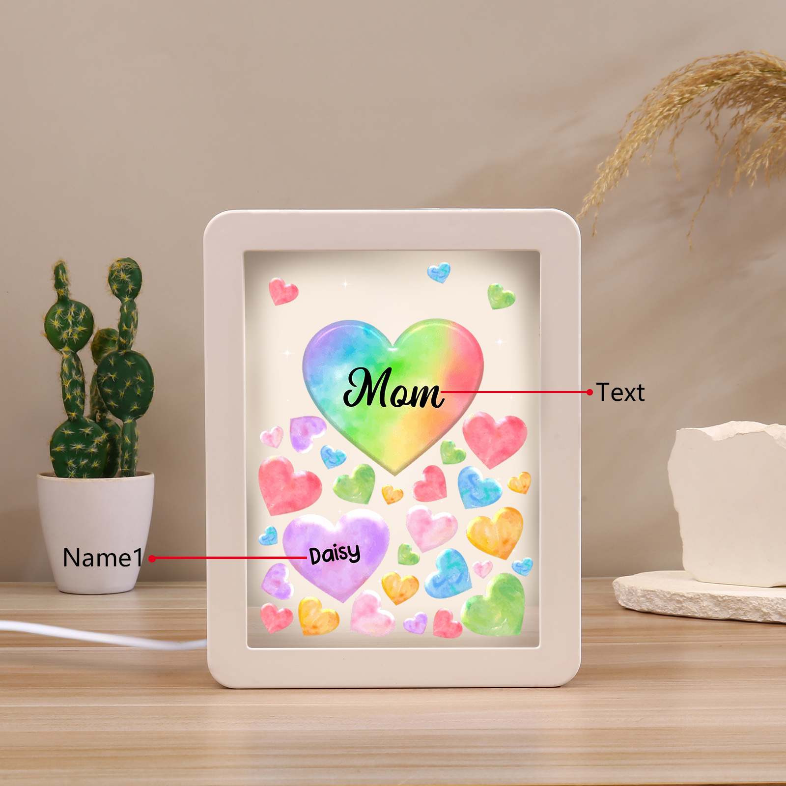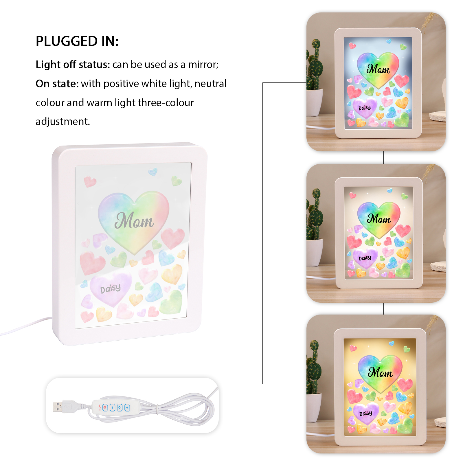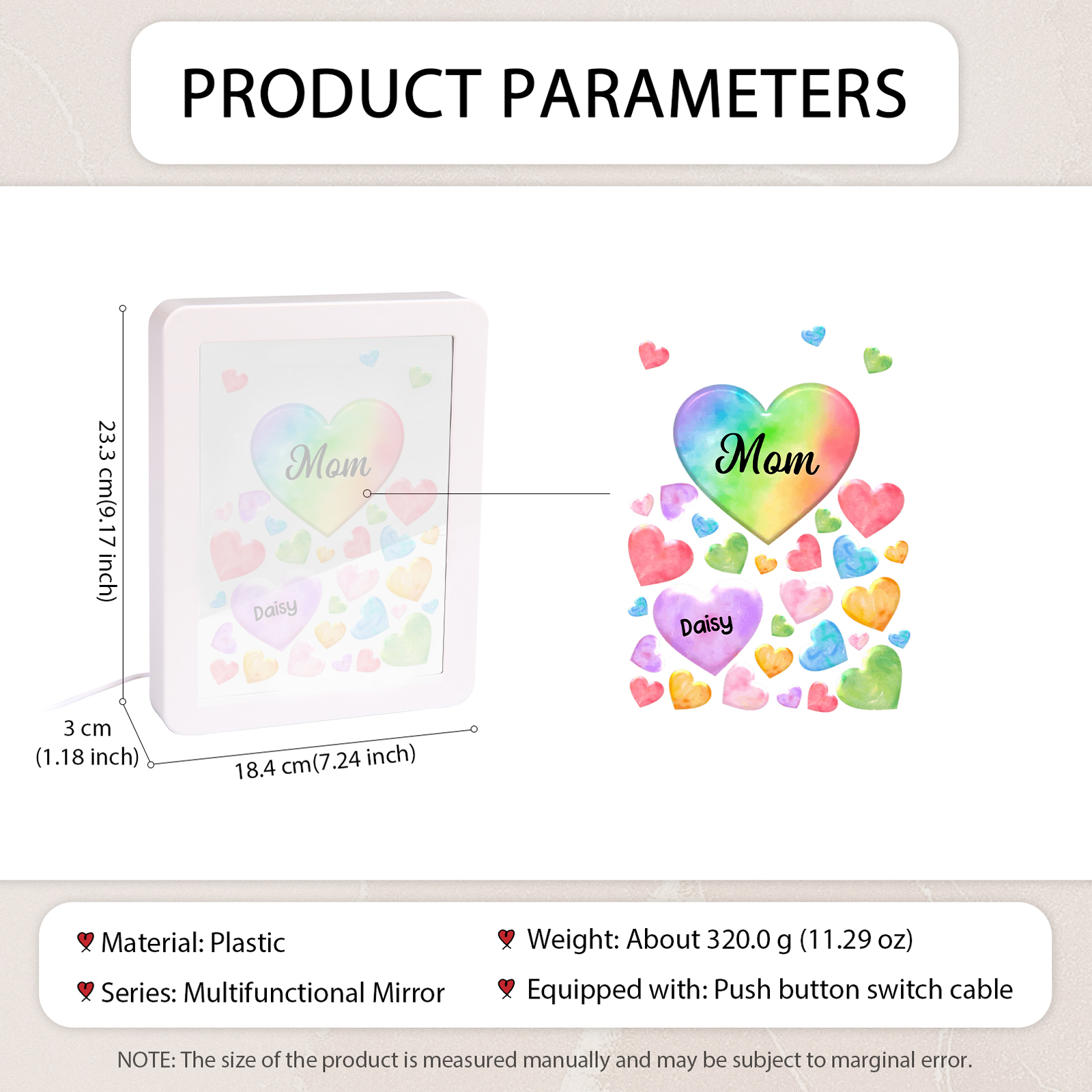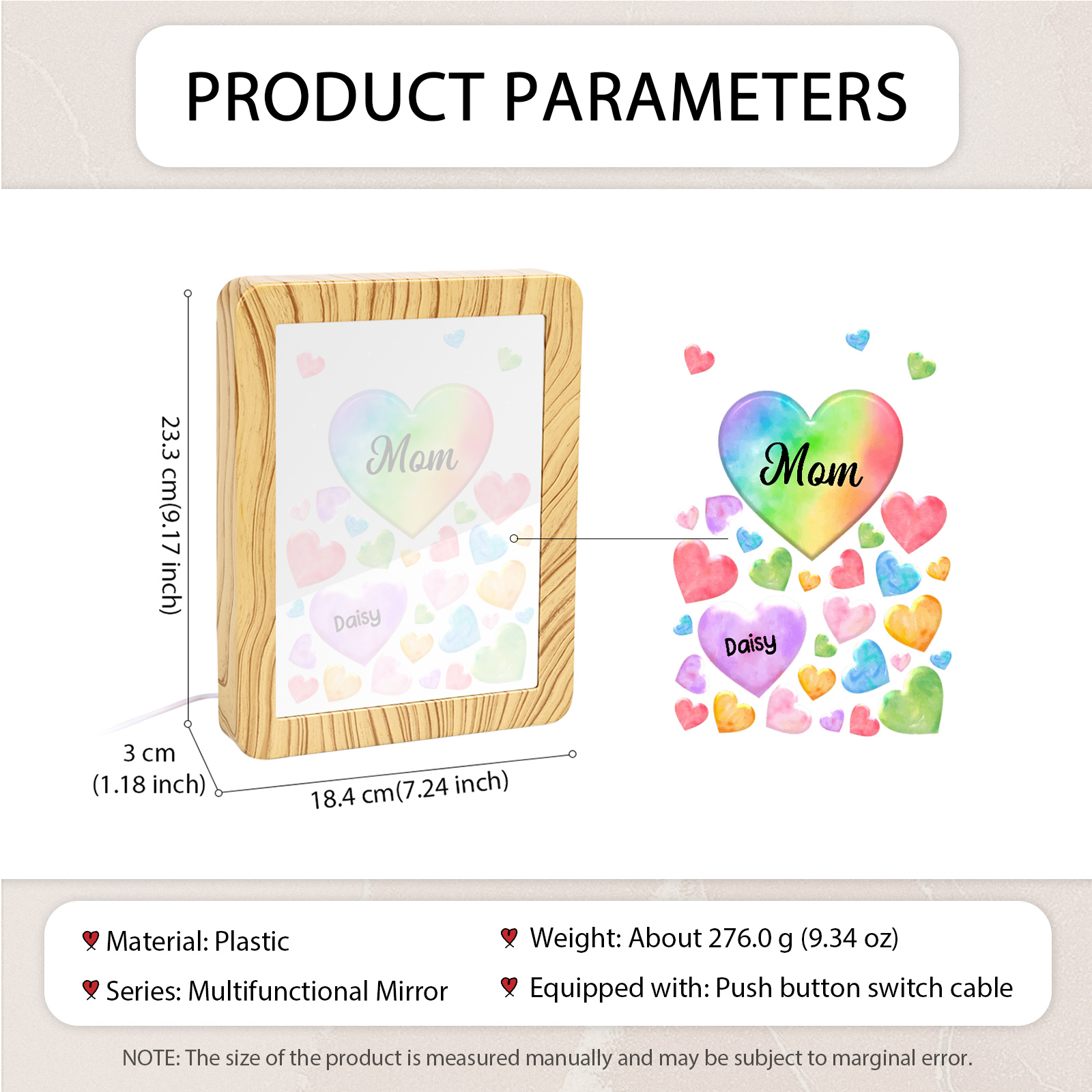 Personalisierter Text & 1 Name bunte Herzen Familie Spiegelrahmen Nachtlicht LED-Licht