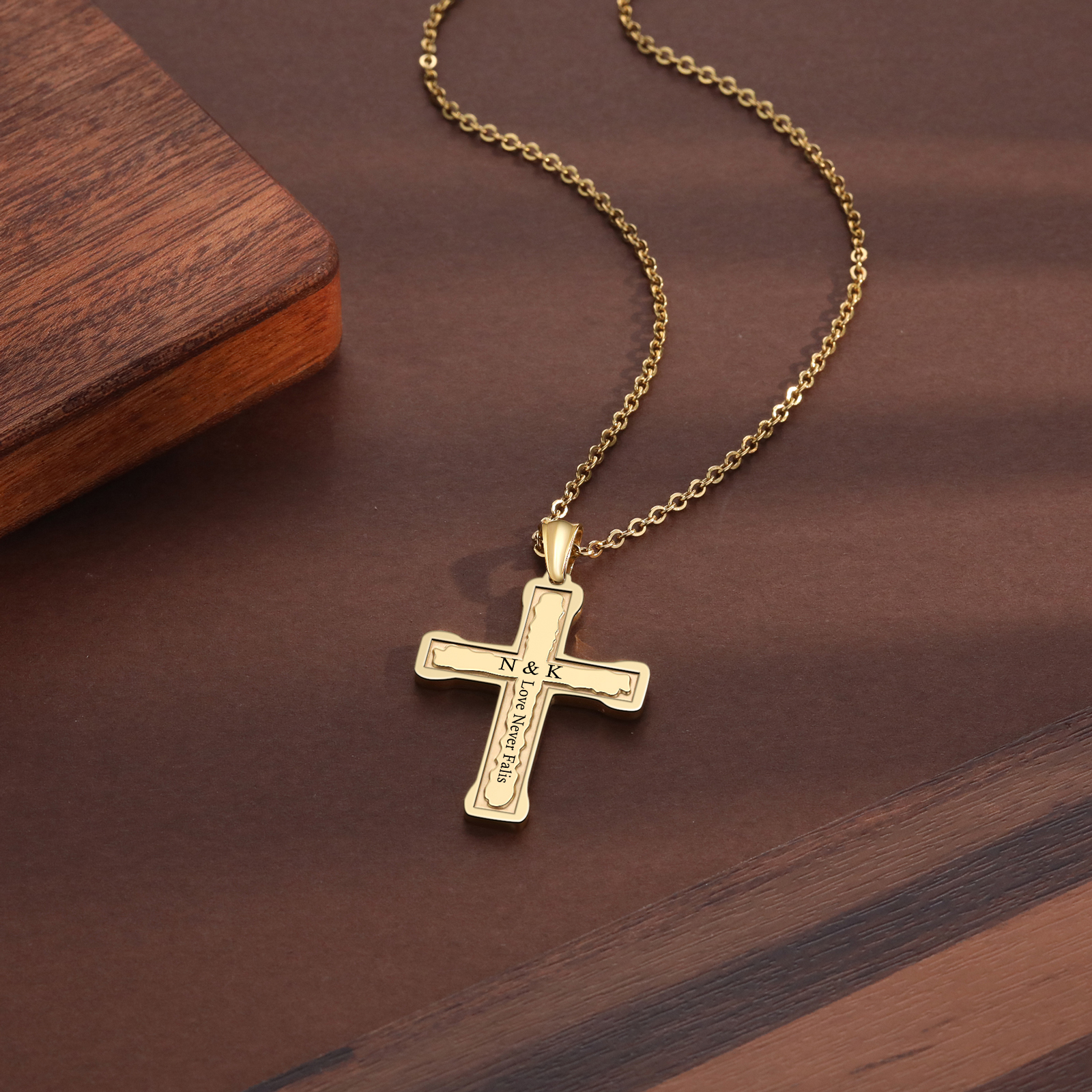 Personalisierter Text & 2 Buchstaben Kommunion Konfirmation Kreuz Halskette Herren Schmuck