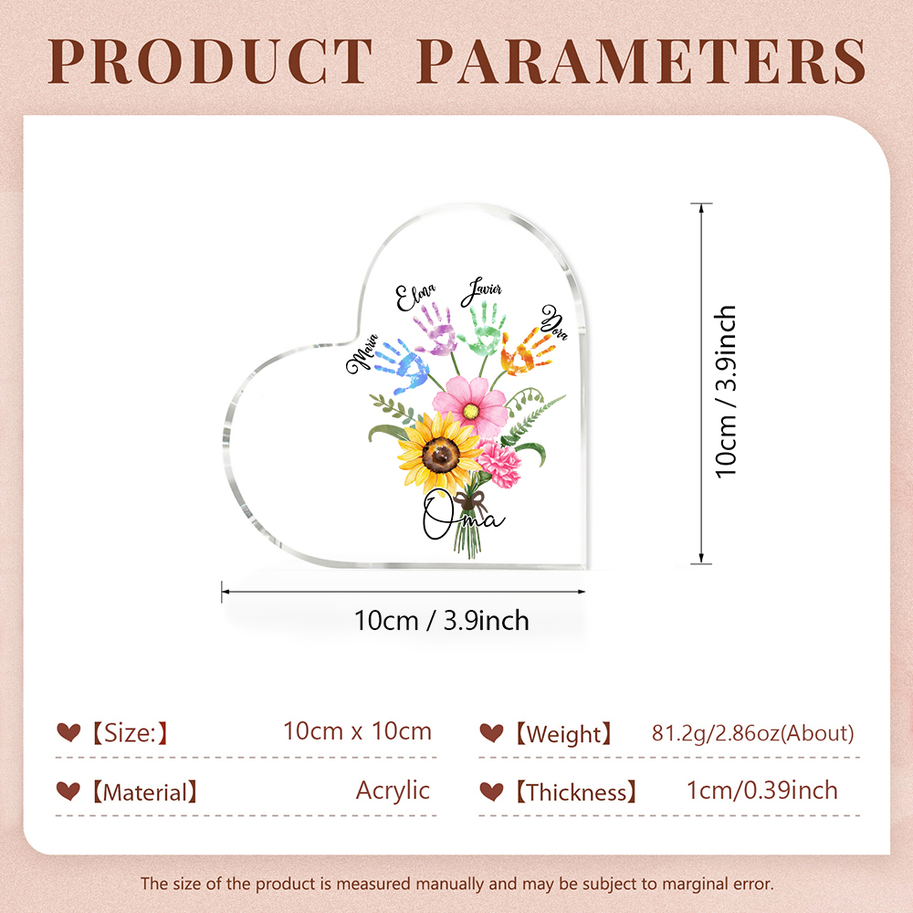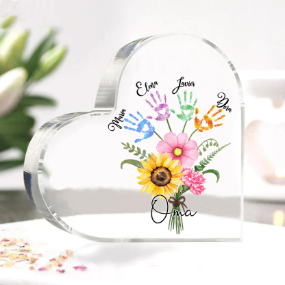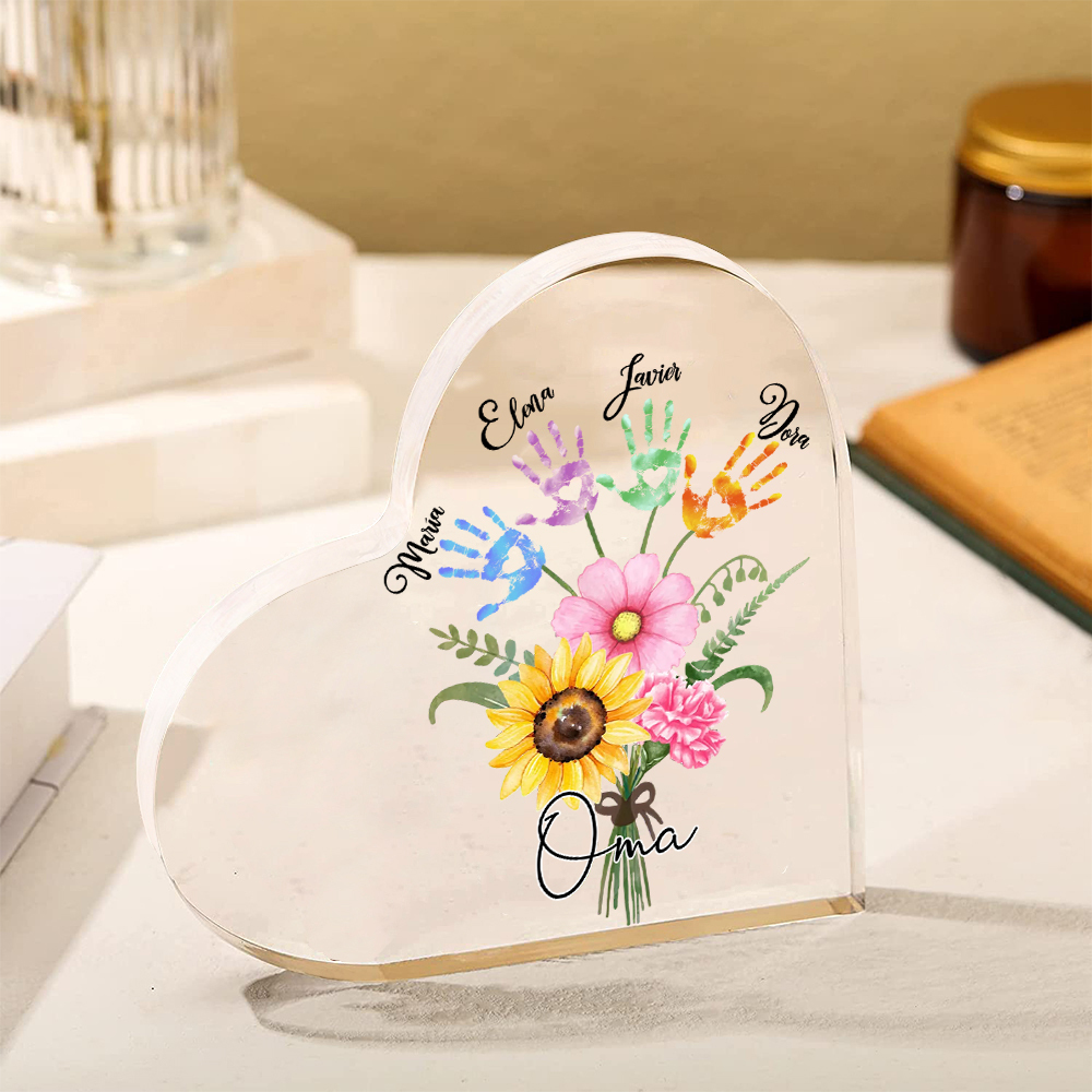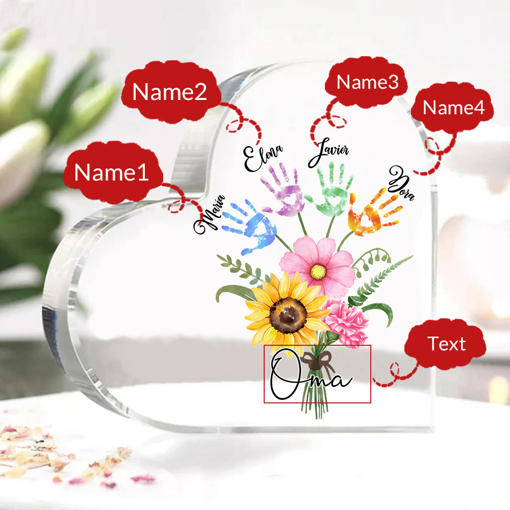 Personalisierter Text & 4 Namen Herz Acryl-Deko Blumenstrauß Familie Schreibtischdekoration für Mutter/Oma