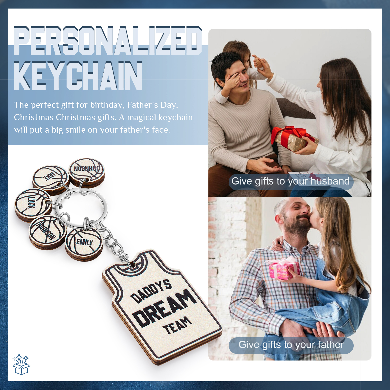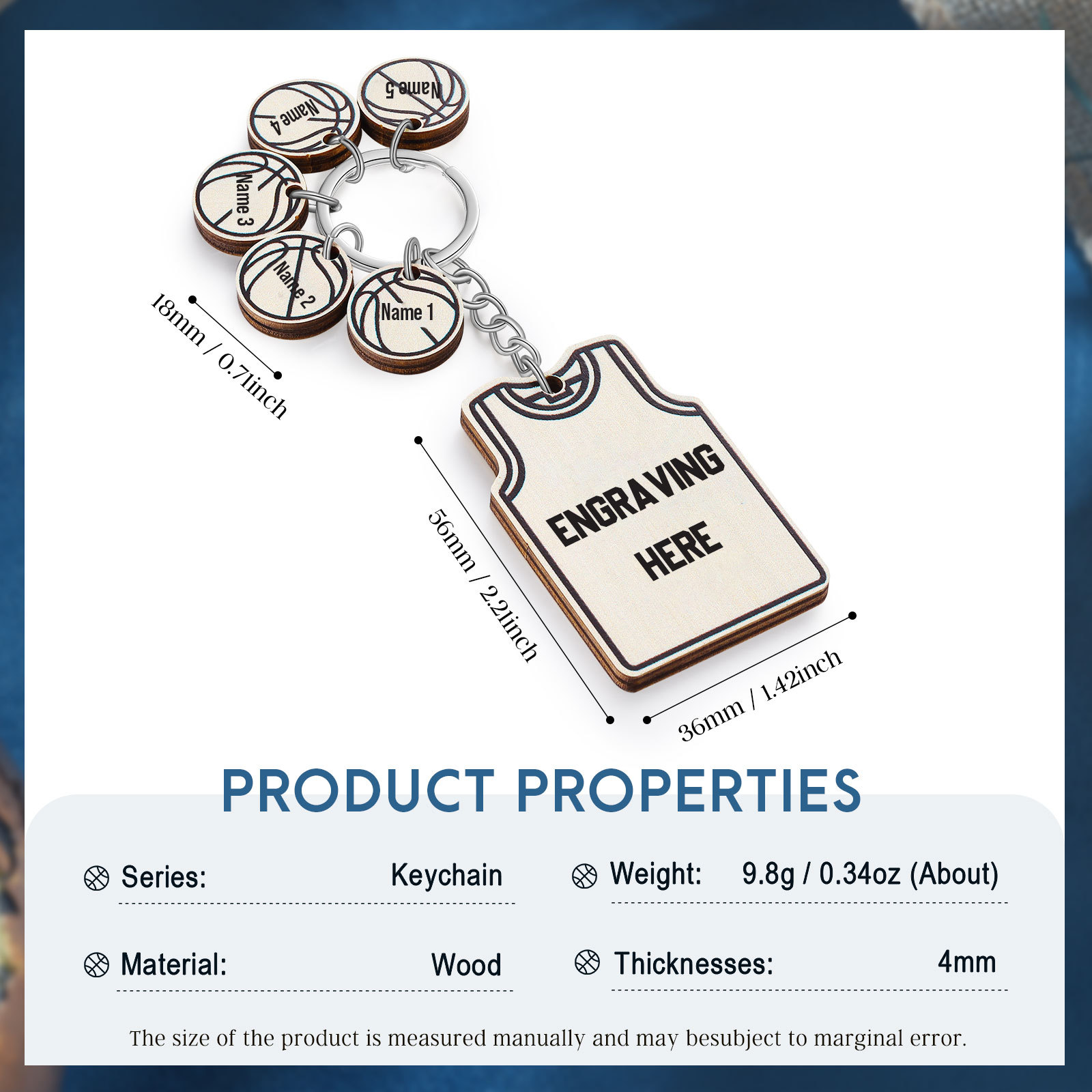 Personalisierter Text & 5 Namen Holz Basketball Schlüsselanhänger