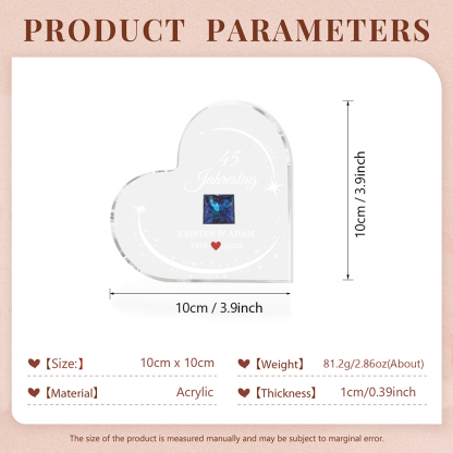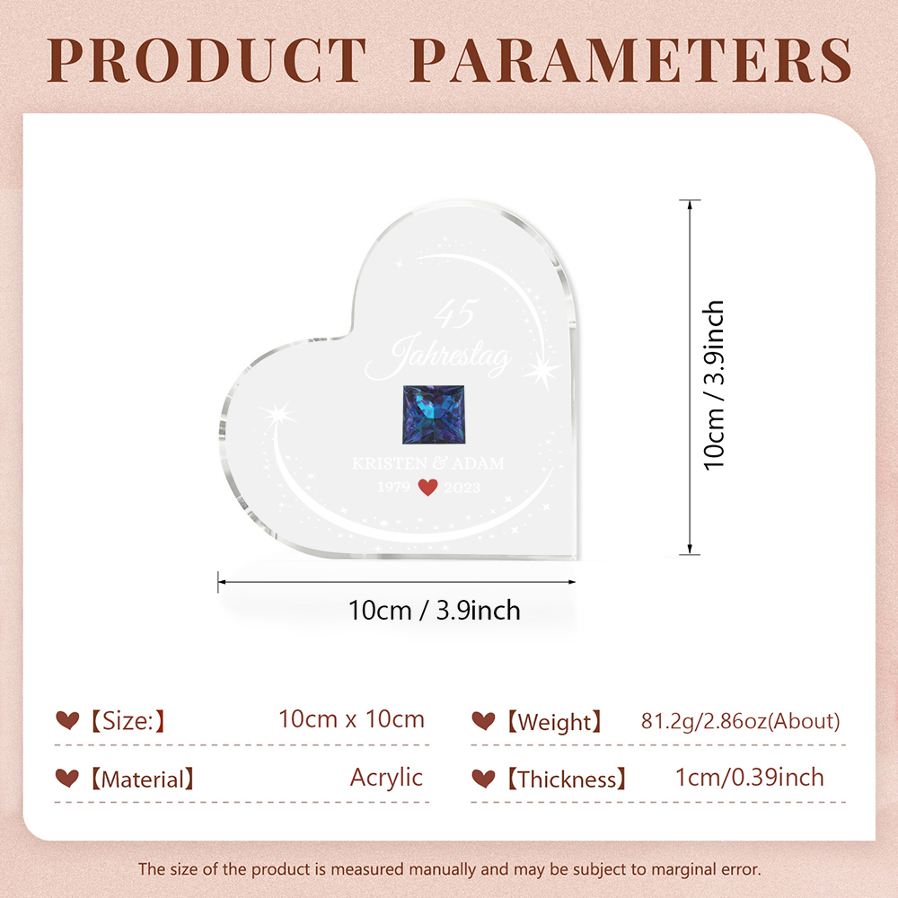 Personalisierter Text & Datum 45 Jahretag Acryl-Deko-Schreibtischdekoration für Paar