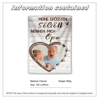Personalisierter Text & Foto & 6 Namen Decke-Großelterntag Geschenk für Opa