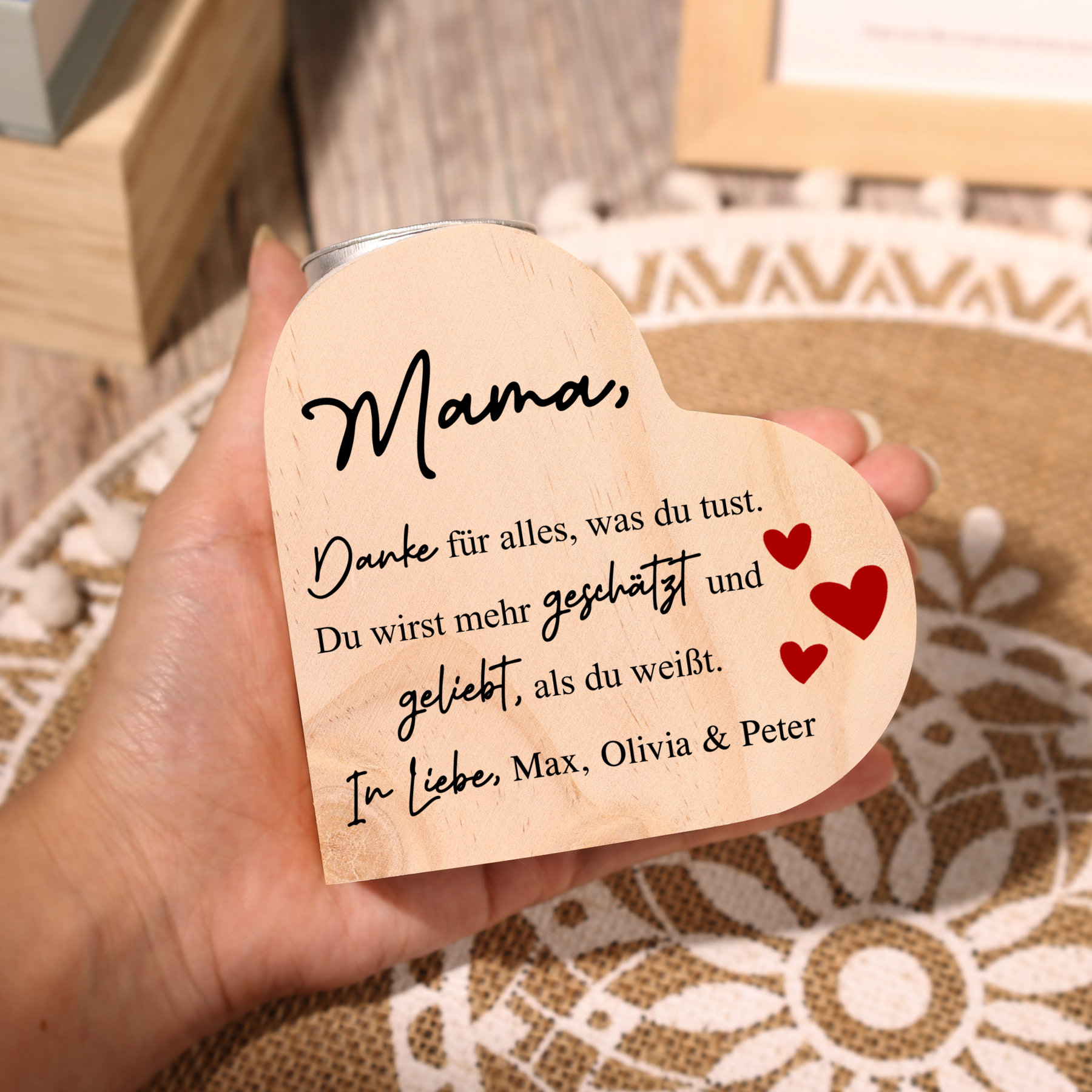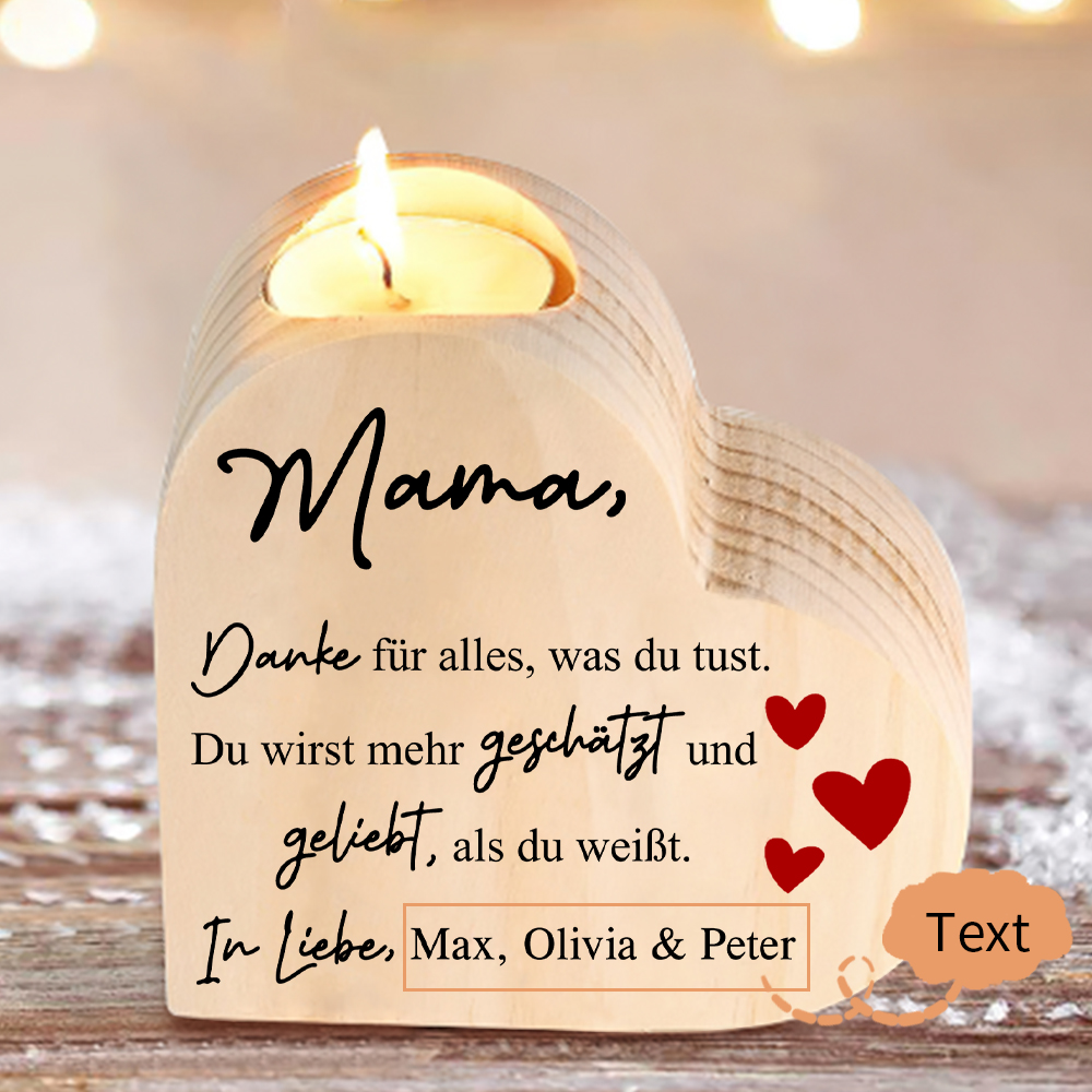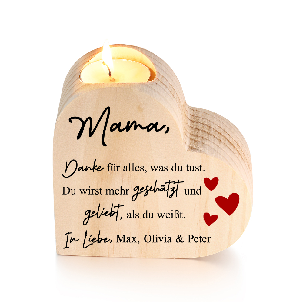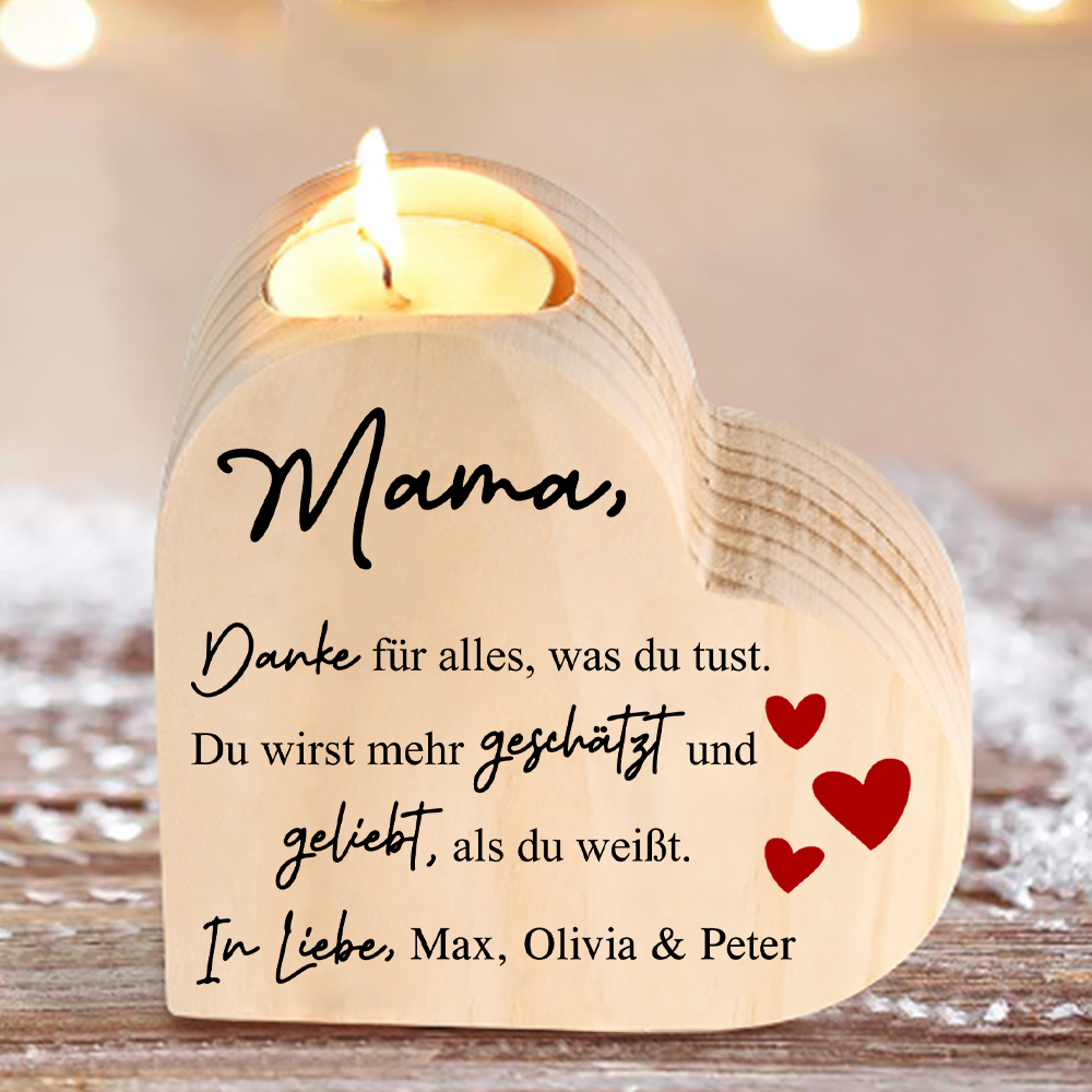 Personalisierter Text Herzform Kerzenhalter-Mama Du wirst mehr geliebt als du weißt-Geschenk für Mutter