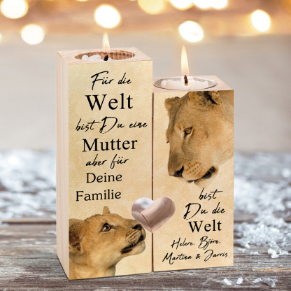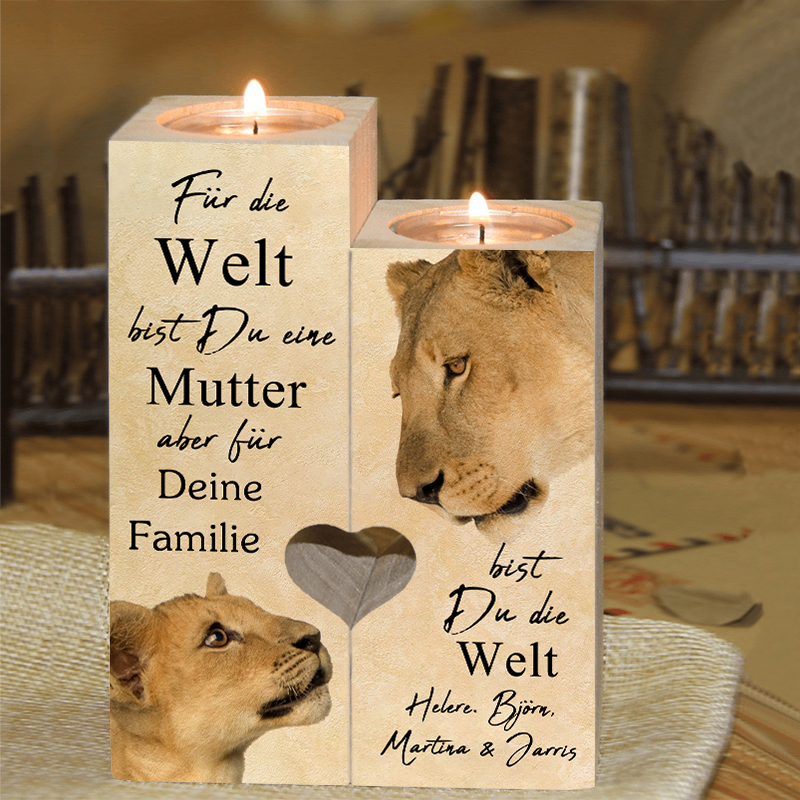 Personalisierter Text Löwe Kerzenhalter-Für die Wett bist Du eine Mutter, aber für Deine Familie bist Du die Welt-Geschenk für Mutter