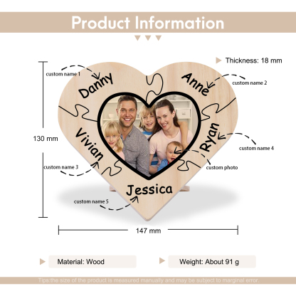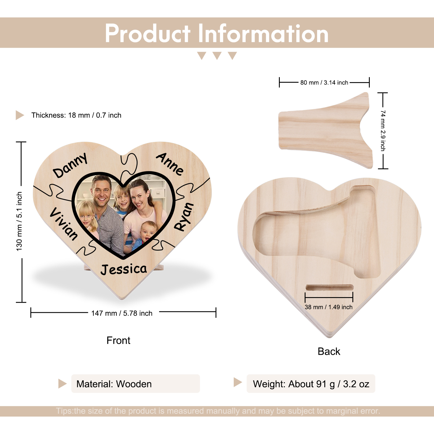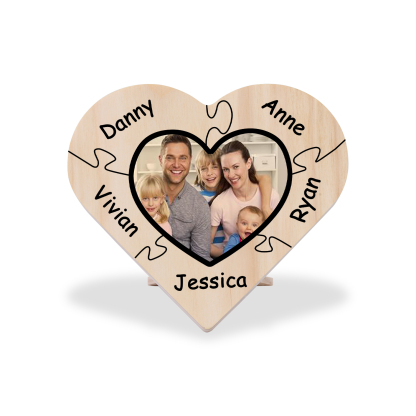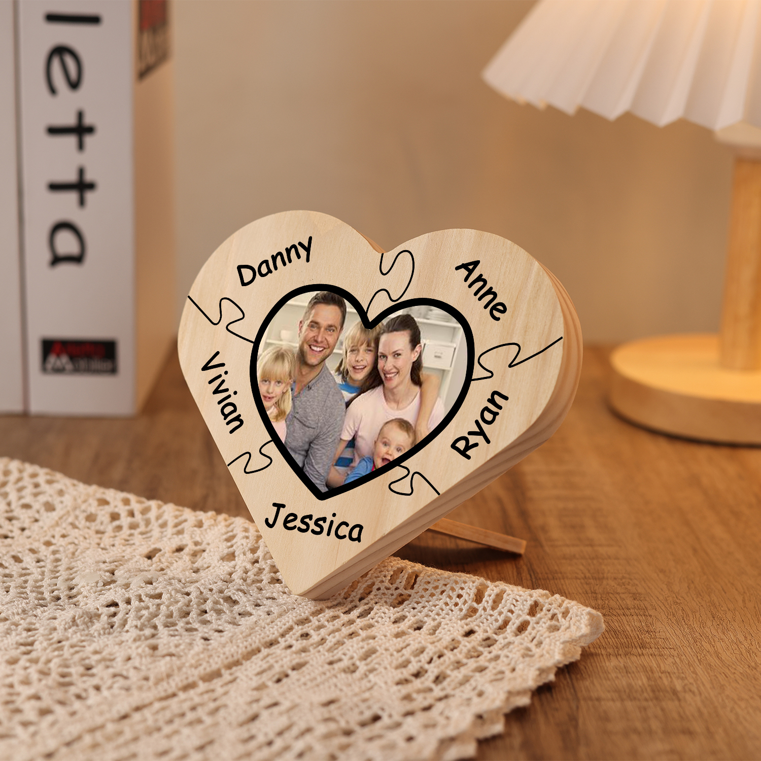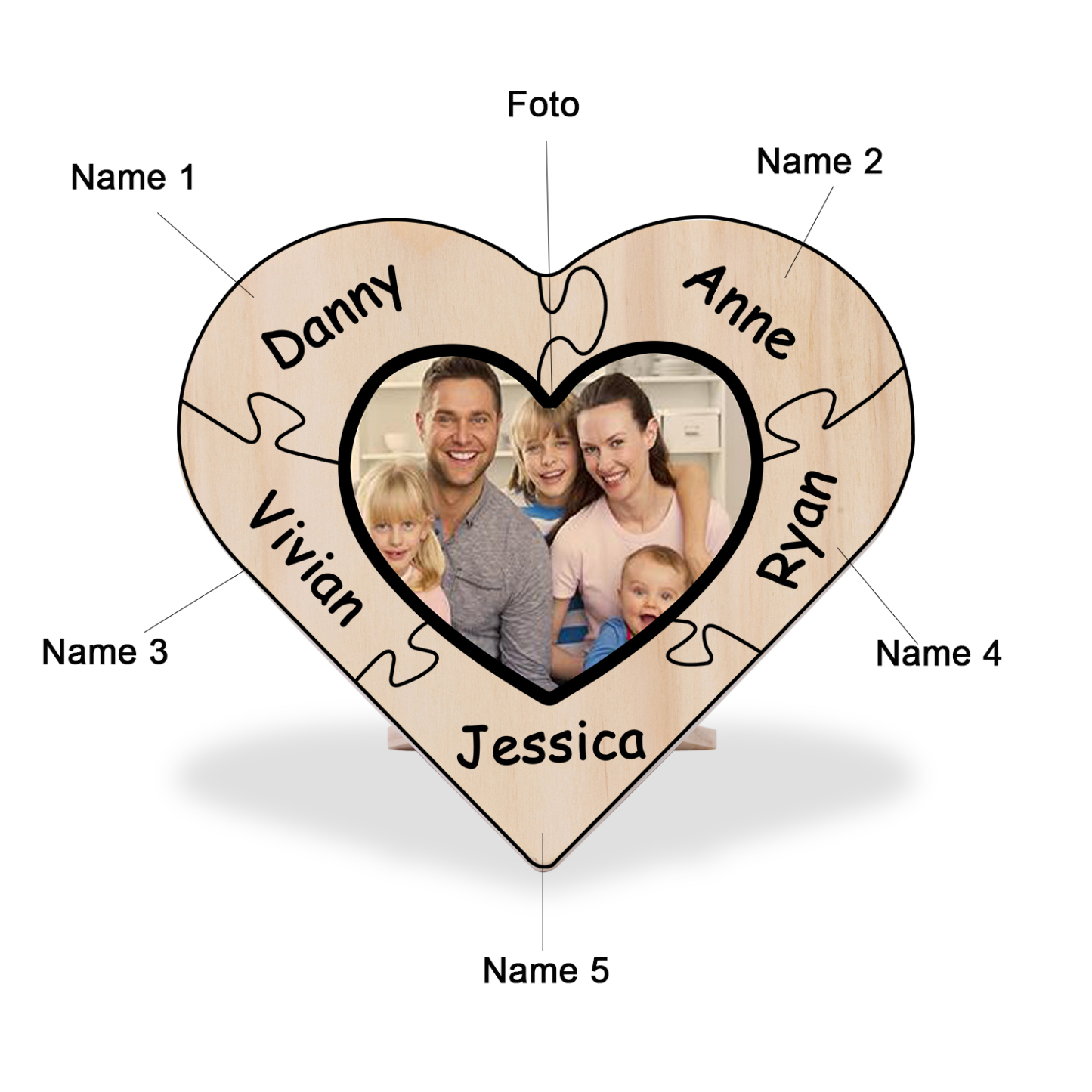 Personalisiertes 1 Foto & 5 Namen Holz Herzornament Puzzle Schreibtischdekoration Geschenk für Familie