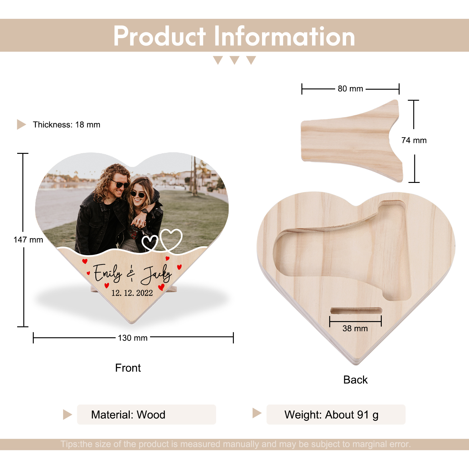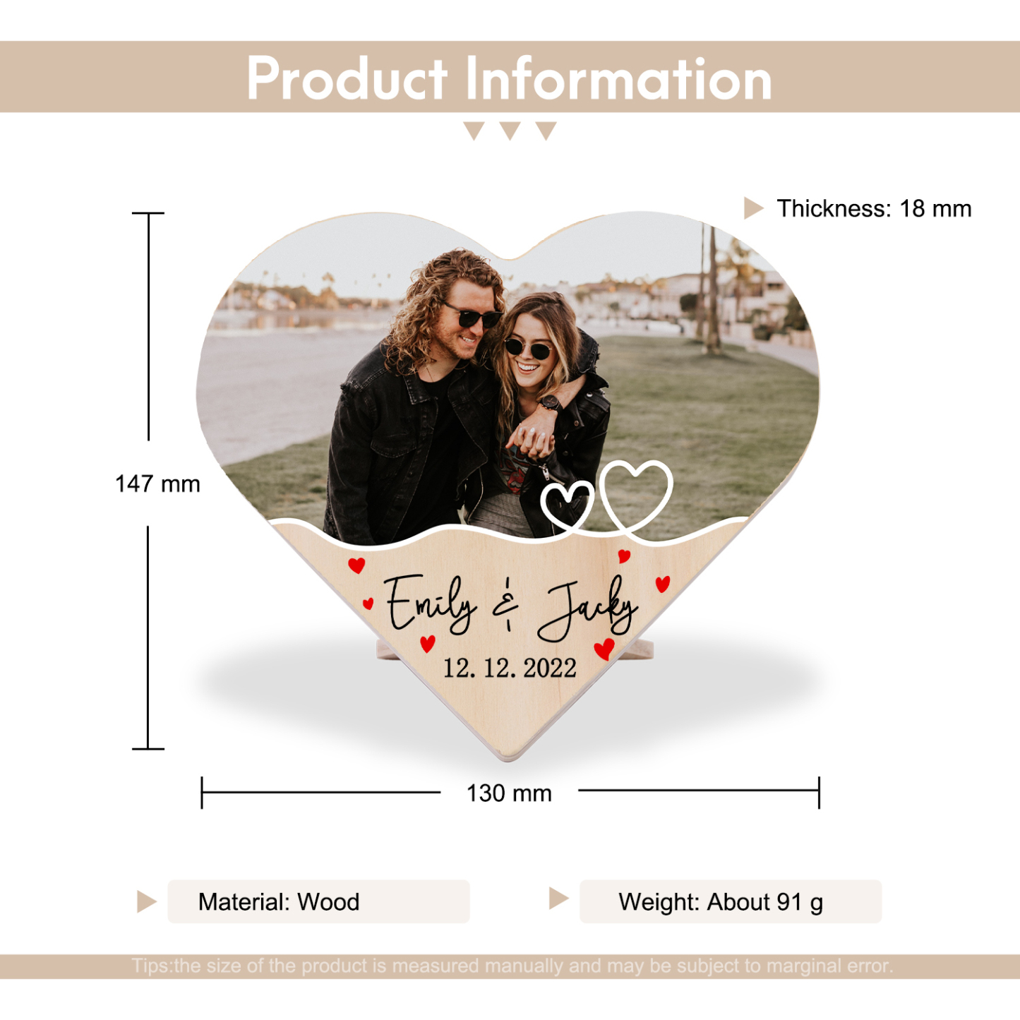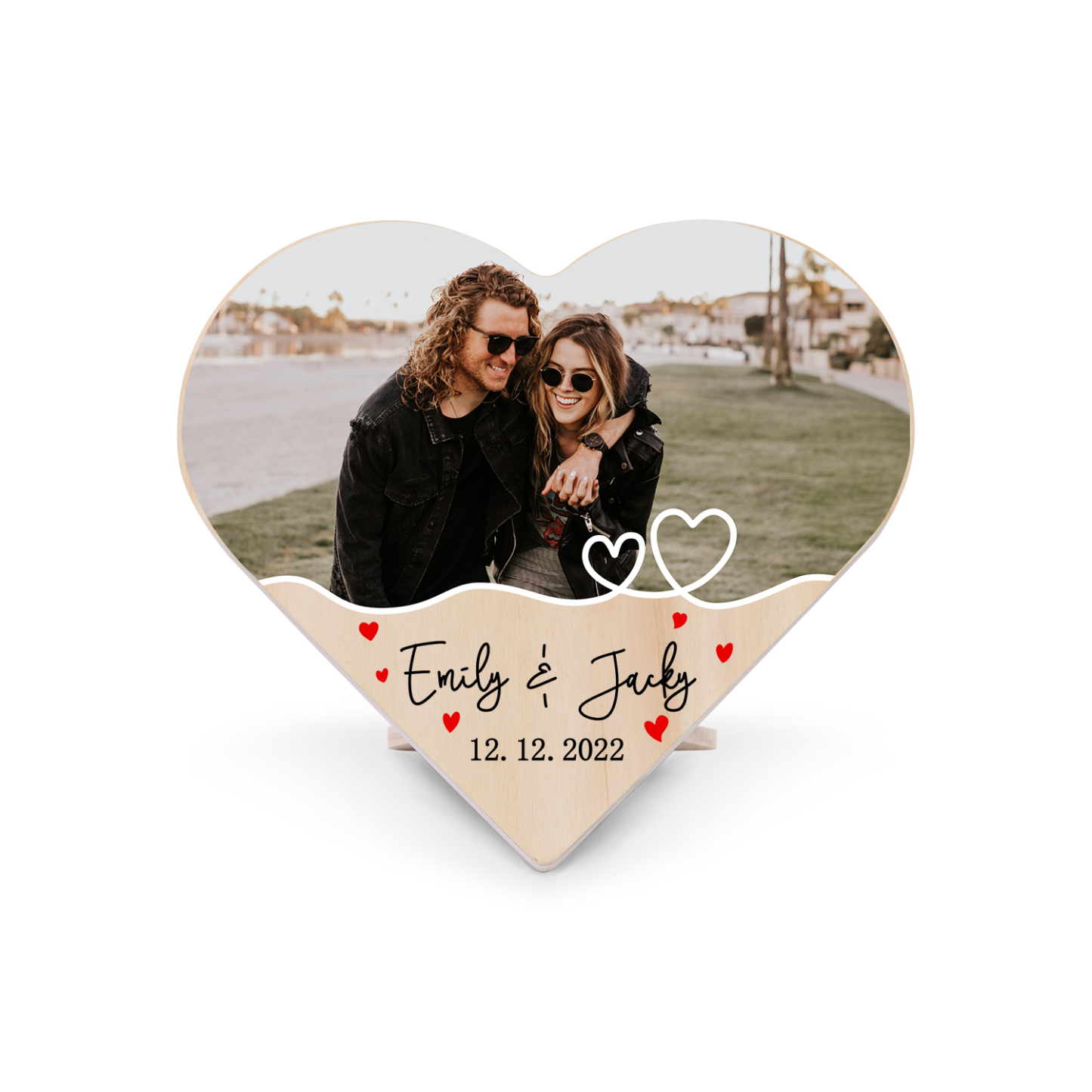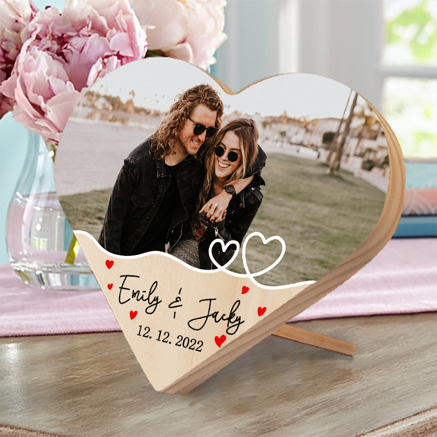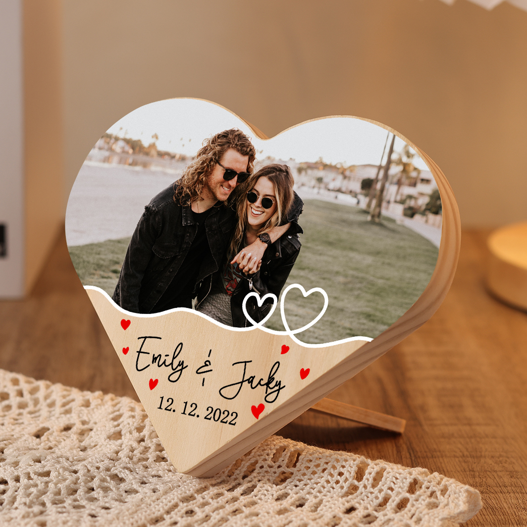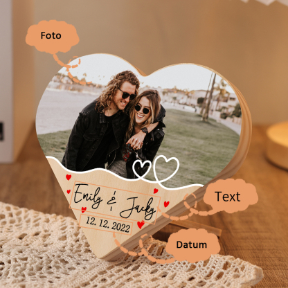Personalisiertes 1 Foto & Text & Datum Holz Herzornament-Schreibtischdekoration Geschenk für Paar