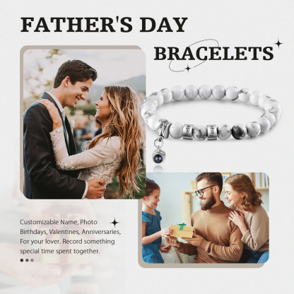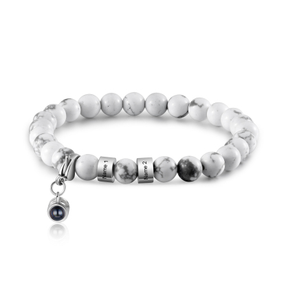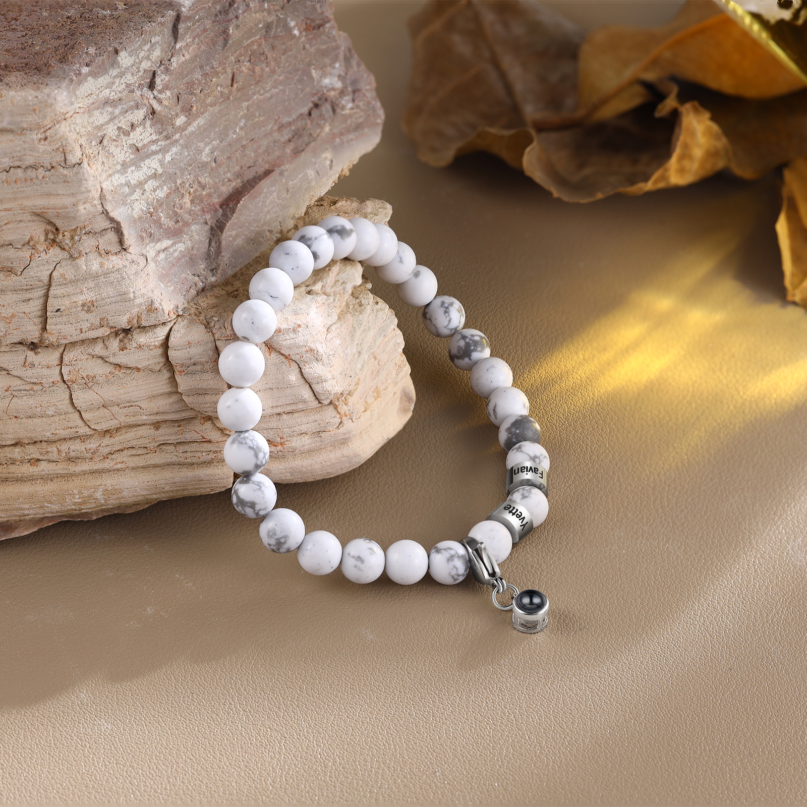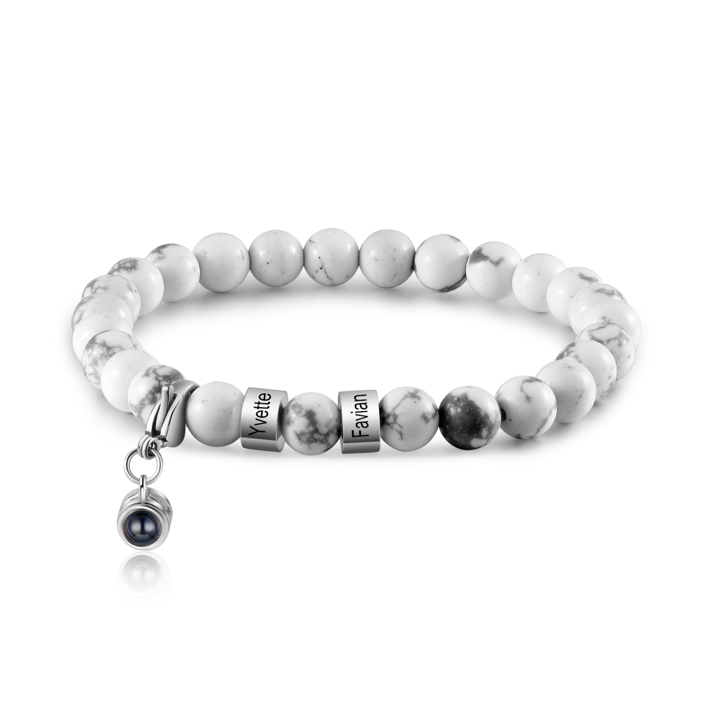 Personalisiertes 2 Namen & Foto Magnesit Projektion Armband