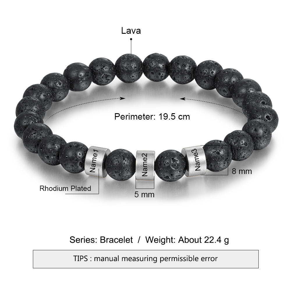Personalisiertes 3 Namen Perle Vulkangestein Armband-An meinen Papa-Geschenkkarte Set