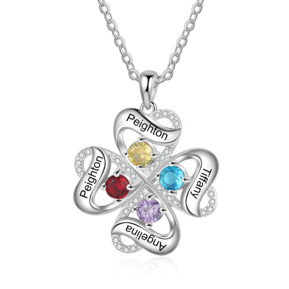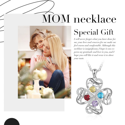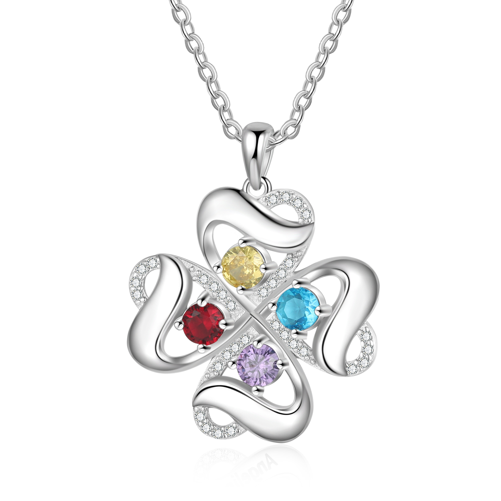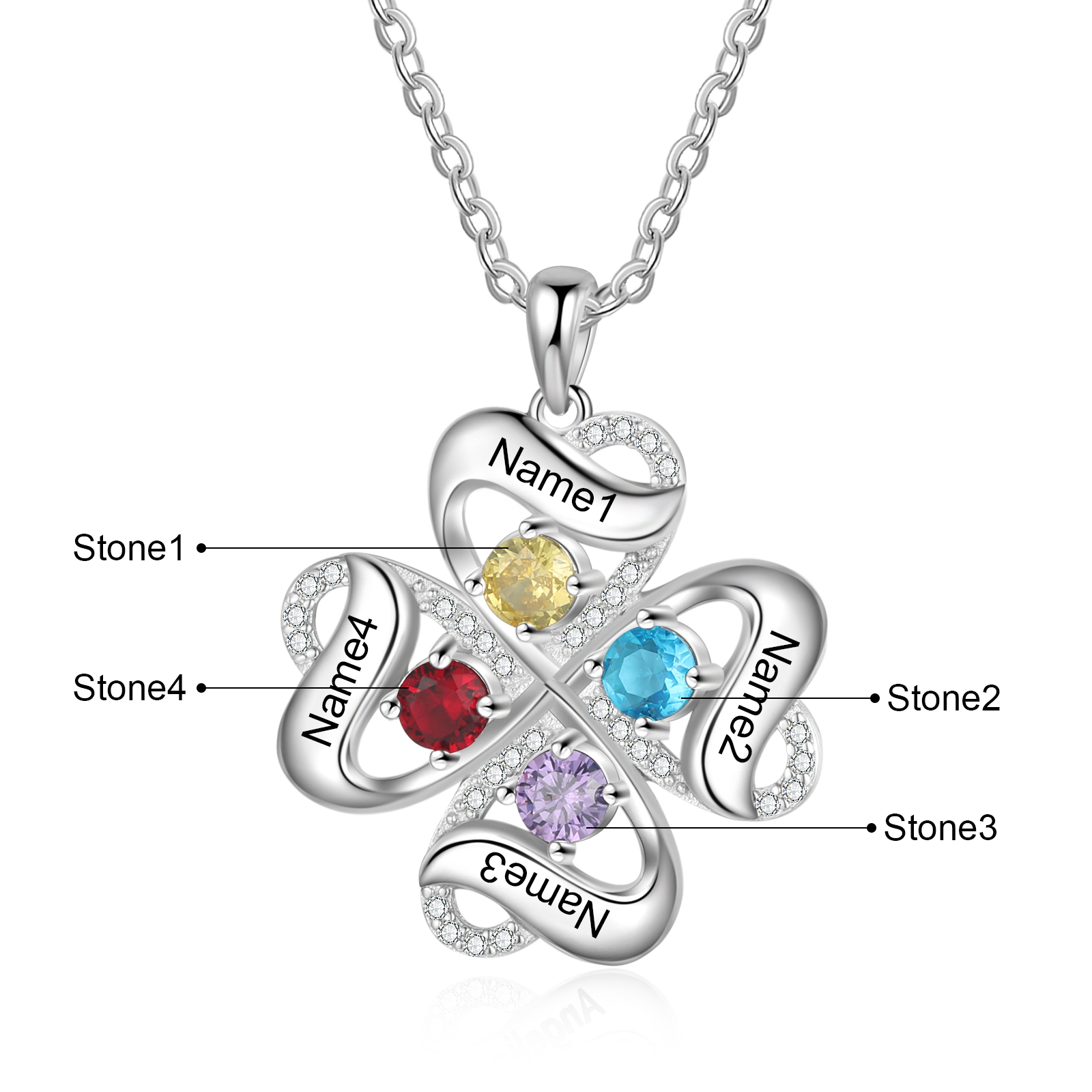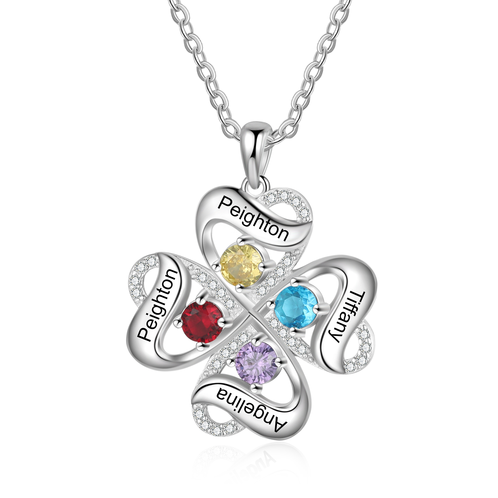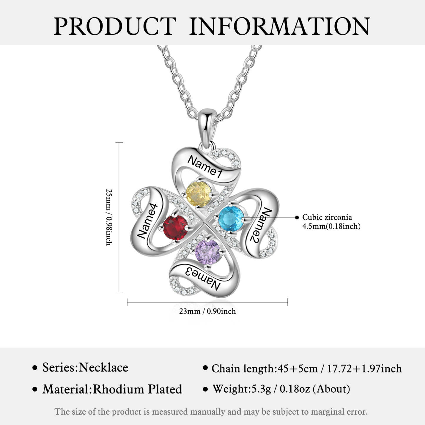 Personalisiertes 4 Namen Blatt Halskette mit Geburtssteinen