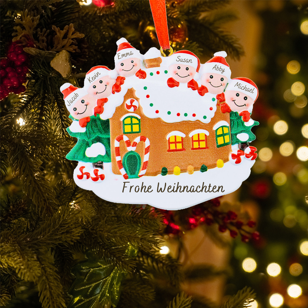 Personalisiertes 6 Namen Text Weihnachtsornament aus Holz Anhänger mit 6 Familienmitgliedern