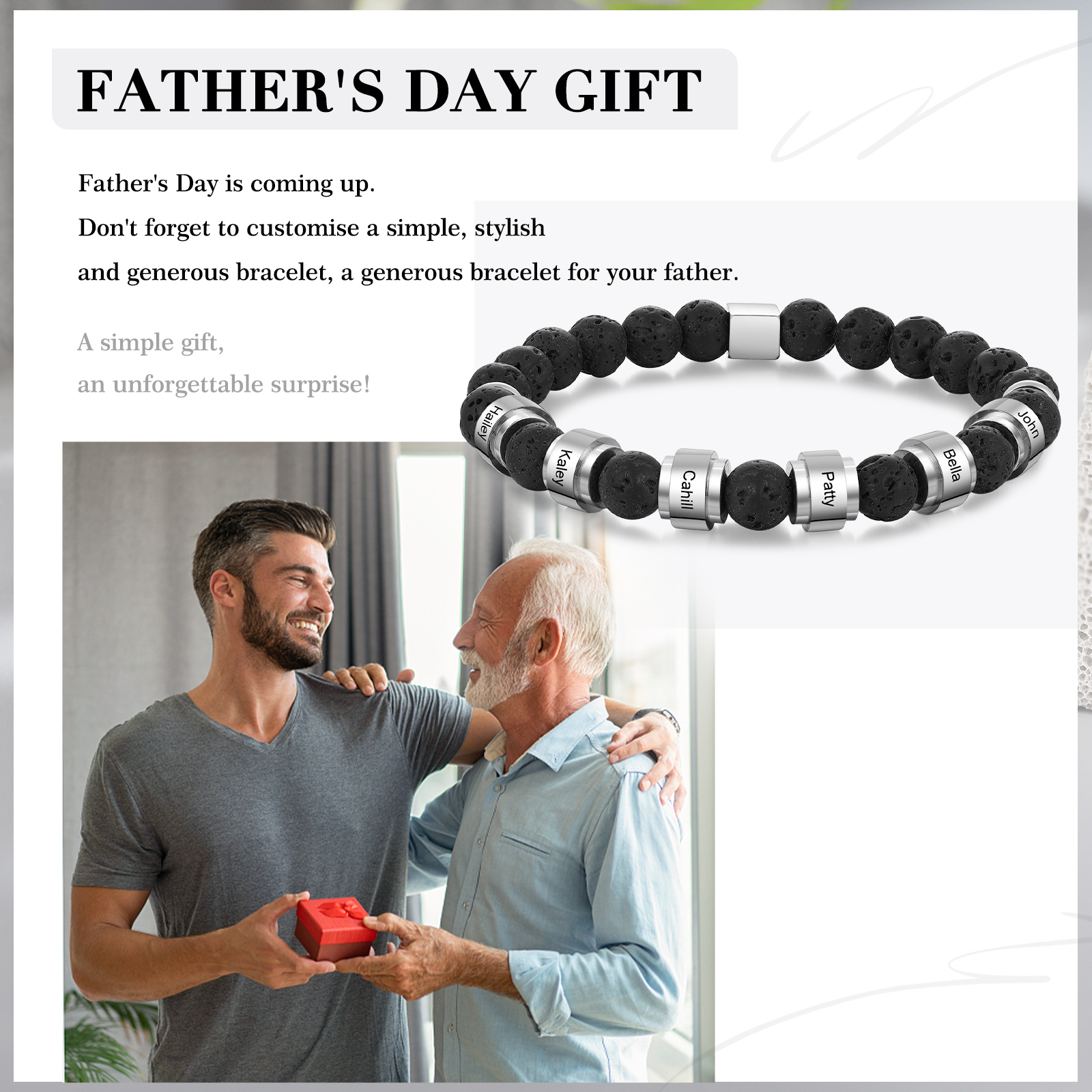 Personalisiertes 6 Namen Vulkangestein mit Edelstahl Perle Armband
