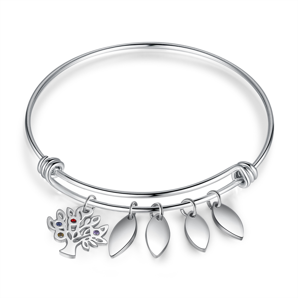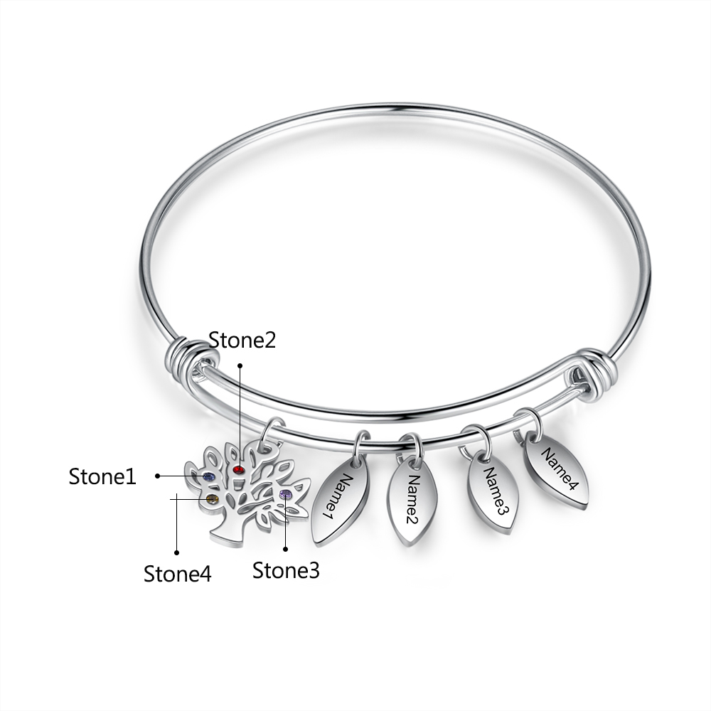 Personalisiertes Armband mit 4 Geburtssteinen und 4 Namen Familienarmband