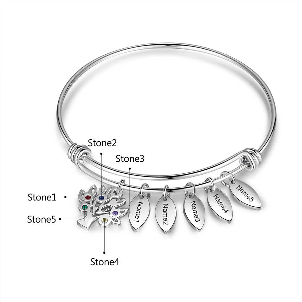 Personalisiertes Armband mit 5 Geburtssteinen und 5 Namen Familienarmband