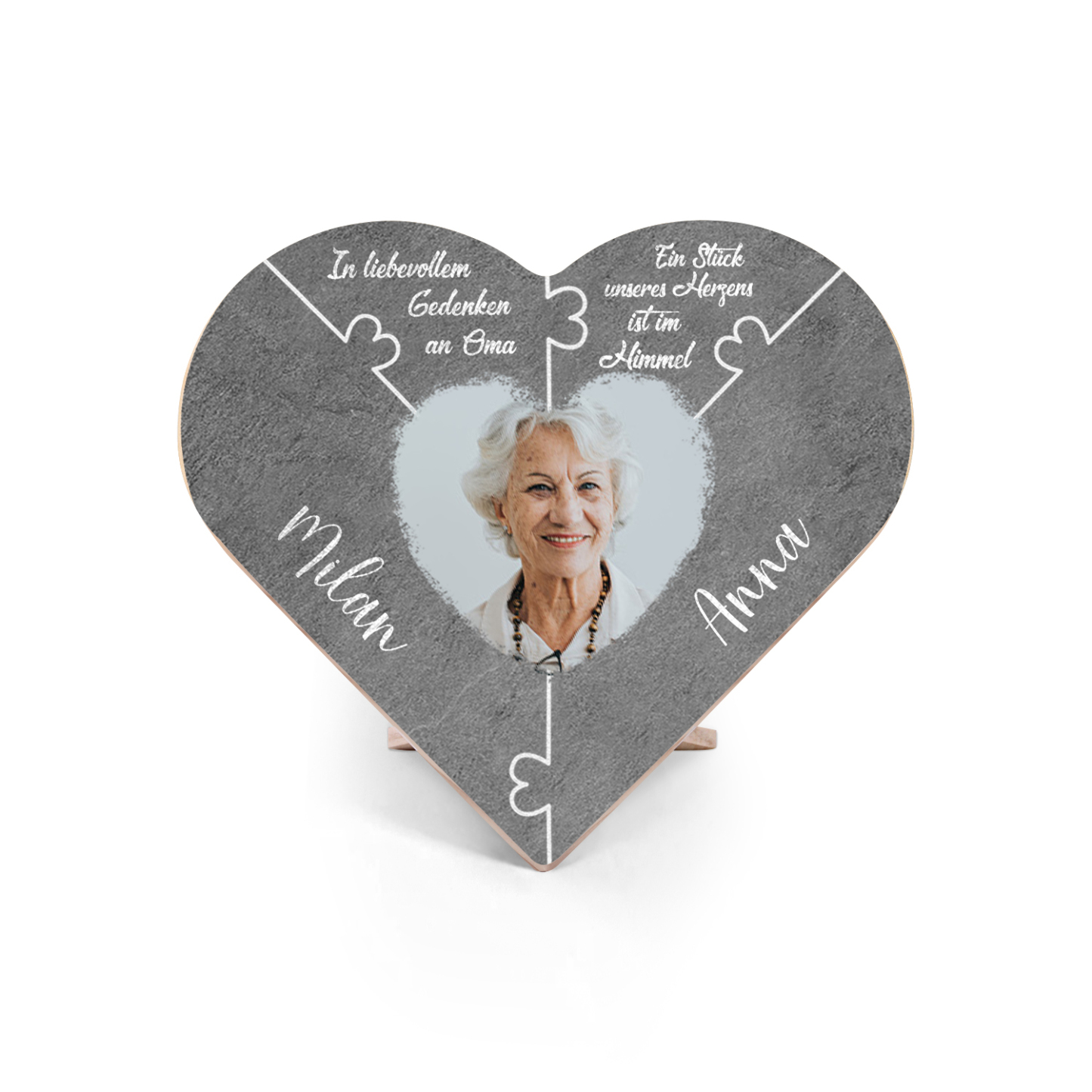 Personalisiertes Foto & 2 Namen Trauer Herzholz-Deko-In liebevollem Gedenken an Oma-Schreibtischdekoration Holz Ornament