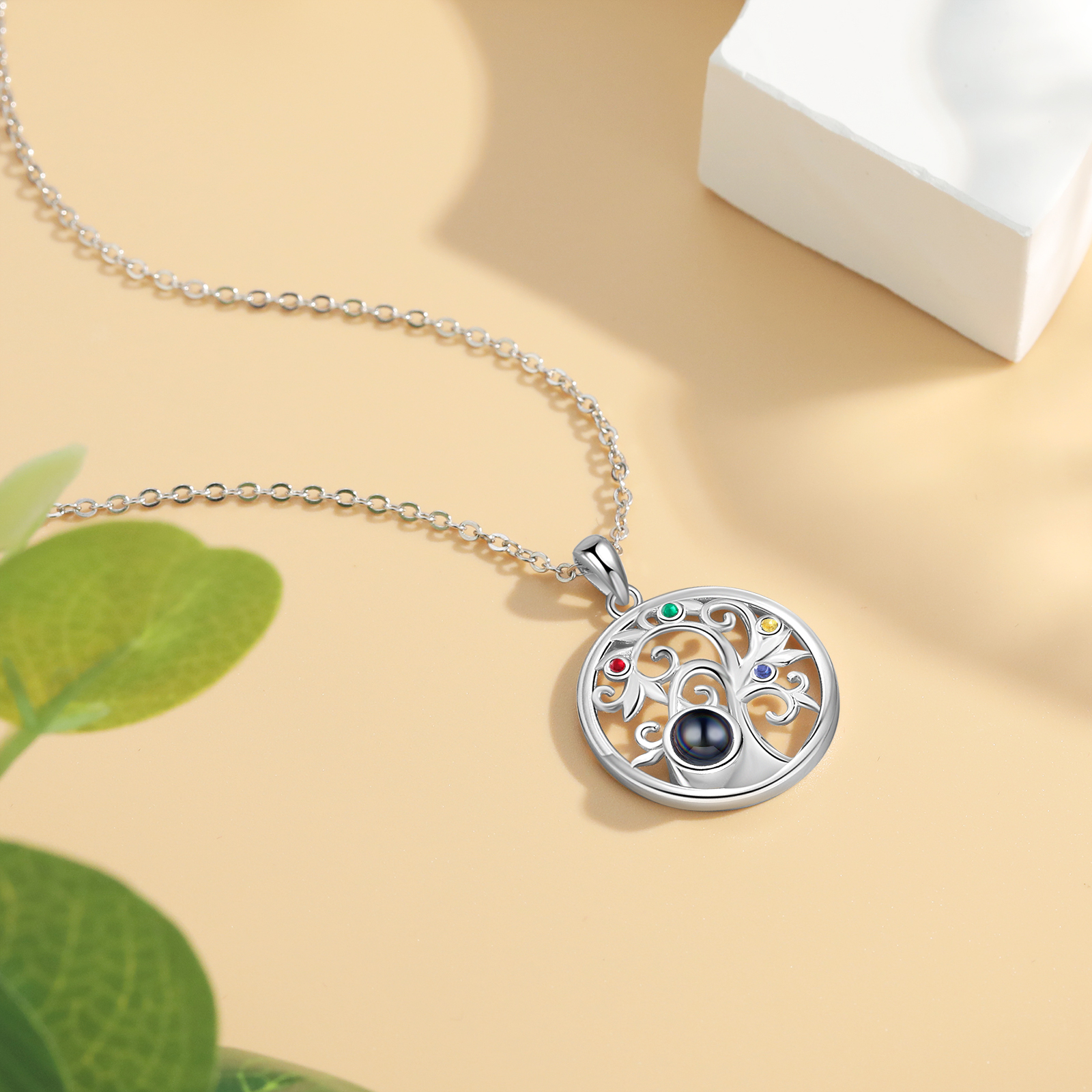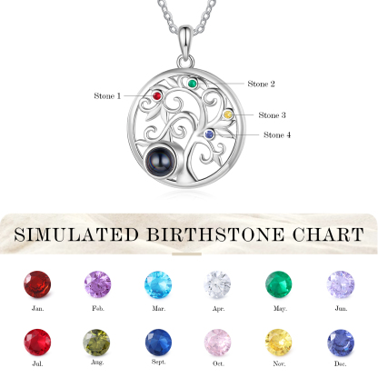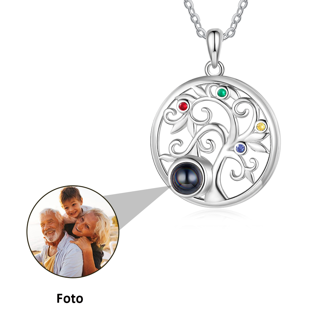 Personalisiertes Foto & 4 Geburtssteine Familienbaum Projektion Halskette
