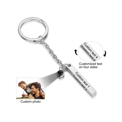 Personalisiertes Foto 4 Texte Projektion Vertikale Bar Schlüsselanhänger für Vater