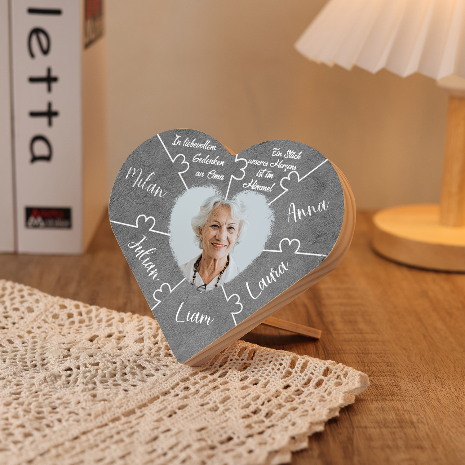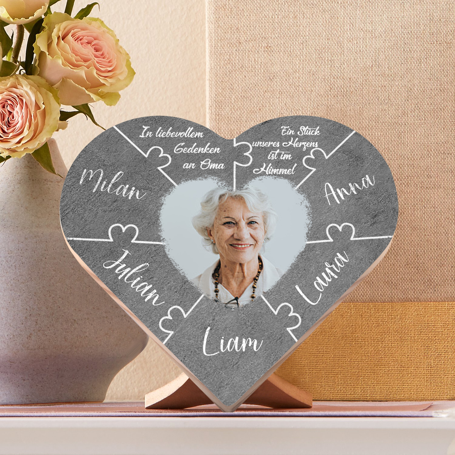 Personalisiertes Foto & 5 Namen Trauer Herzholz-Deko-In liebevollem Gedenken an Oma-Schreibtischdekoration Holz Ornament