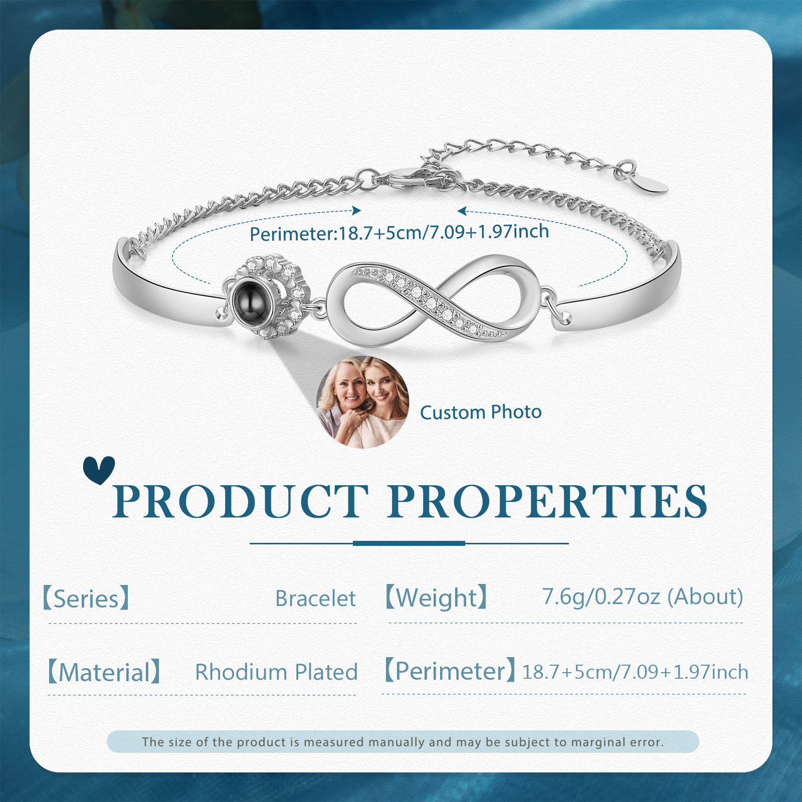 Personalisiertes Foto Blume Projektion Infinity Armband