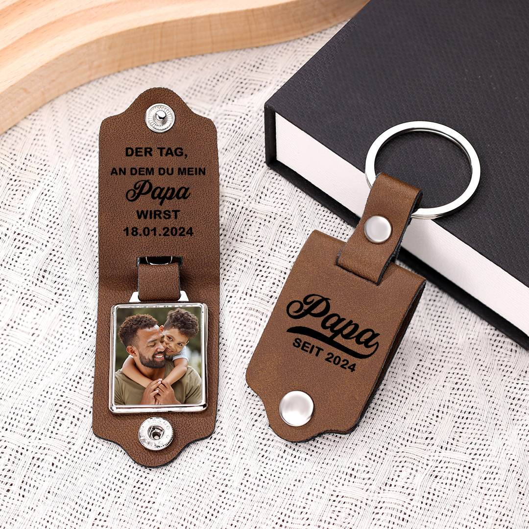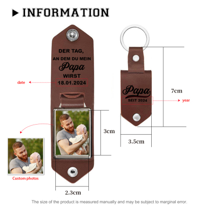 Personalisiertes Foto & Datum & Jahr-Der Tag, an dem du mein Papa wirst-Leder Schlüsselanhänger für Vater