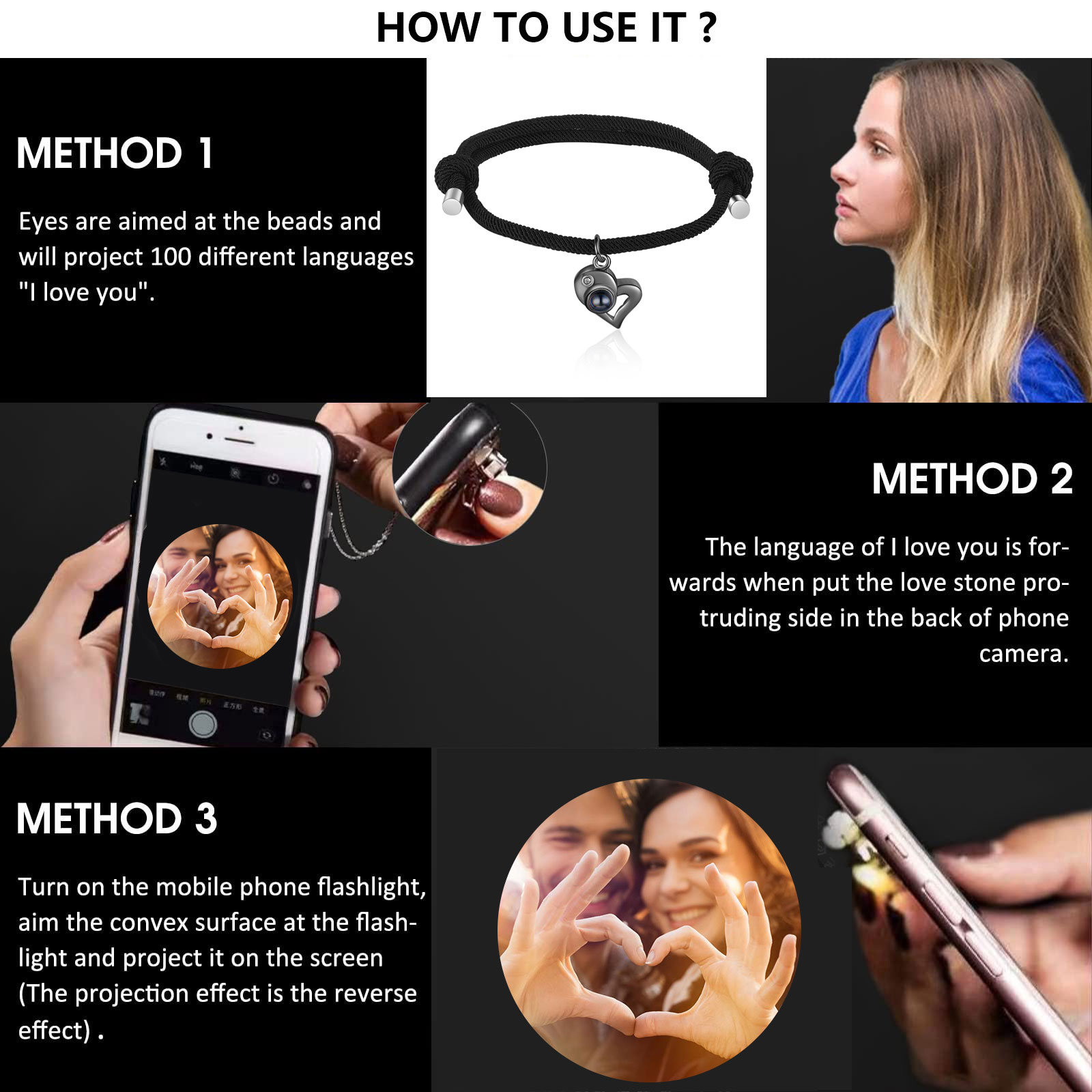 Personalisiertes Foto Herz Projektion Armbänder Set für Paare