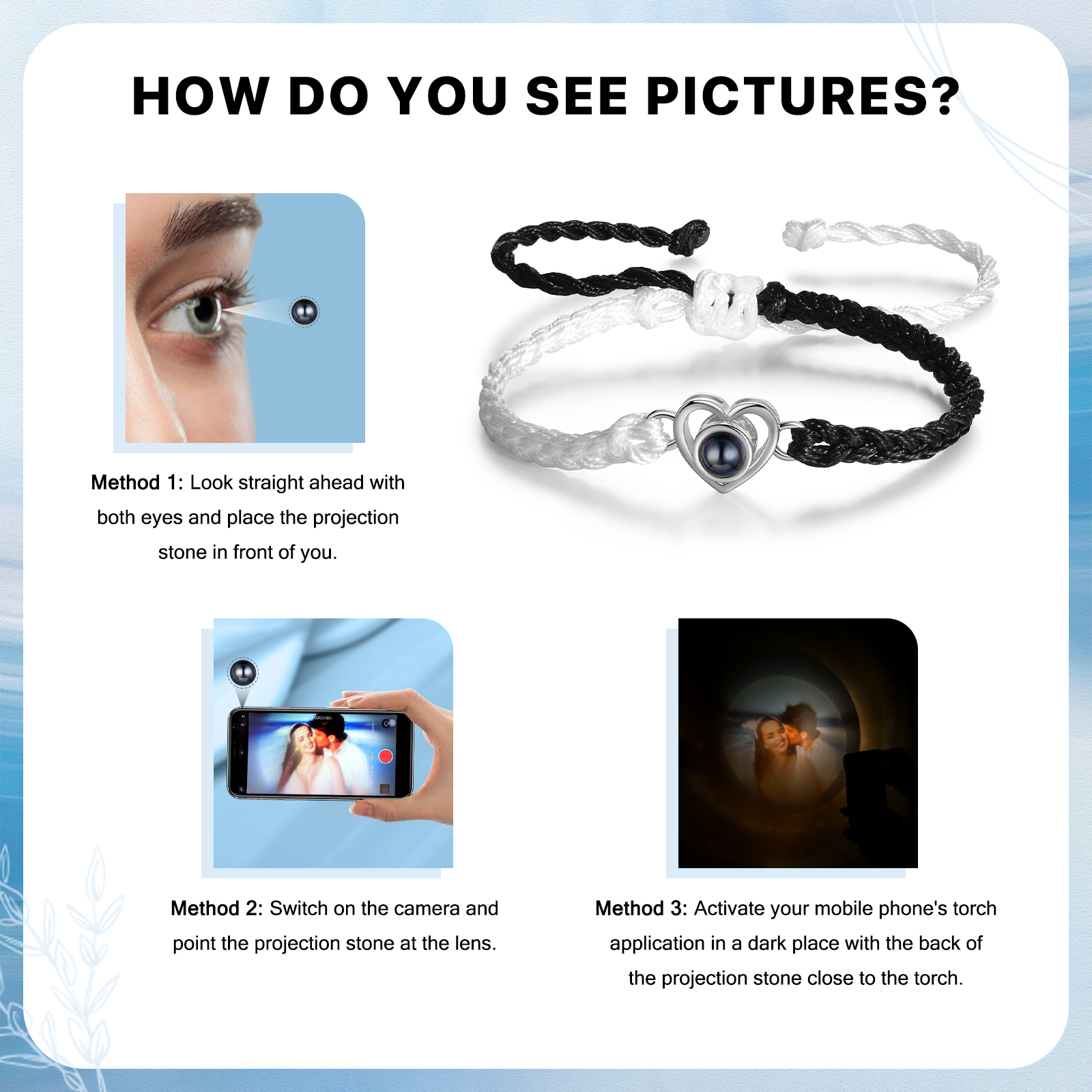 Personalisiertes Foto Herz Projektion Handseil Armband