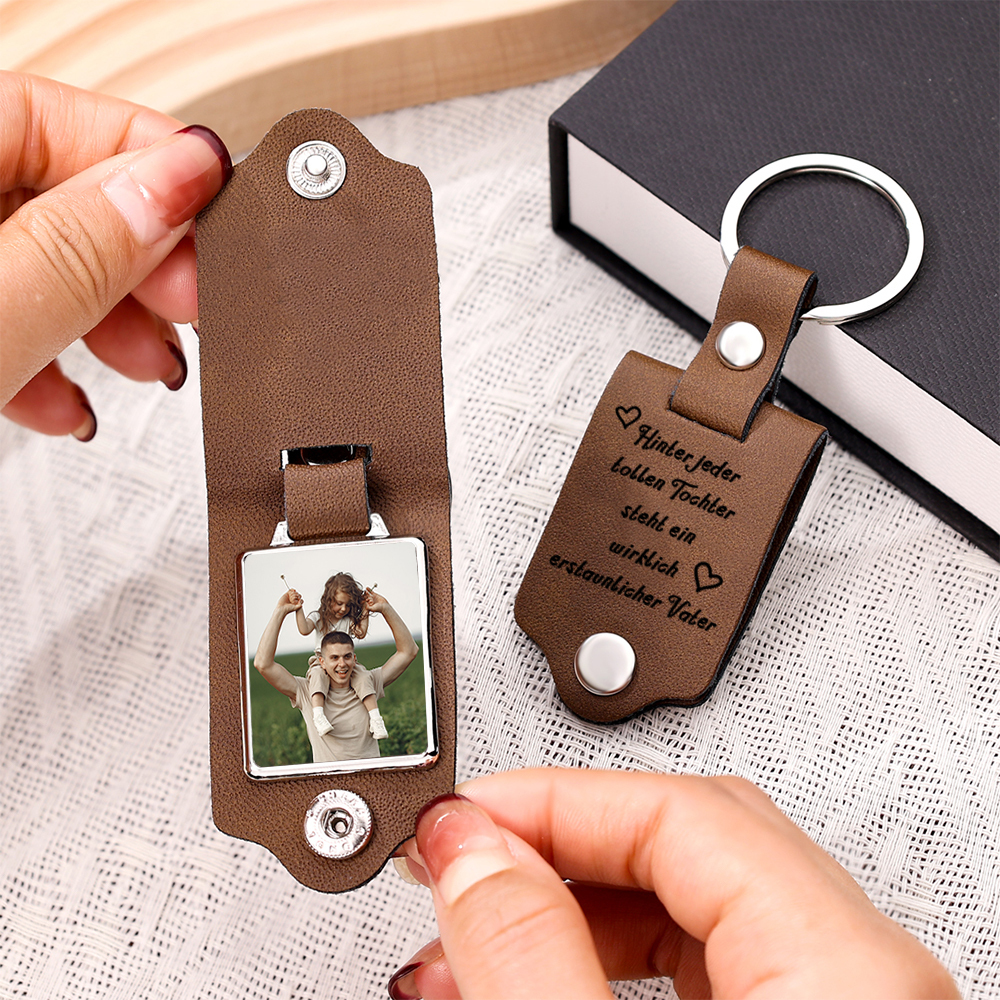 Personalisiertes Foto -Hinter jeder tollen Tochter steht ein wirklich erstaunlicher Vater- Leder Schlüsselanhänger für Vater