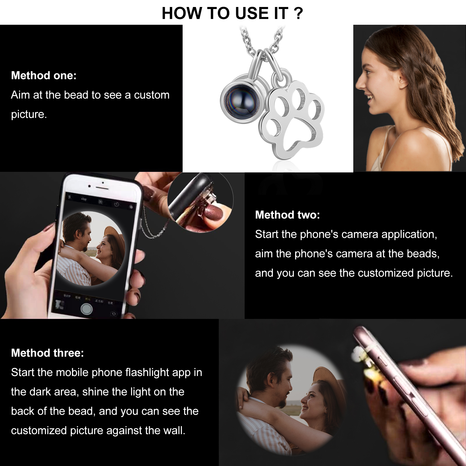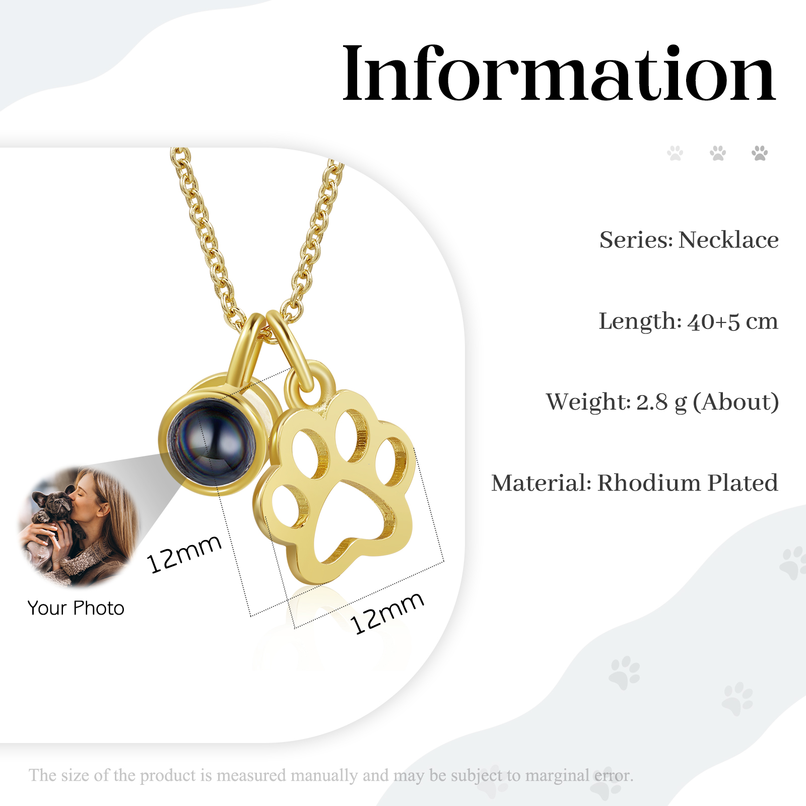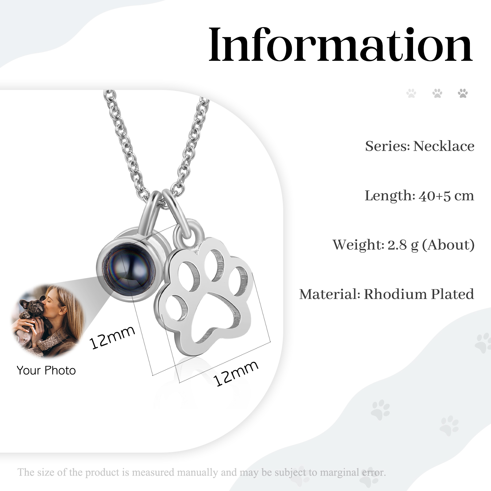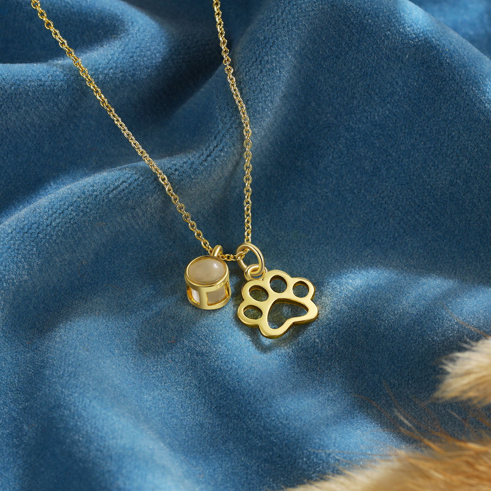 Personalisiertes Foto Hundepfote Projektion Halskette