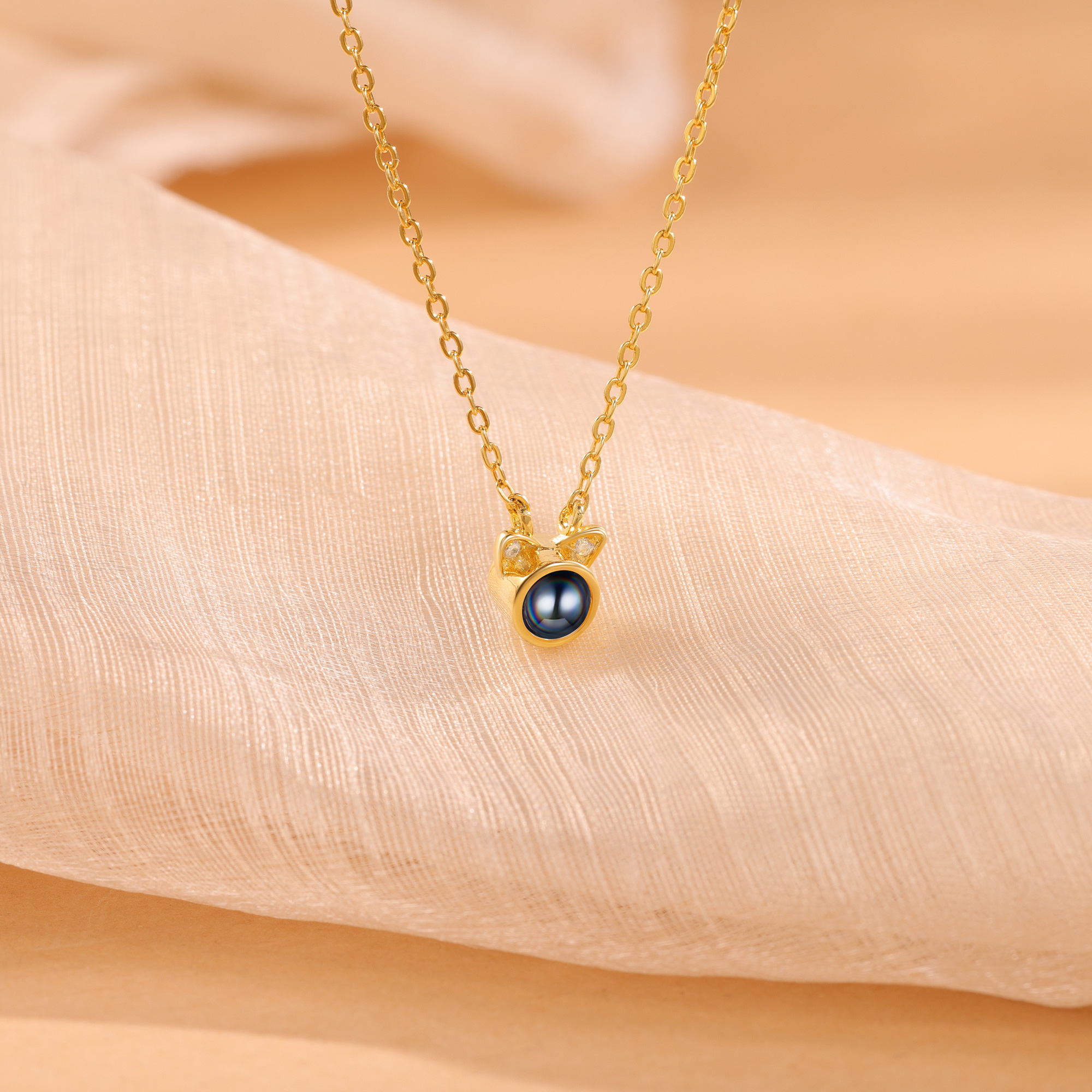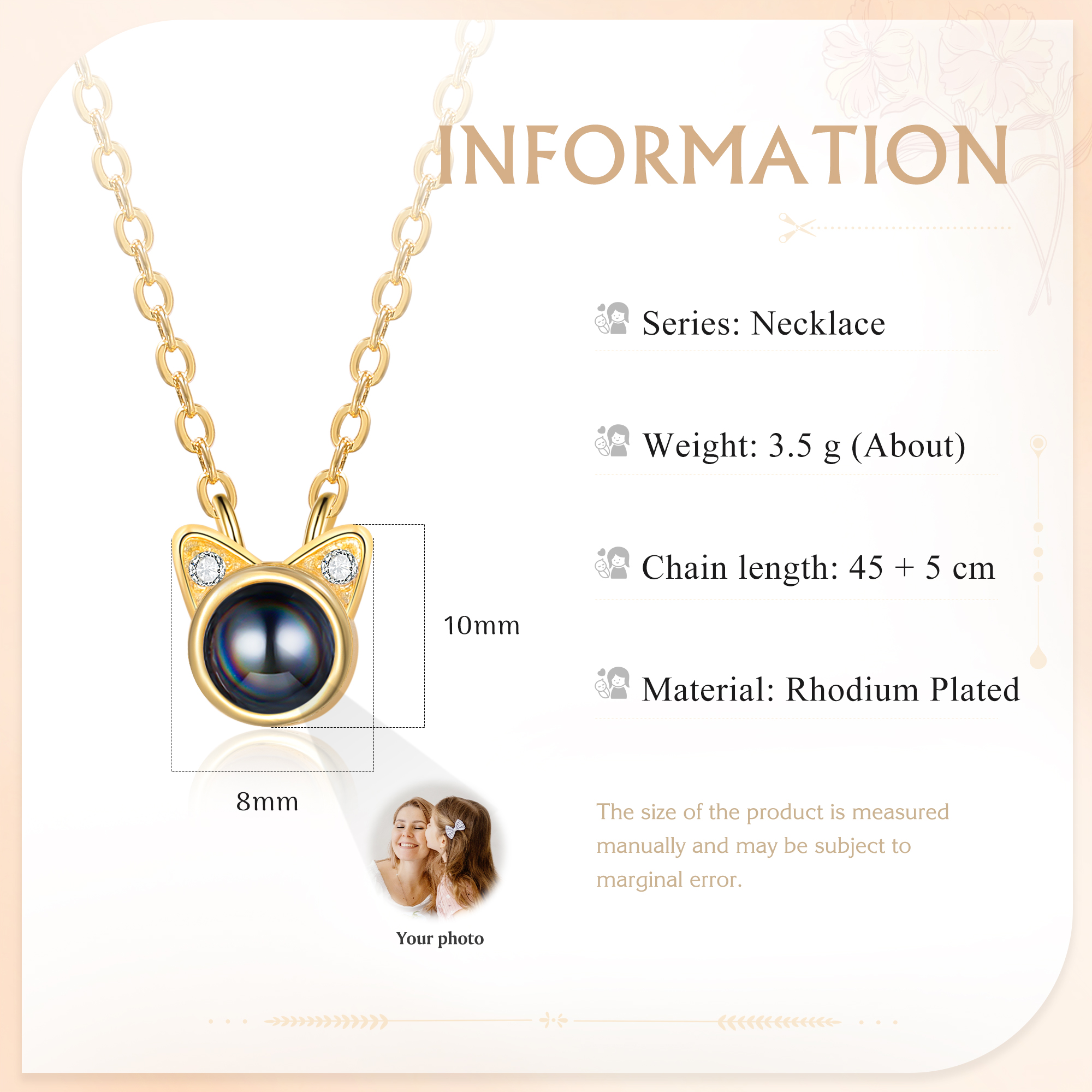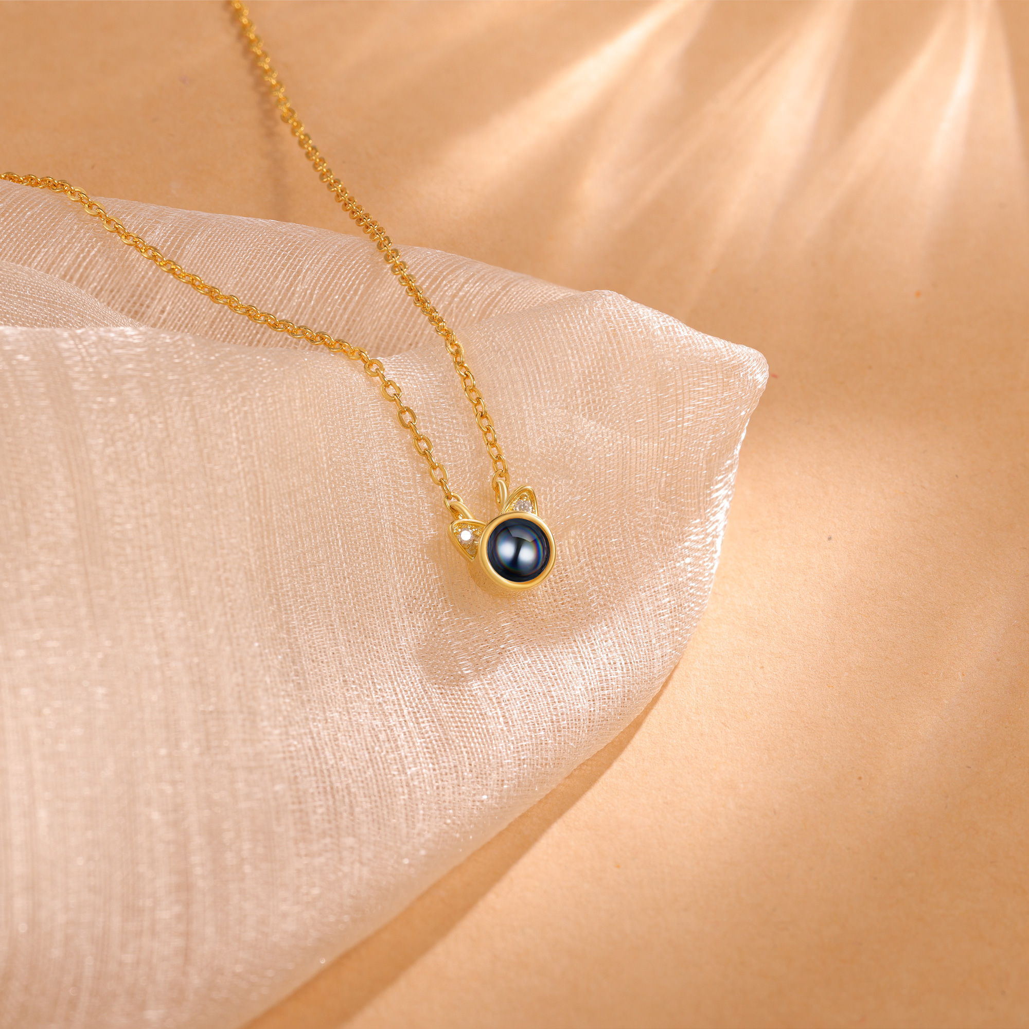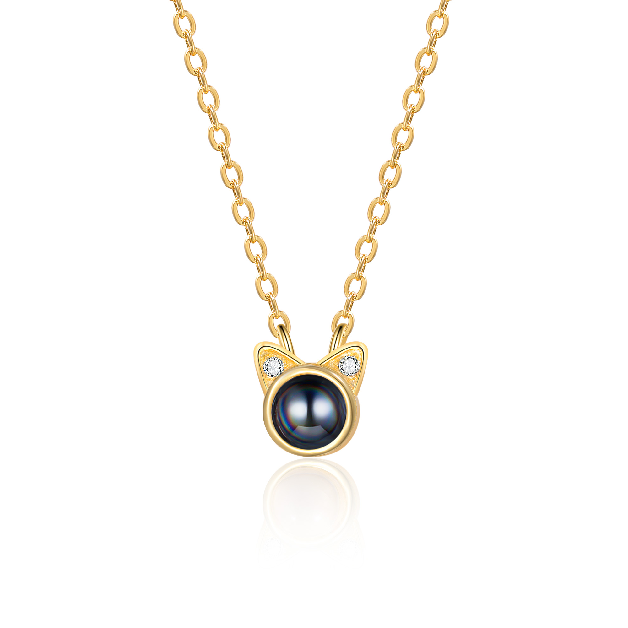 Personalisiertes Foto Katze Projektion Golden Halskette mit Zirkonia