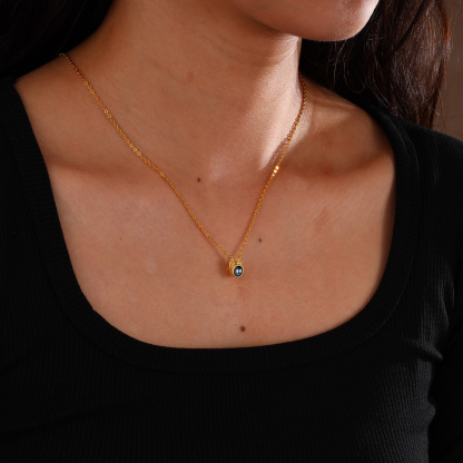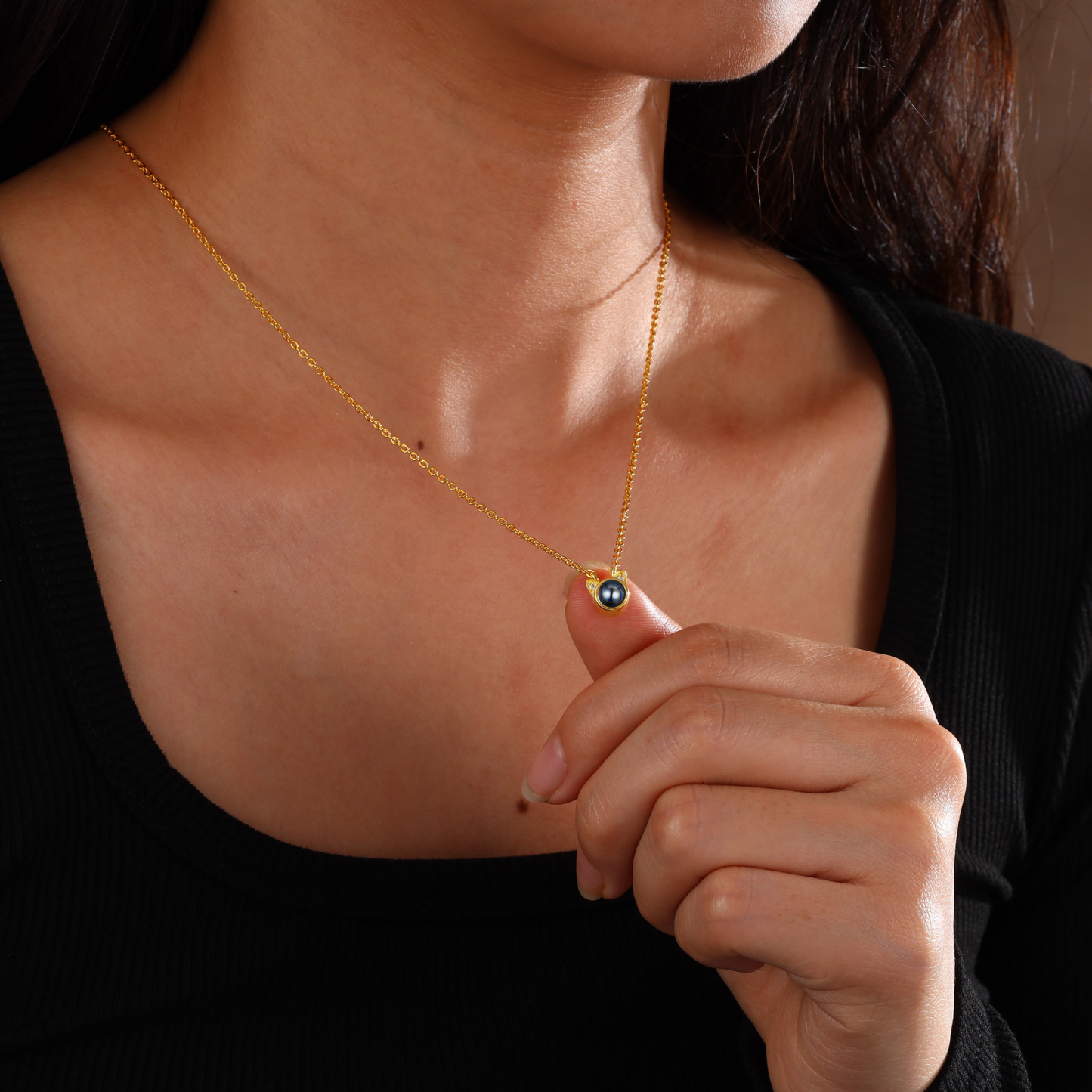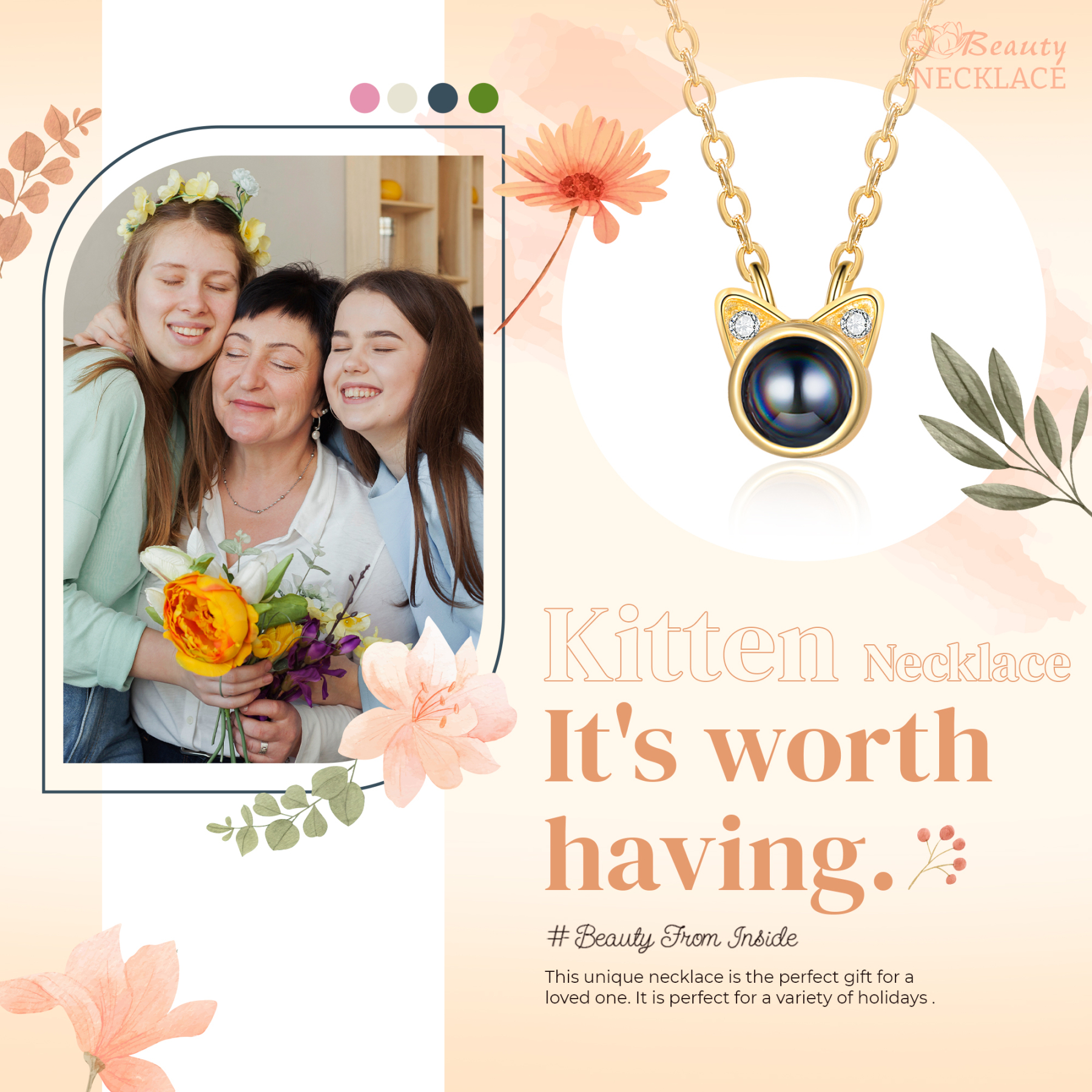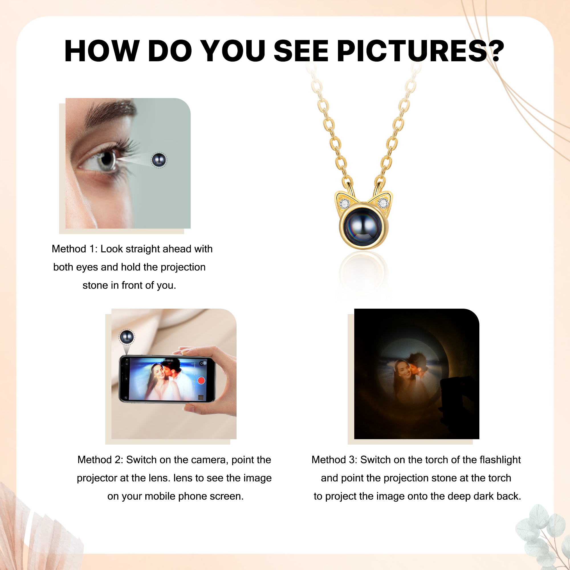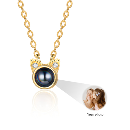 Personalisiertes Foto Katze Projektion Golden Halskette mit Zirkonia