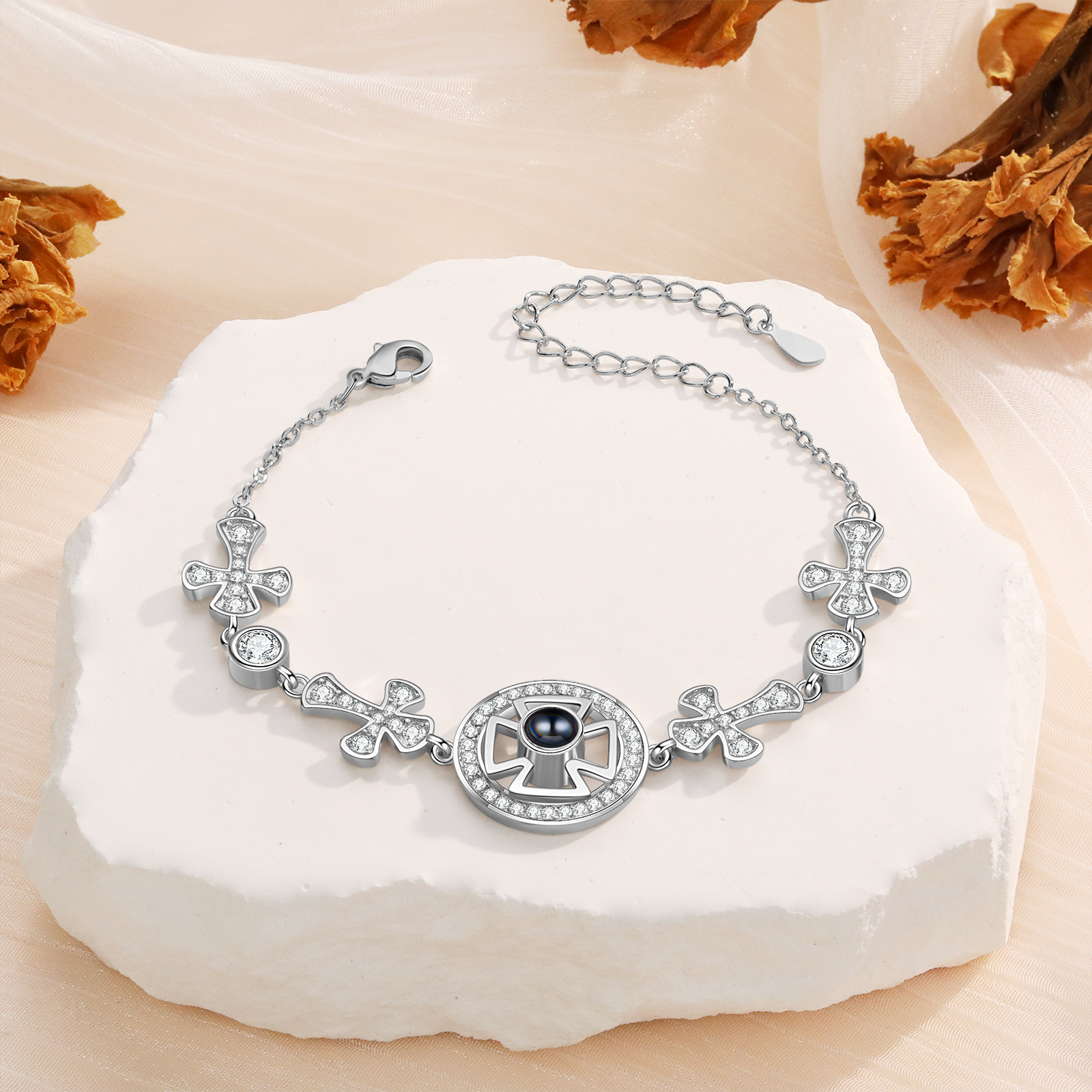 Personalisiertes Foto Kreuz im Herzen Projektion Armband Kreuz Kette mit Zirkonia