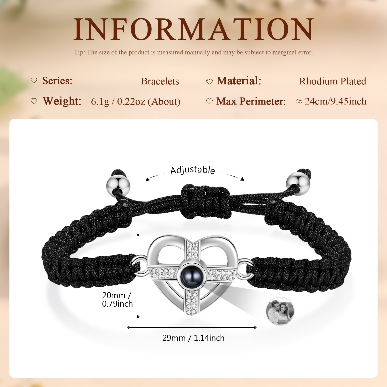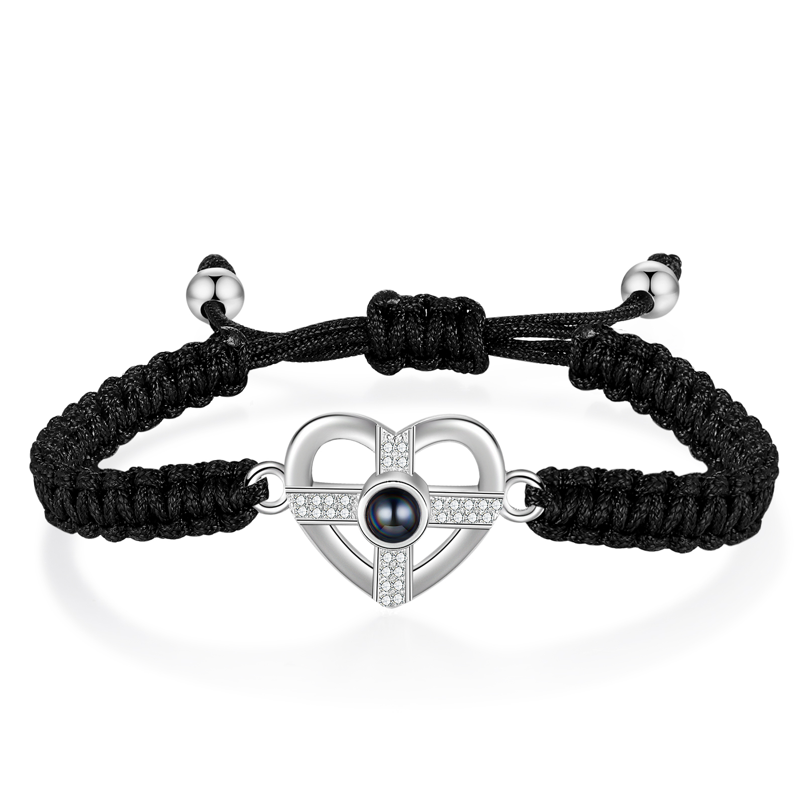 Personalisiertes Foto Kreuz im Herzen Projektion Handseil Armband mit Zirkonia