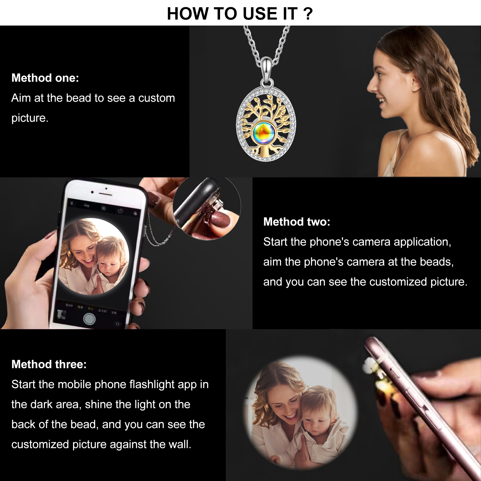 Personalisiertes Foto Lebensbaum Projektion Halskette mit Zirkonia