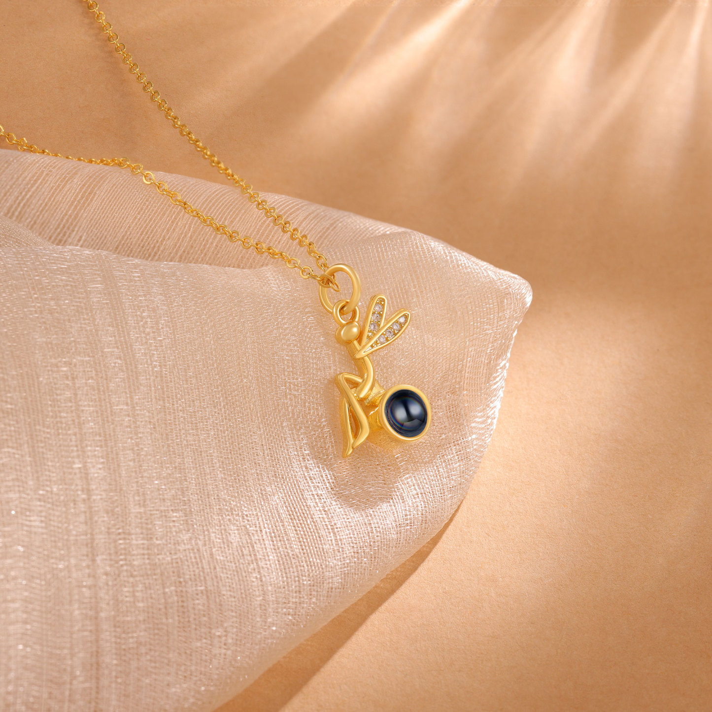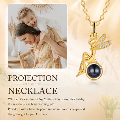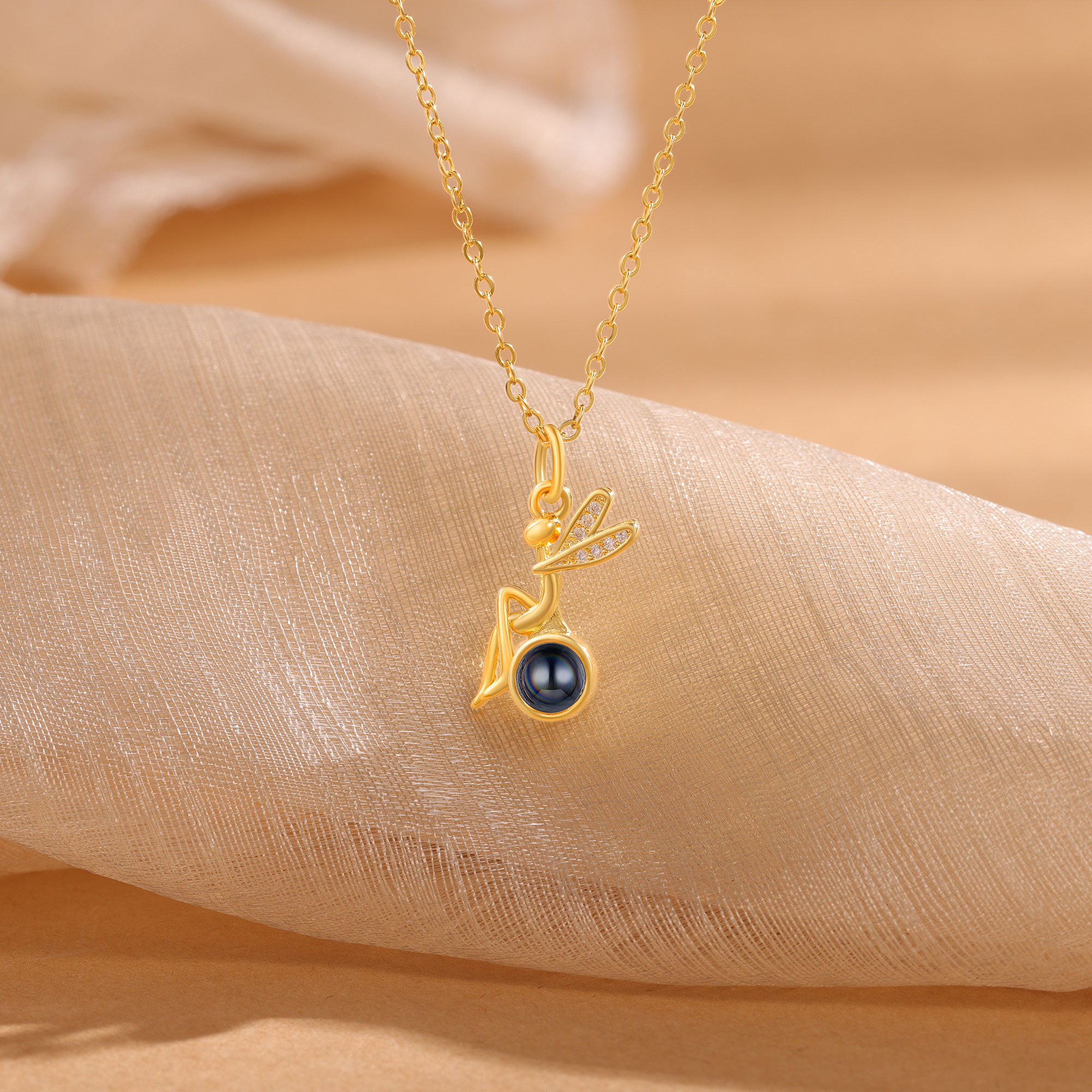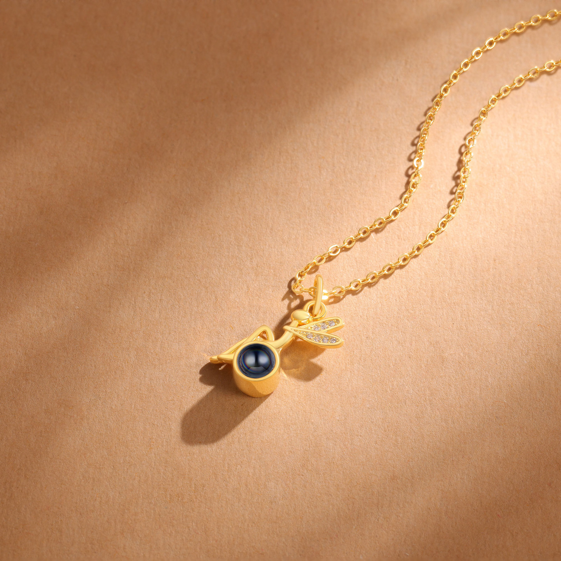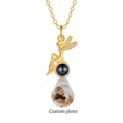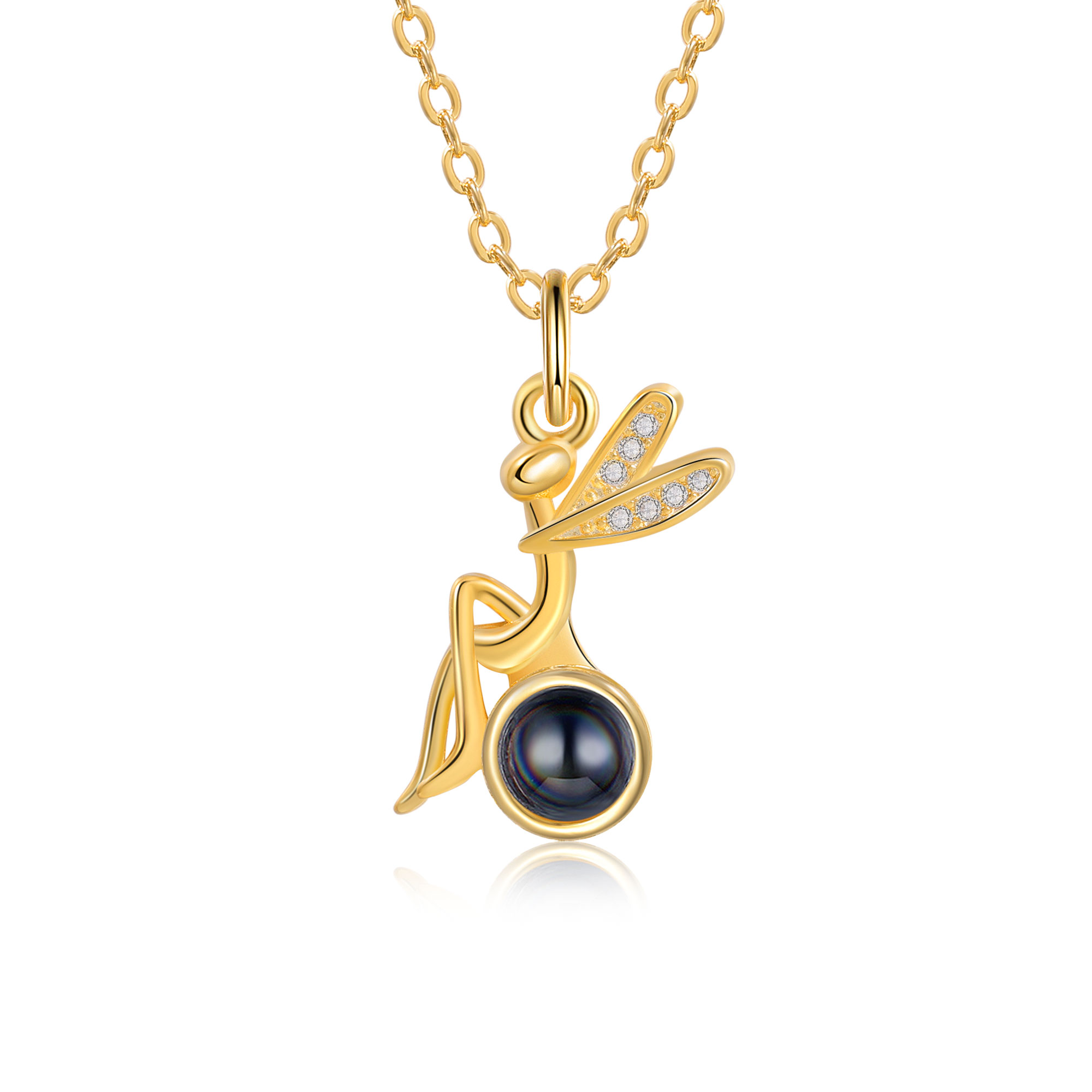 Personalisiertes Foto Libelle Projektion Golden Halskette mit Zirkonia