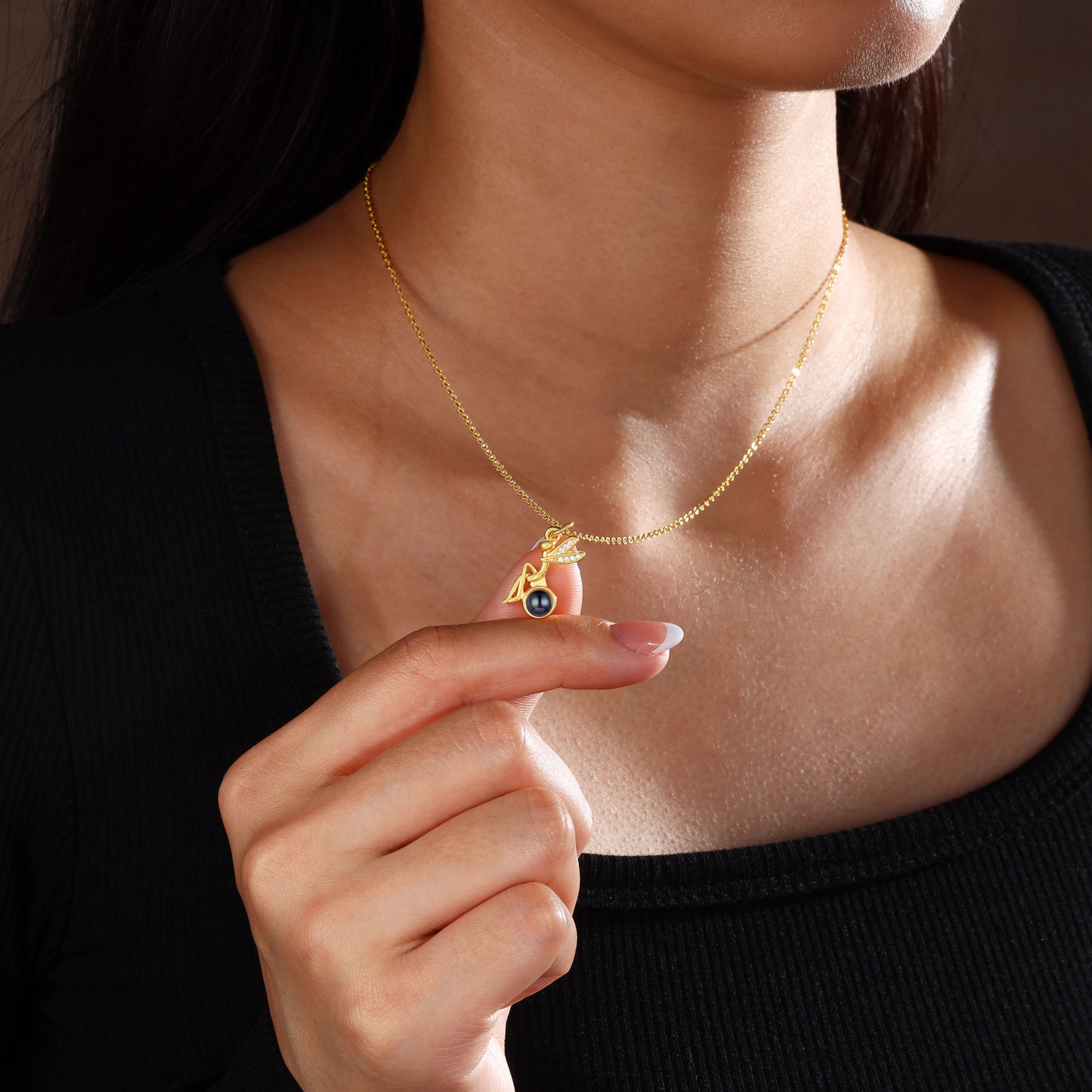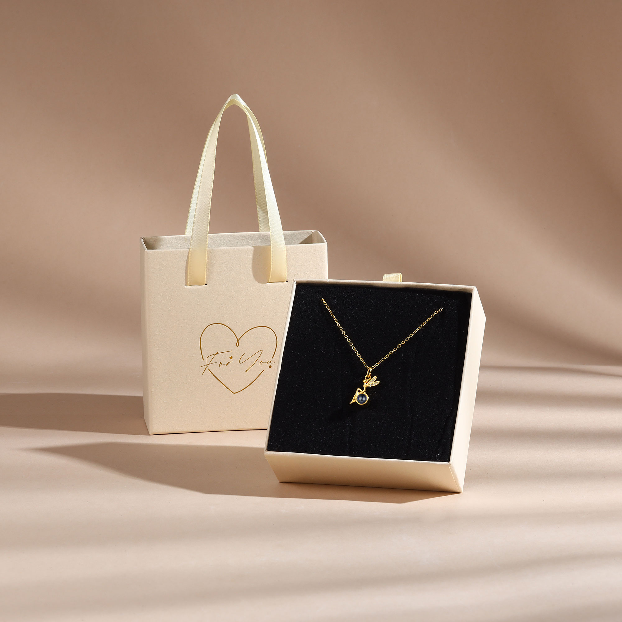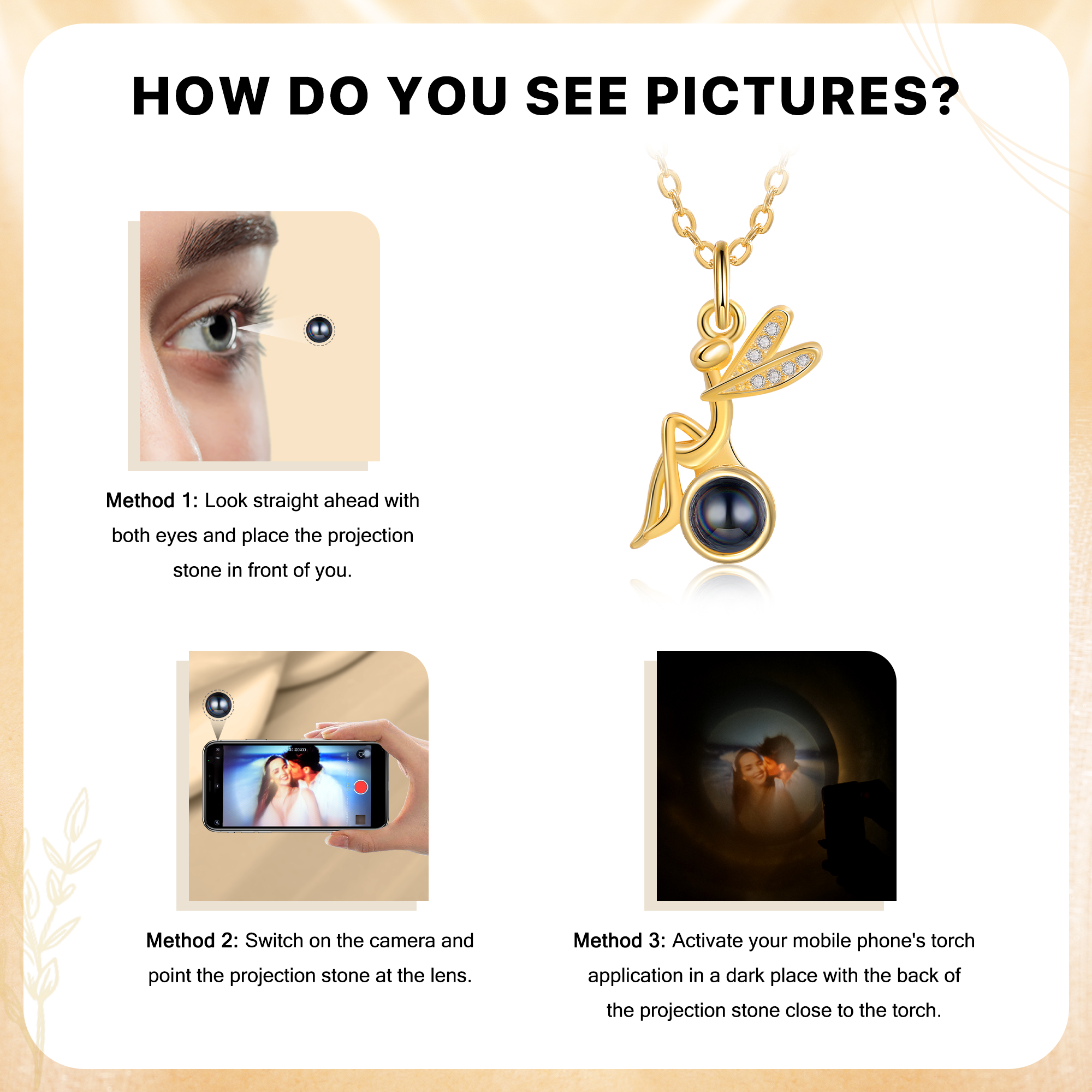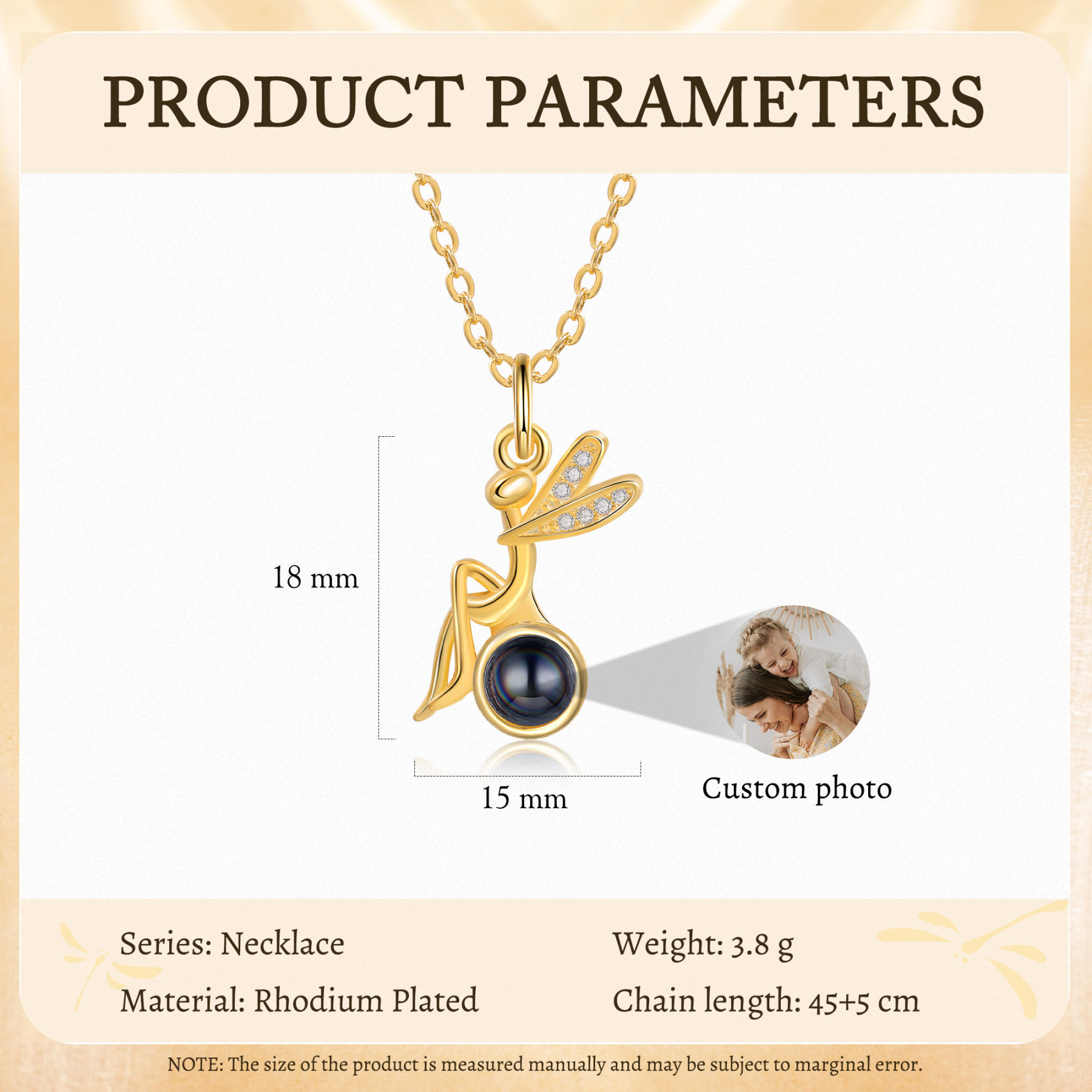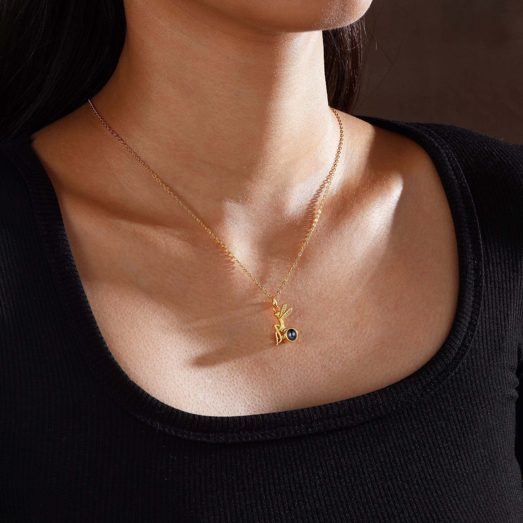 Personalisiertes Foto Libelle Projektion Golden Halskette mit Zirkonia
