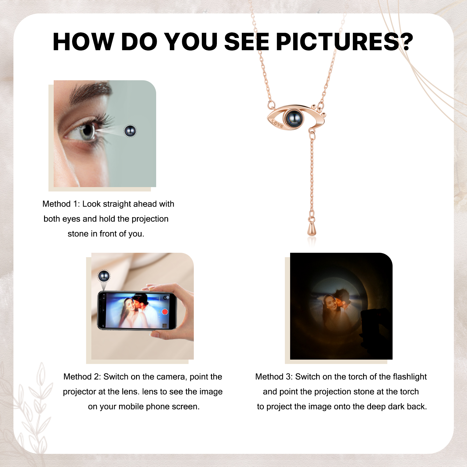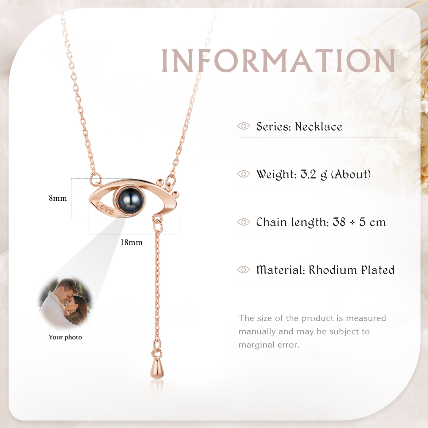 Personalisiertes Foto Love Auge Projektion Halskette