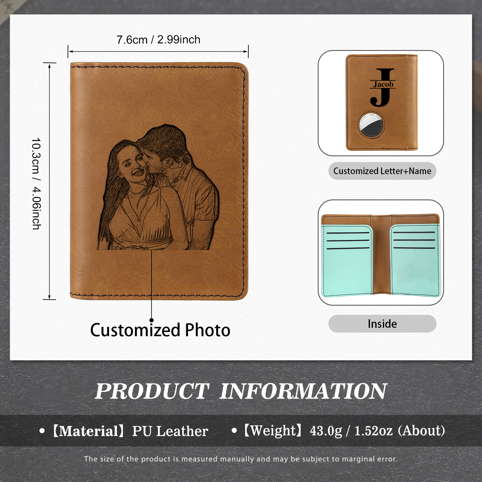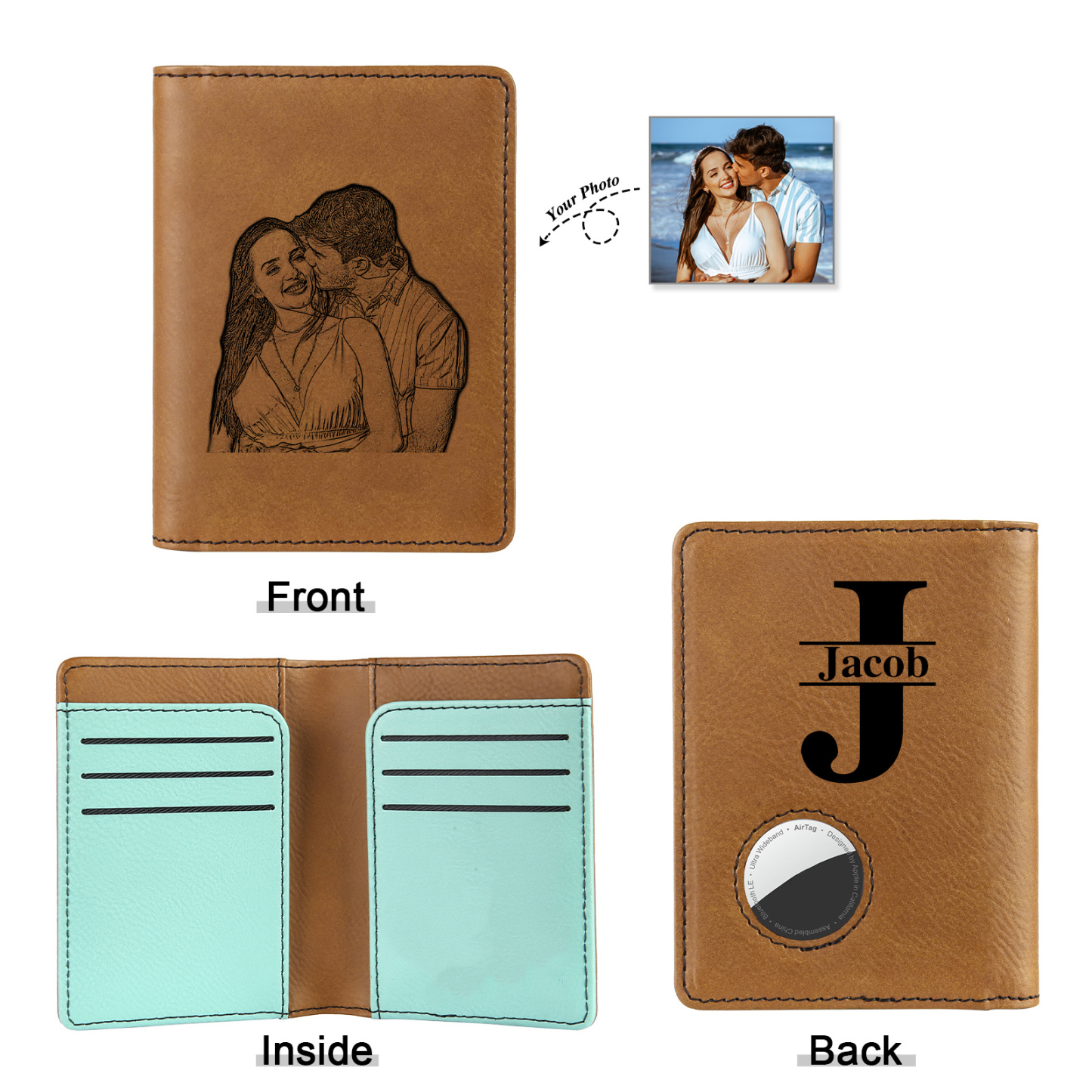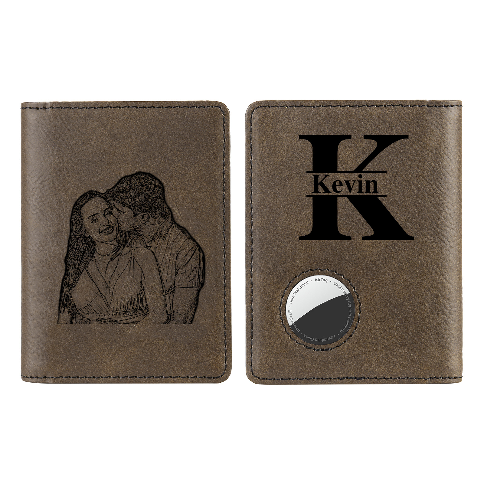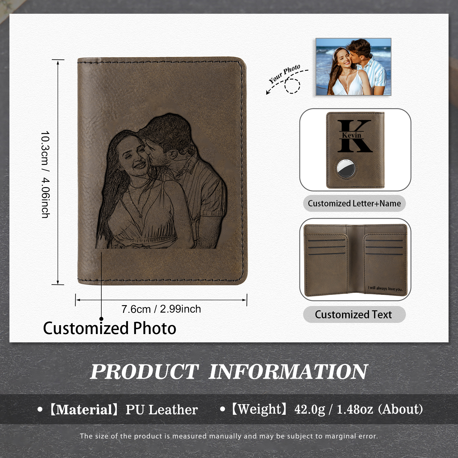 Personalisiertes Foto & Name & 1 Buchstabe & 1 Text PU-Leder Herrren Geldbörse
