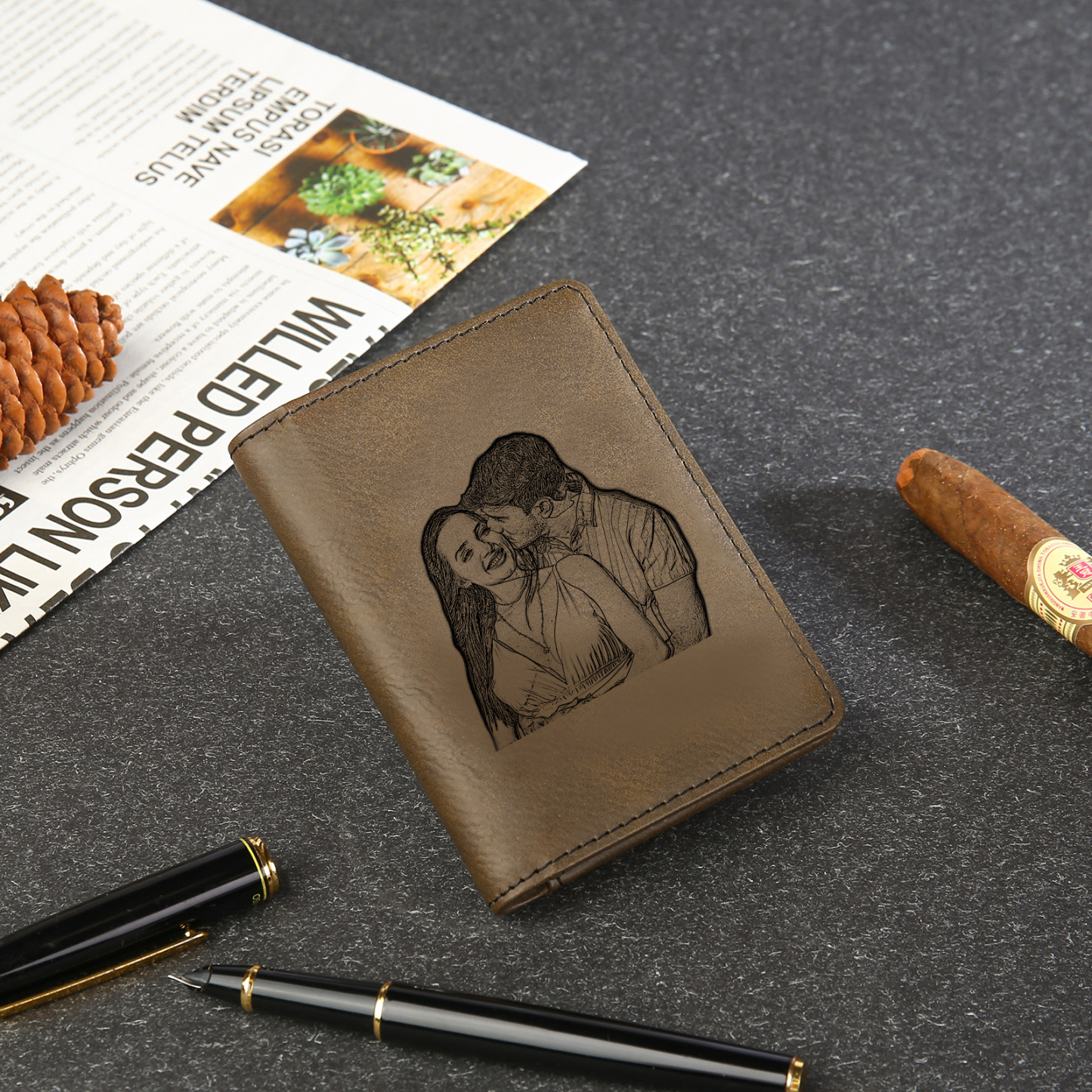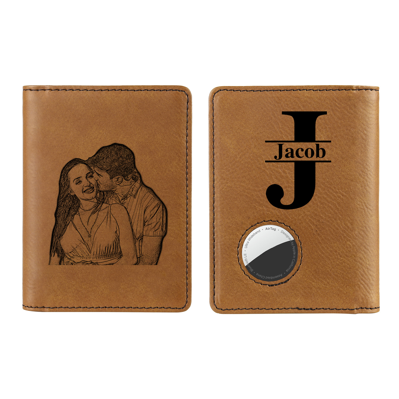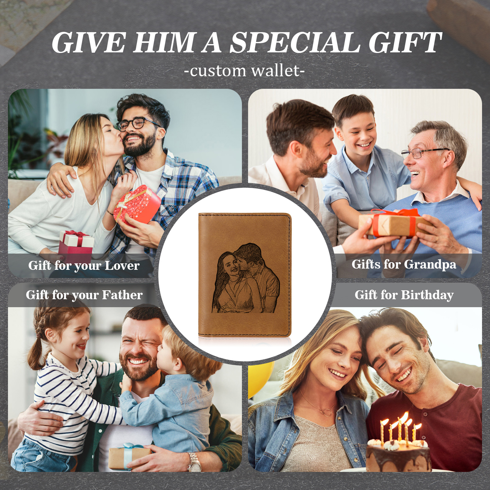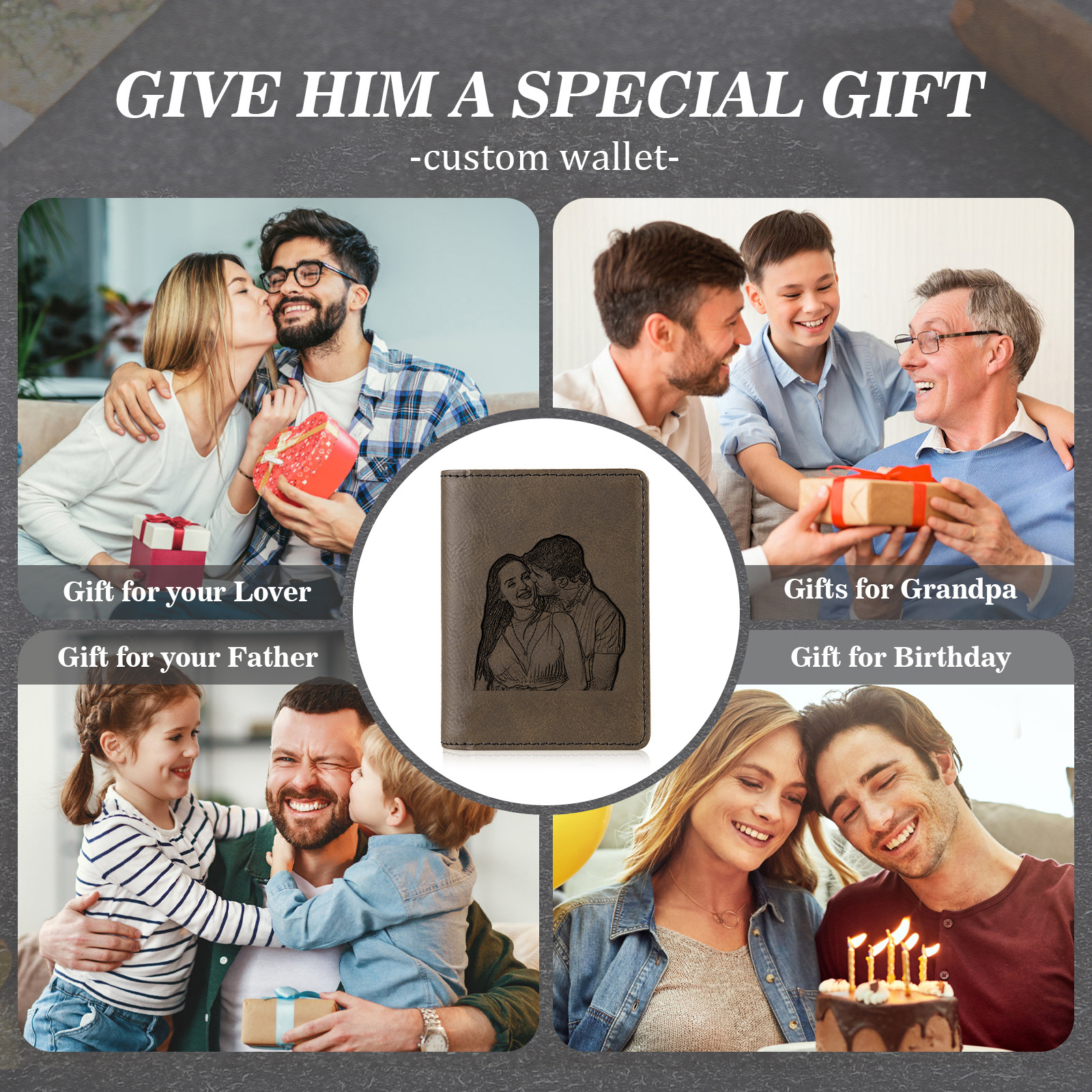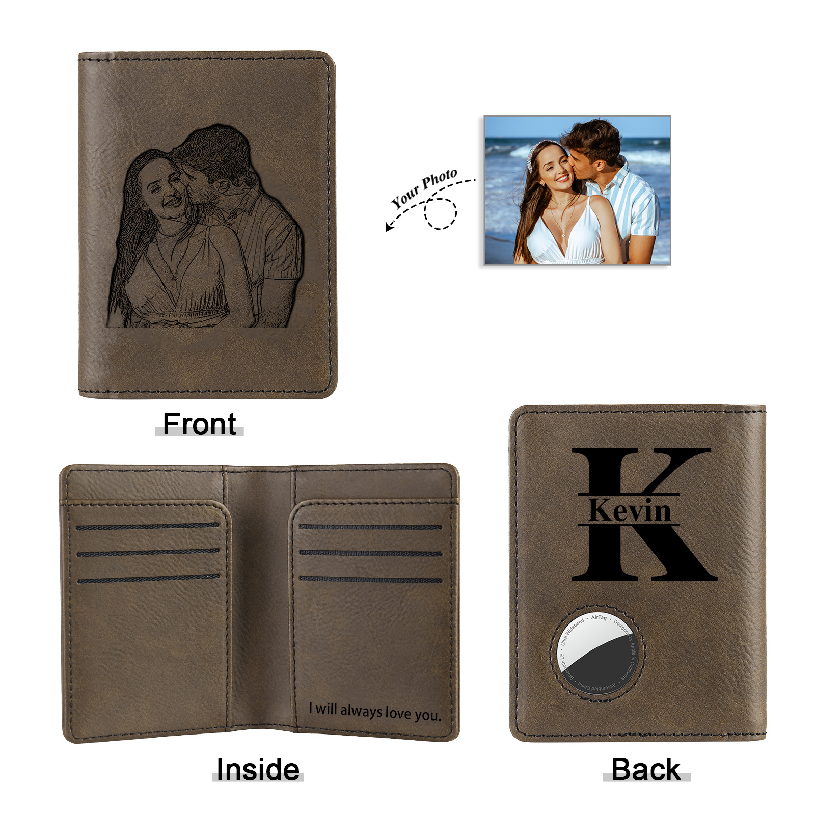 Personalisiertes Foto & Name & 1 Buchstabe & 1 Text PU-Leder Herrren Geldbörse