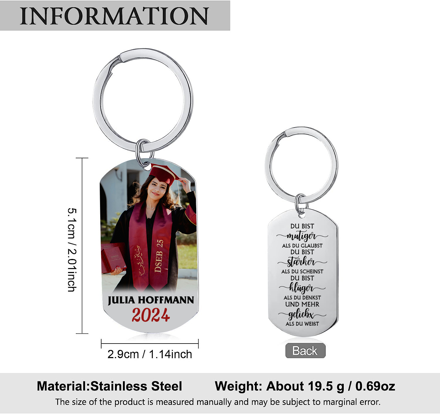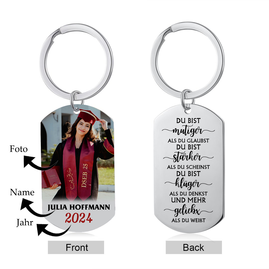 Personalisiertes Foto & Name & Jahr Schlüsselanhänger - Du bist mehr geliebt als du weißt - Abschluss Wunsch Geschenk