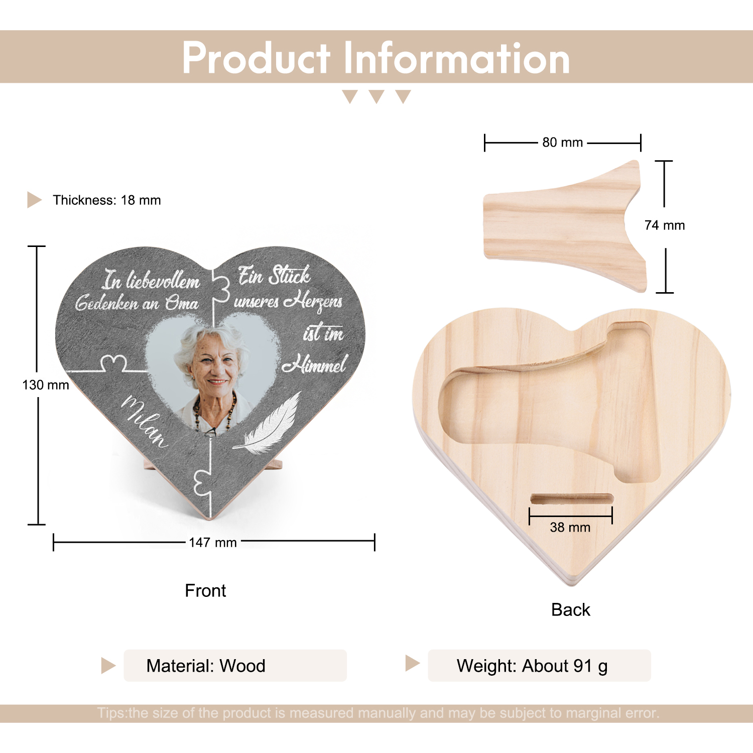 Personalisiertes Foto & Name Trauer Herzholz-Deko-In liebevollem Gedenken an Oma-Schreibtischdekoration Holz Ornament