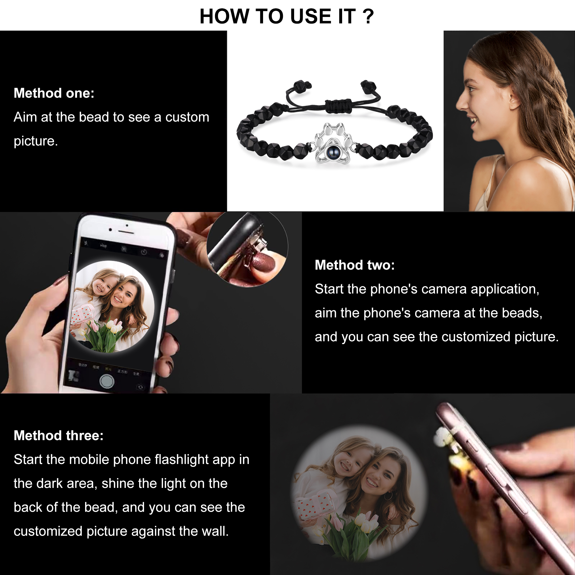 Personalisiertes Foto Pfotenabdrücke Projektion Edelstahl Perle Armband