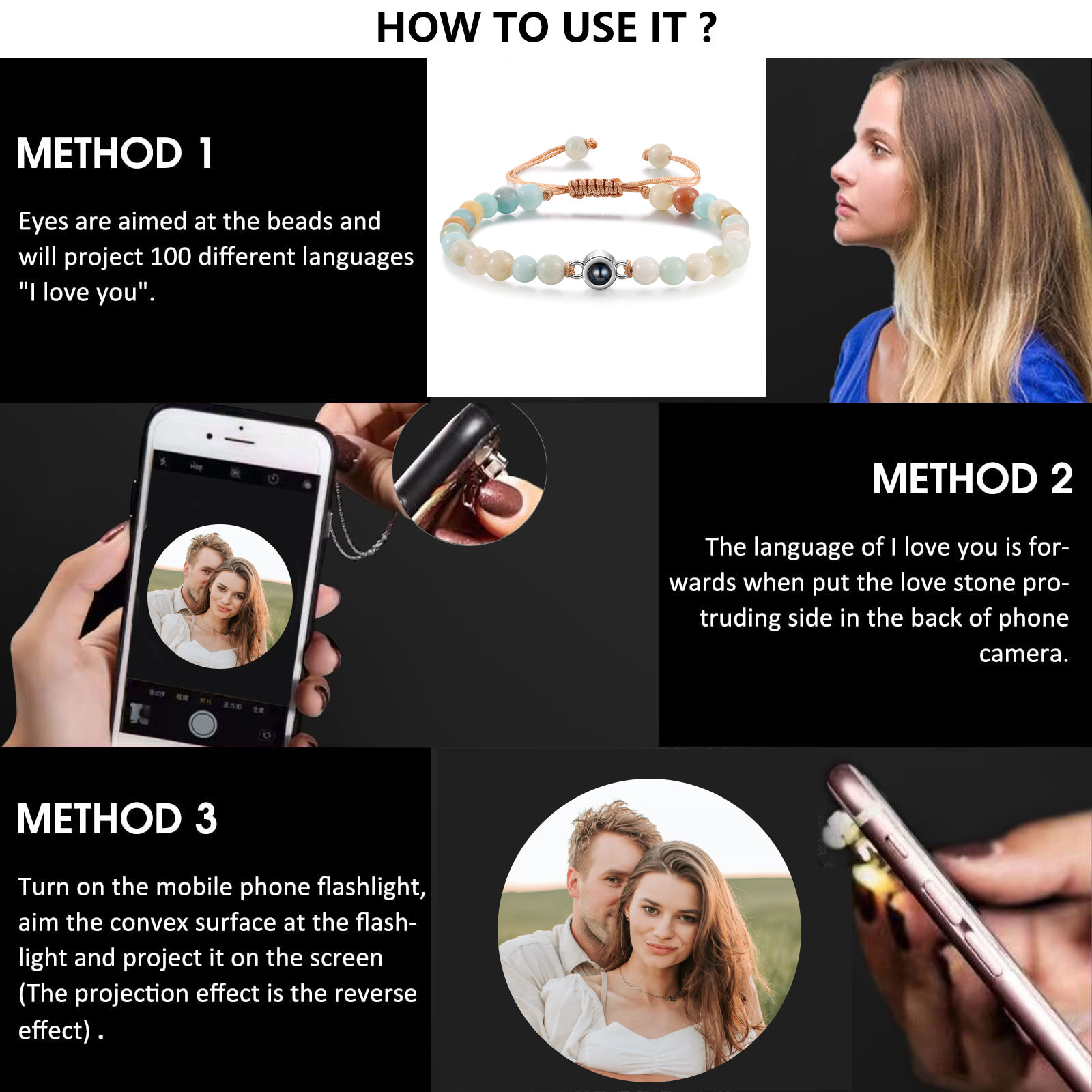 Personalisiertes Foto Rund Projektion Handseil Armband mit Kristallstein Perle