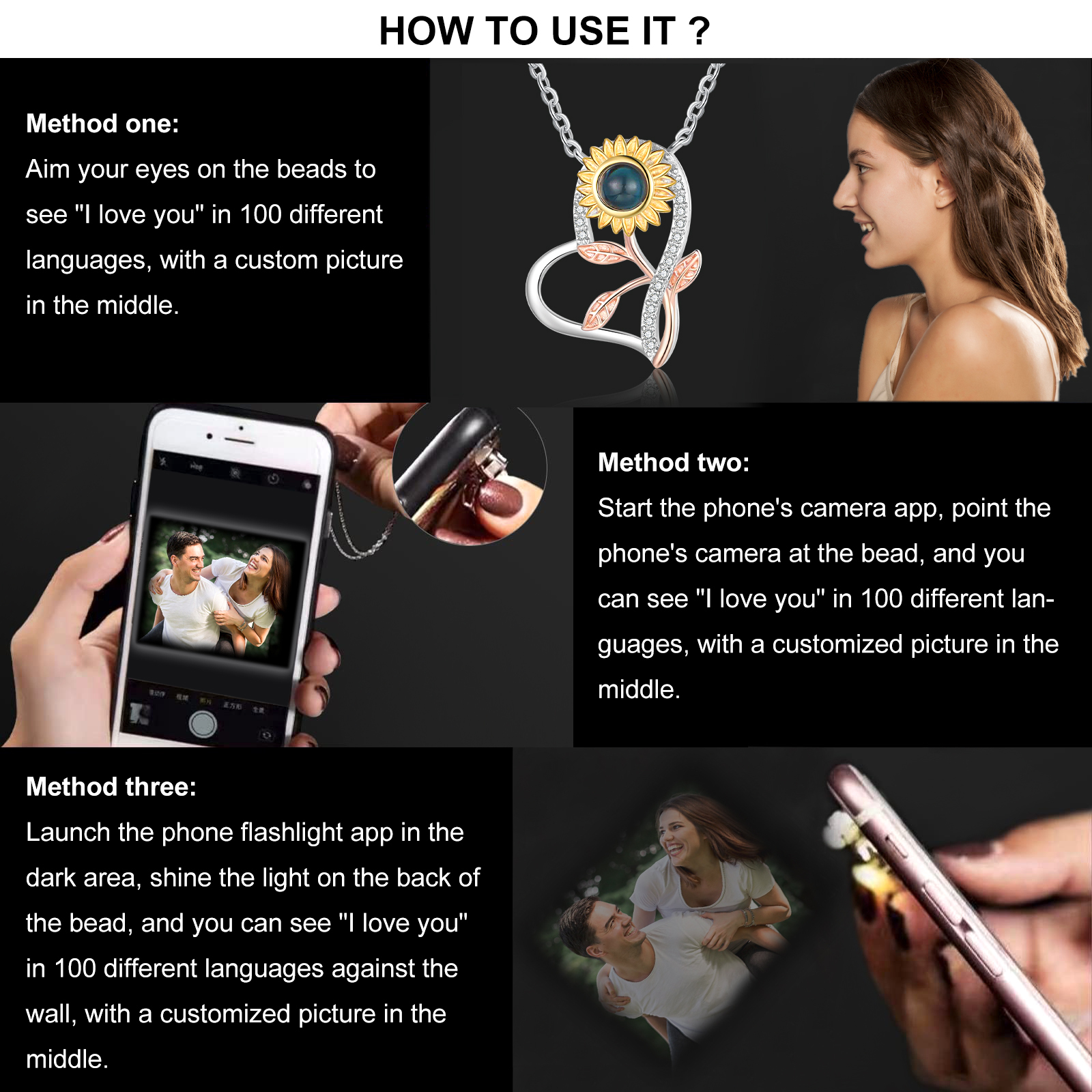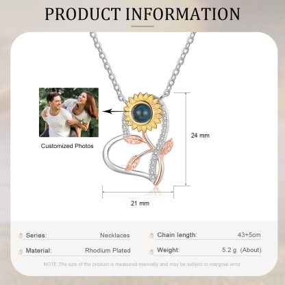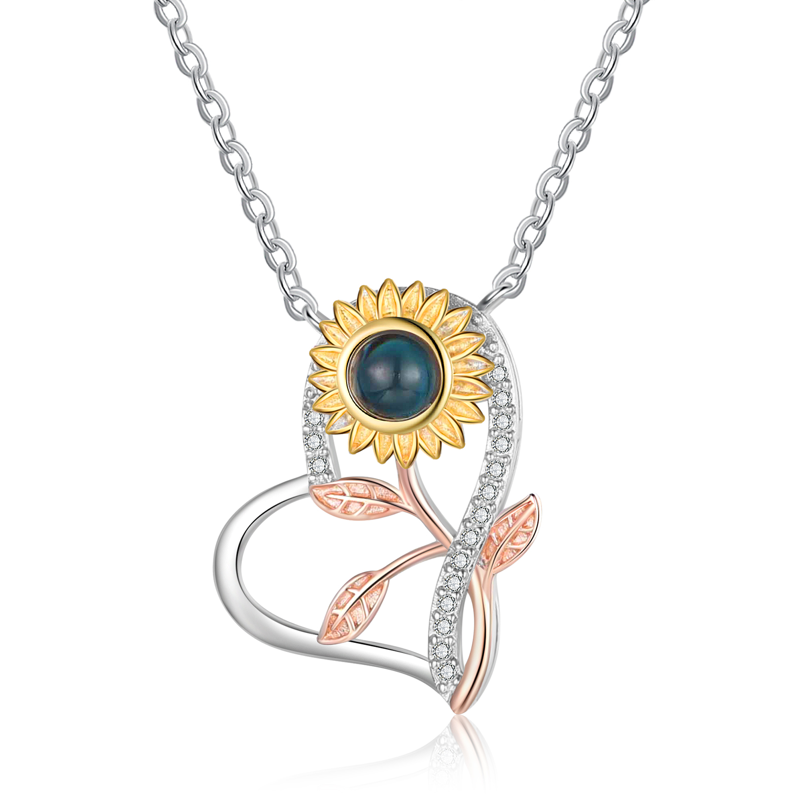Personalisiertes Foto Sonnenblume Projektion Herz Halskette