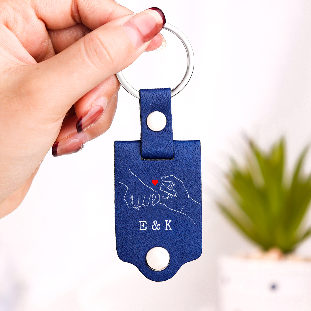 Personalisiertes Foto & Text & 2 Buchstaben Leder Schlüsselanhänger für Paar