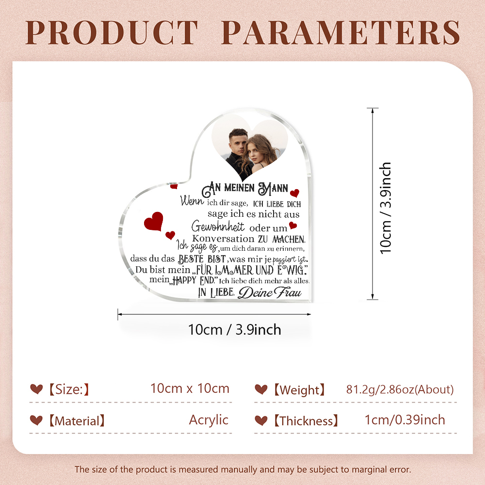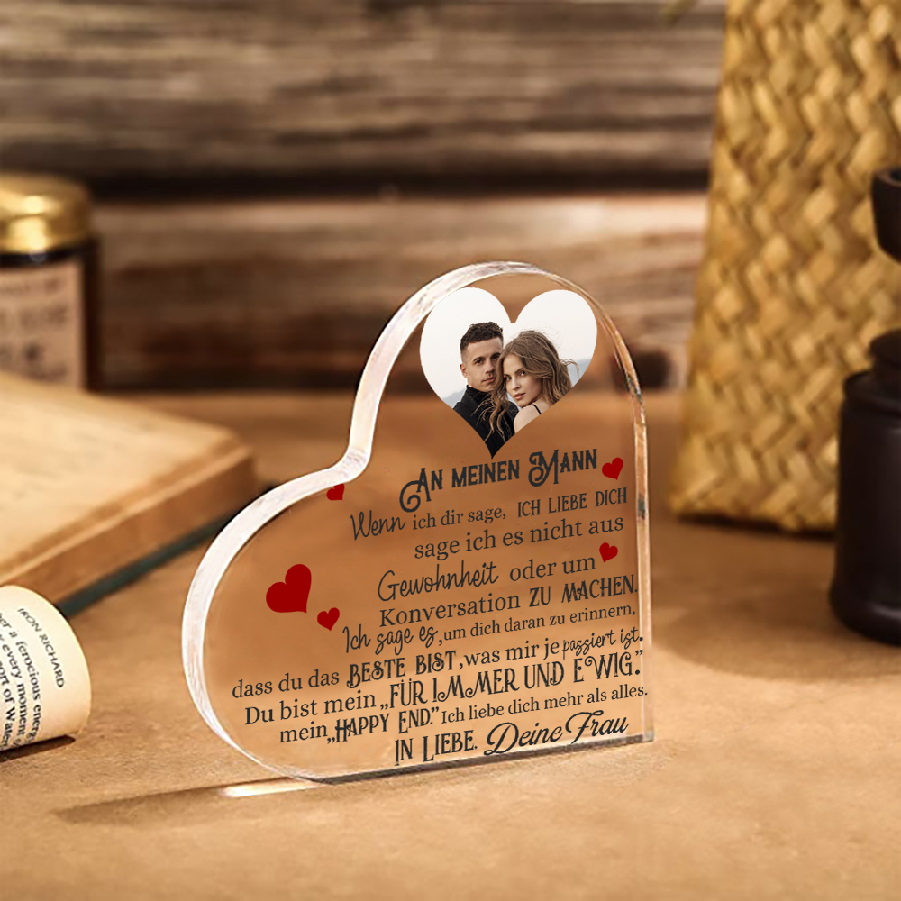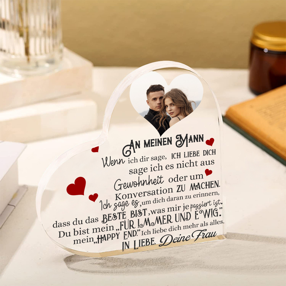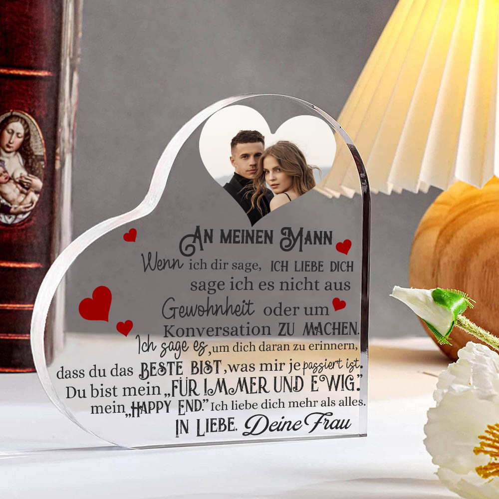 Personalisiertes Foto & Text Acryl-Deko-An meinen Mann-Schreibtischdekoration für Paar