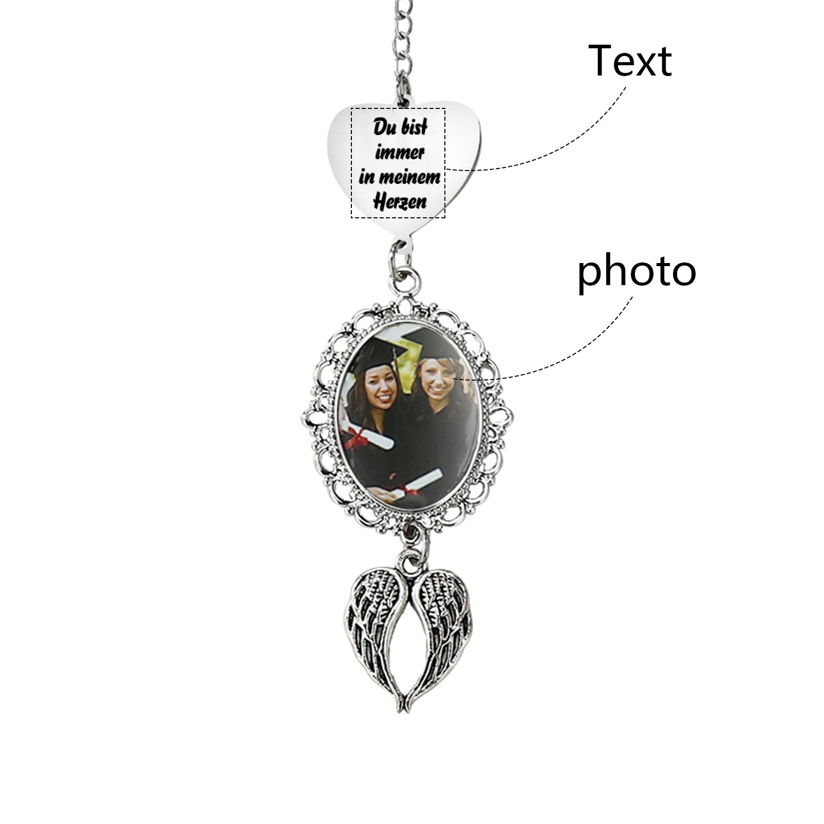 Personalisiertes Foto & Text Anhänger Vintage Engelsflügeln Graduiertenmütze mit Quaste zum Schulabschluss