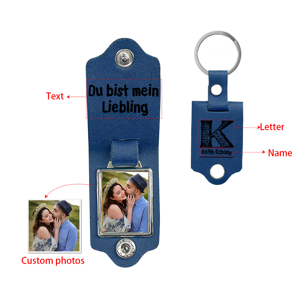 Personalisiertes Foto & Text & Buchstabe & Name Leder Schlüsselanhänger für Paar