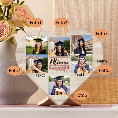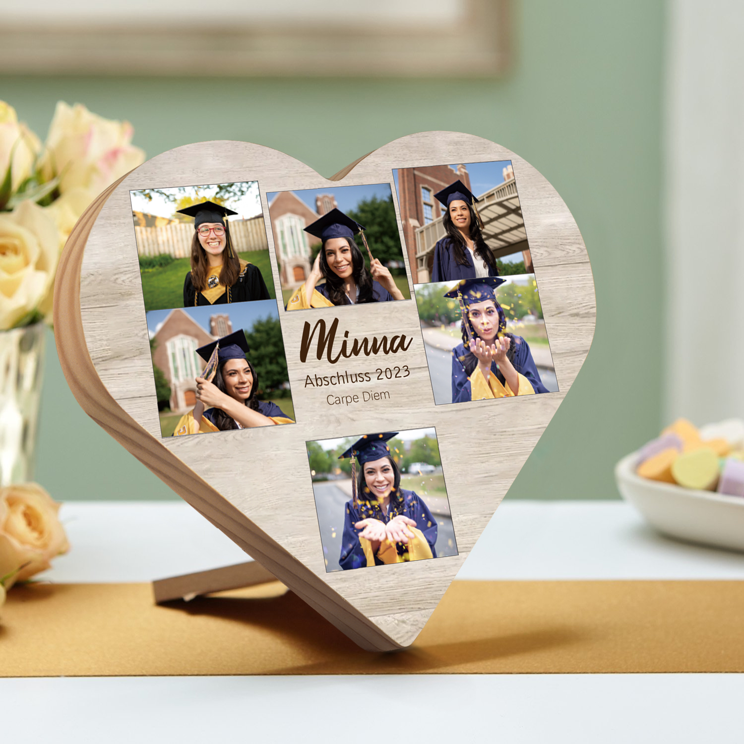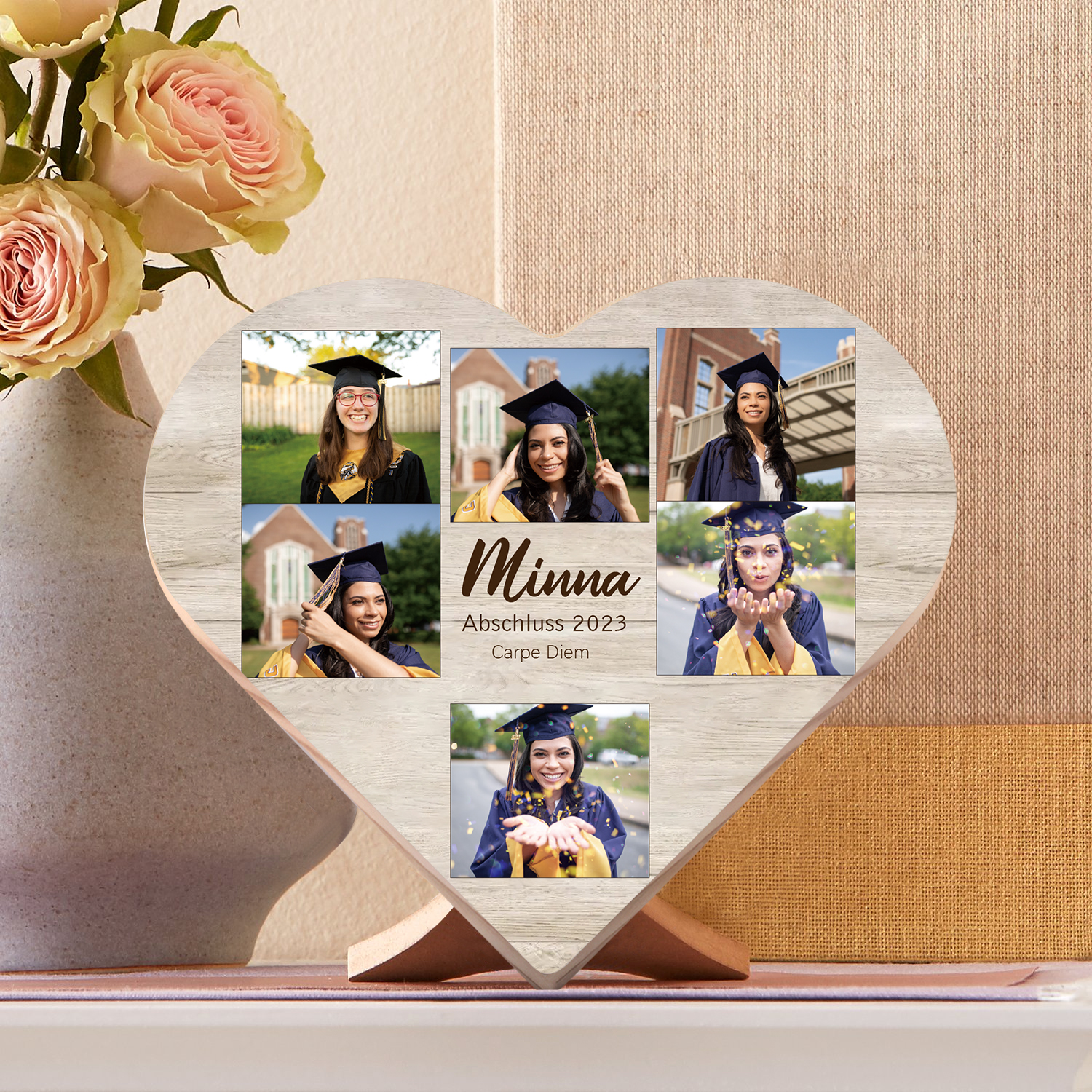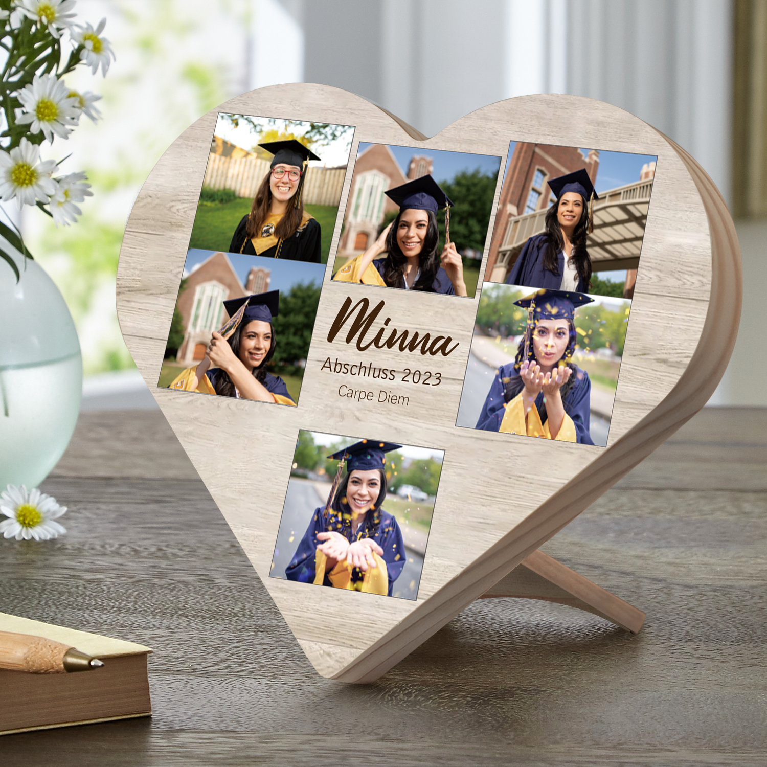 Personalisiertes Name & 2 Texte & 6 Fotos Abitur Herzholz-Deko-Abschluss Geschenk