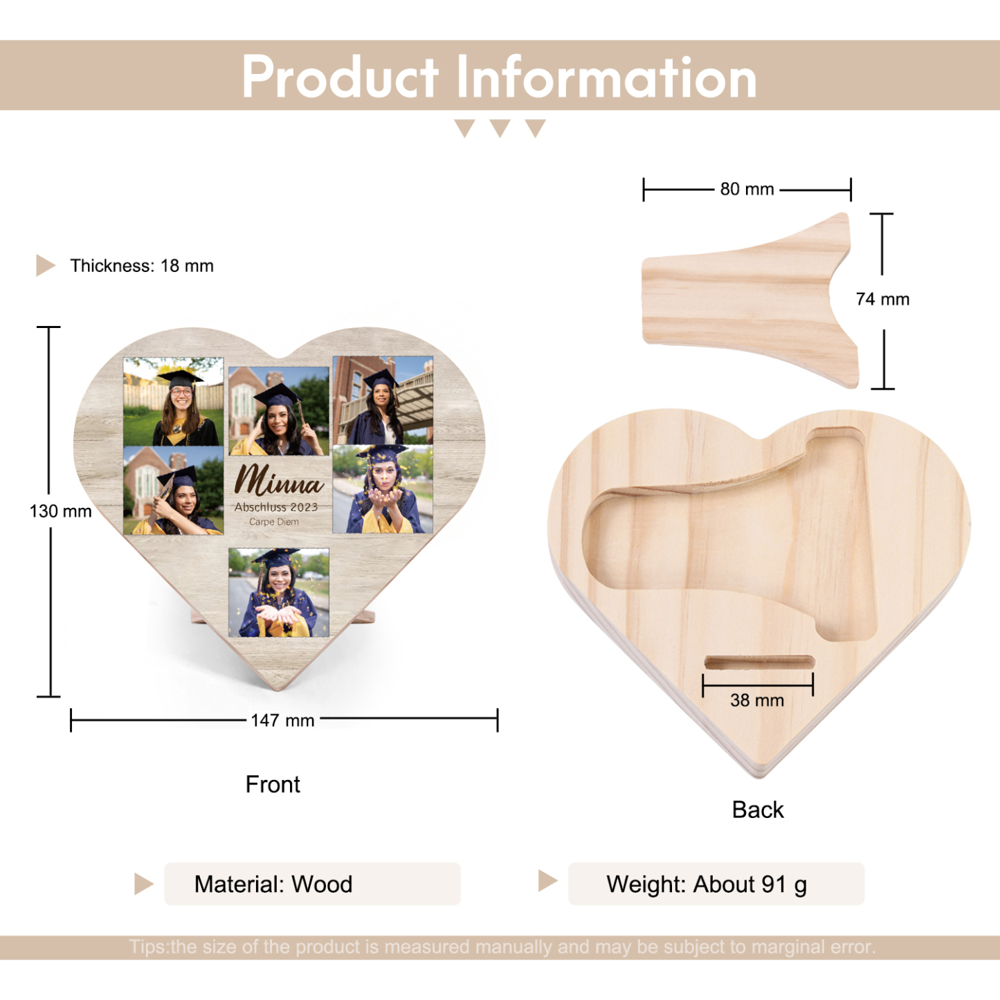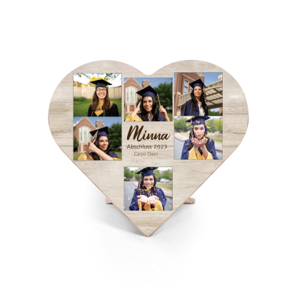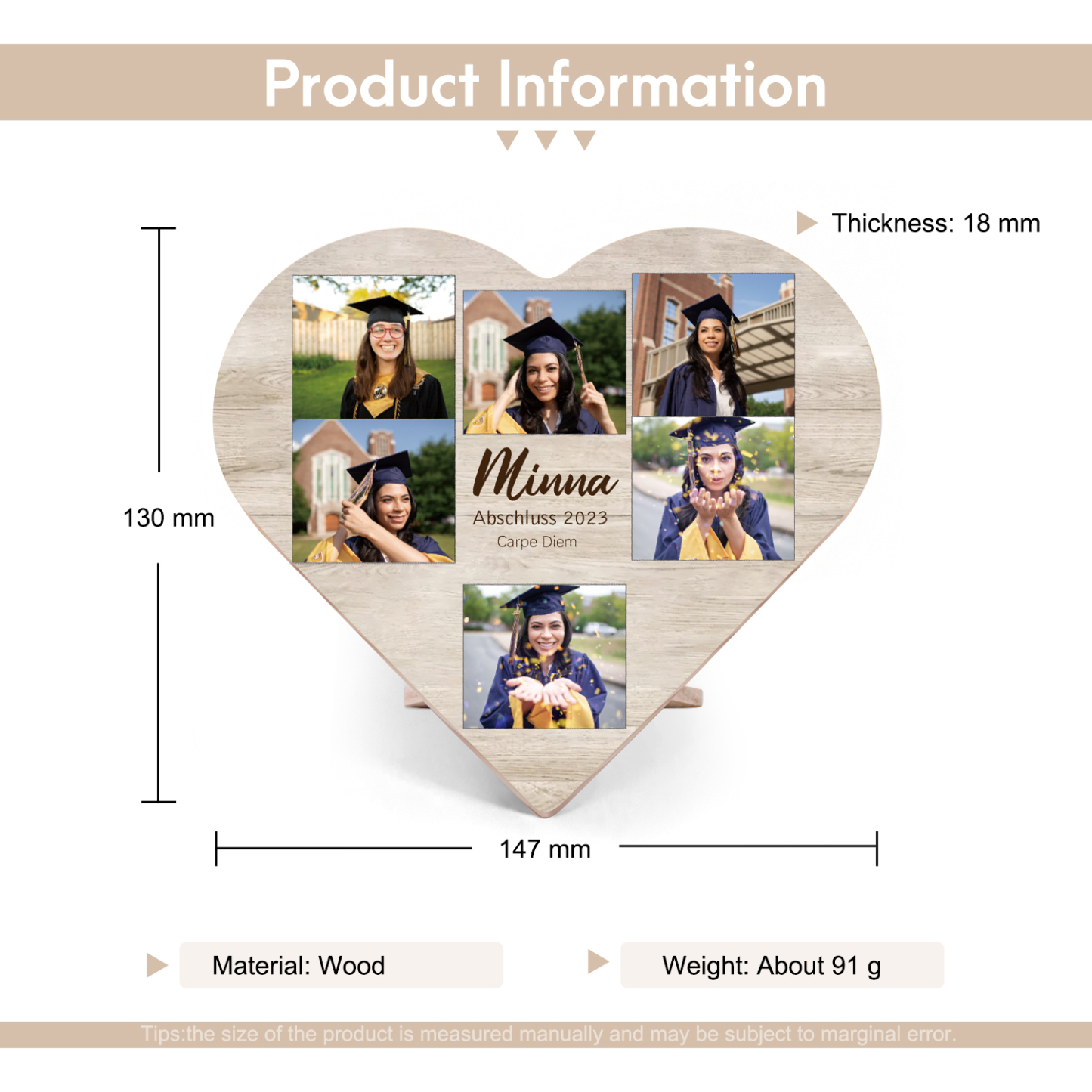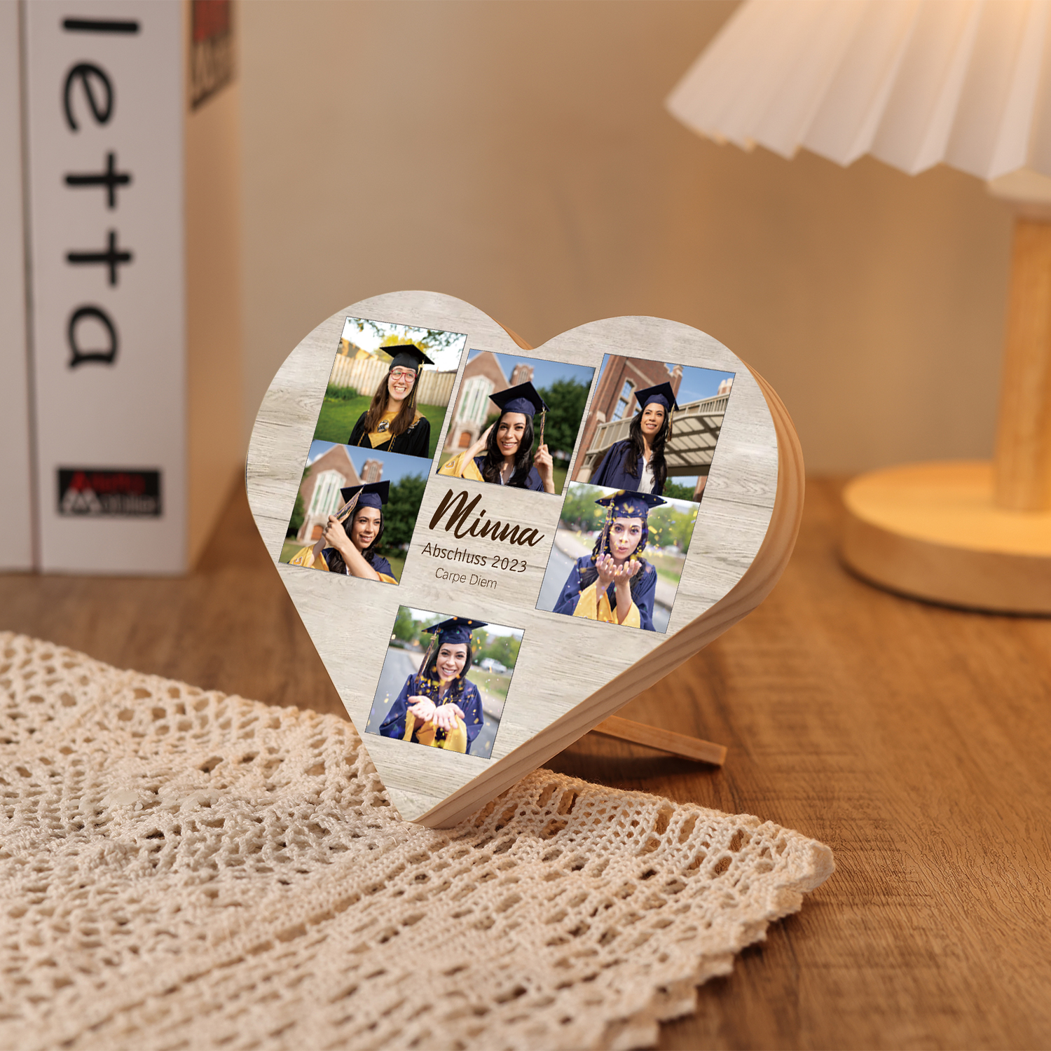 Personalisiertes Name & 2 Texte & 6 Fotos Abitur Herzholz-Deko-Abschluss Geschenk