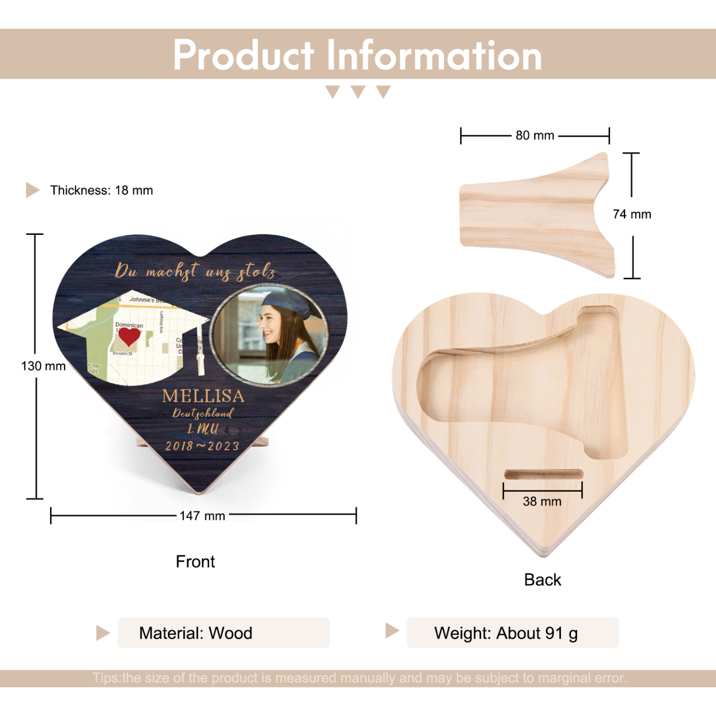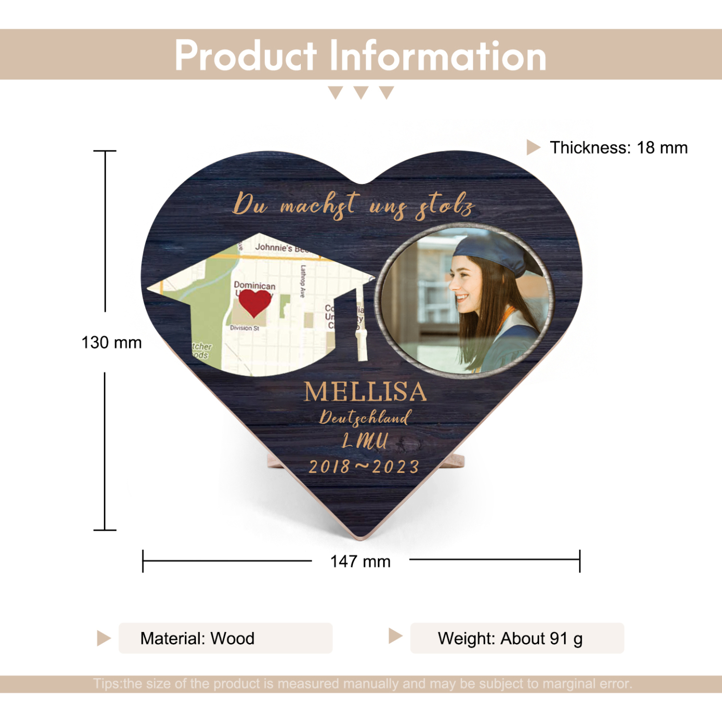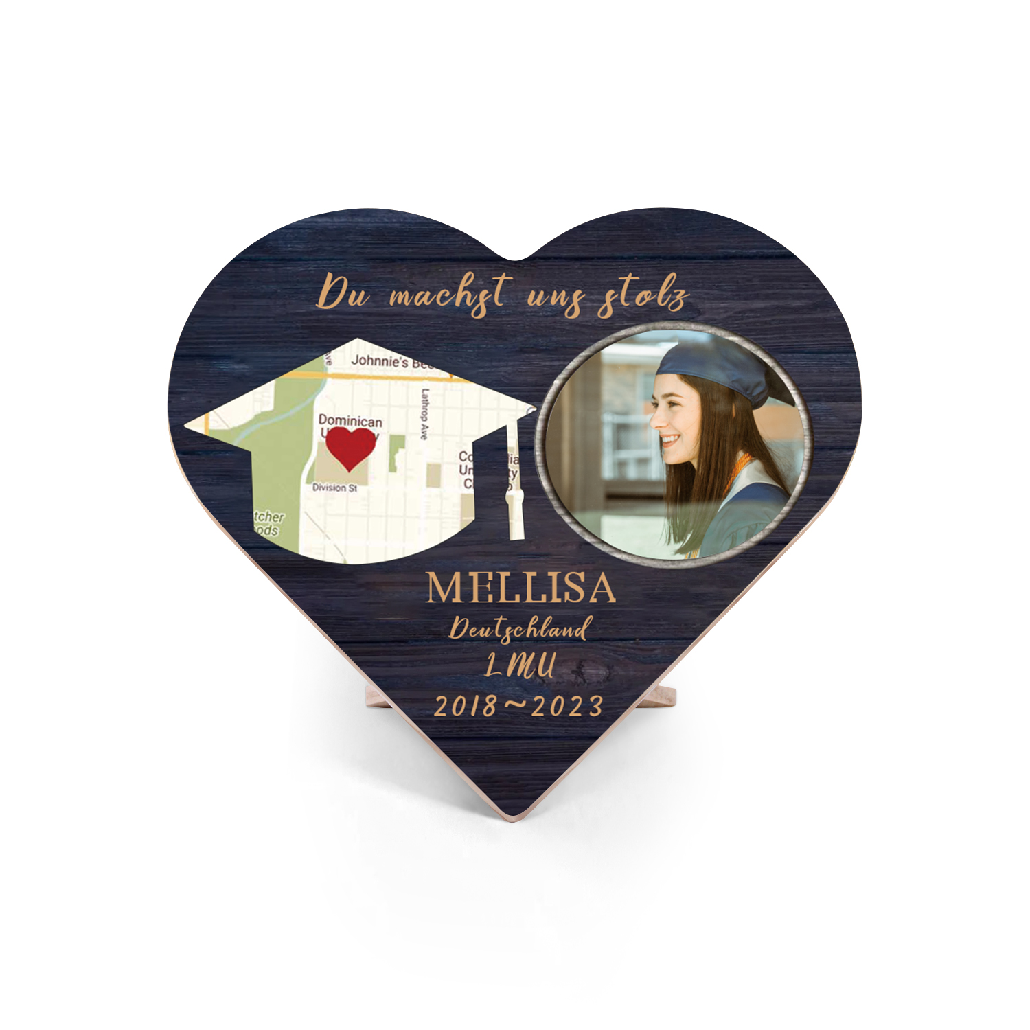 Personalisiertes Name & 2 Texte & Datum & 2 Fotos Abitur Herzholz-Deko-Abschluss Geschenk