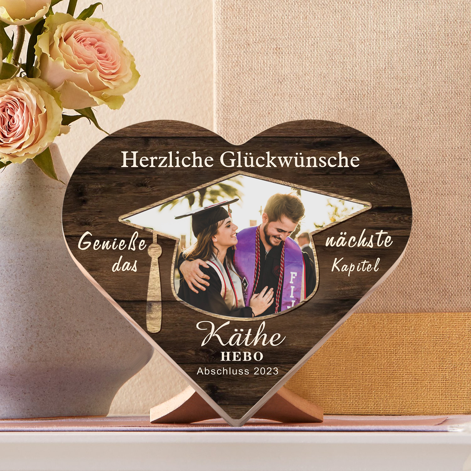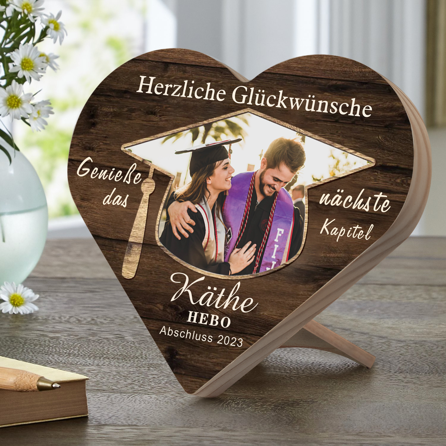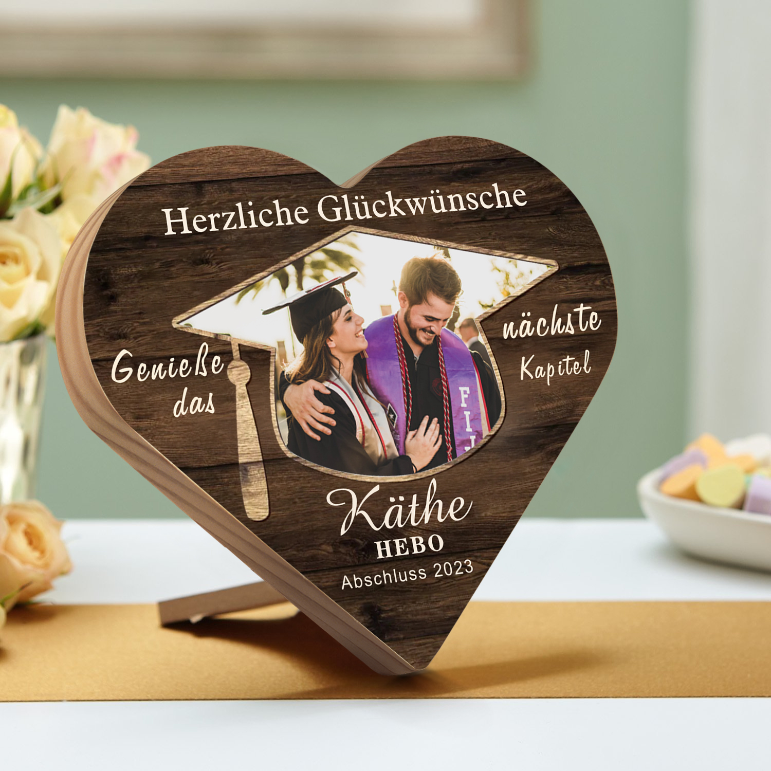 Personalisiertes Name & Foto & 2 Texte Abitur Herzholz-Deko-Genieße das nächste Kapitel